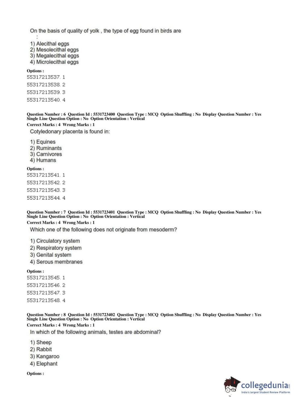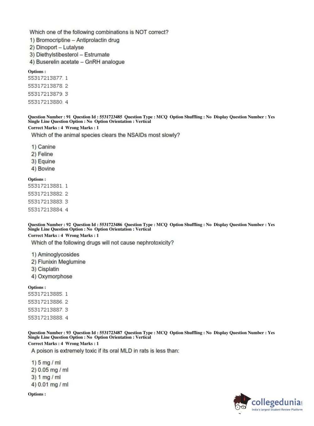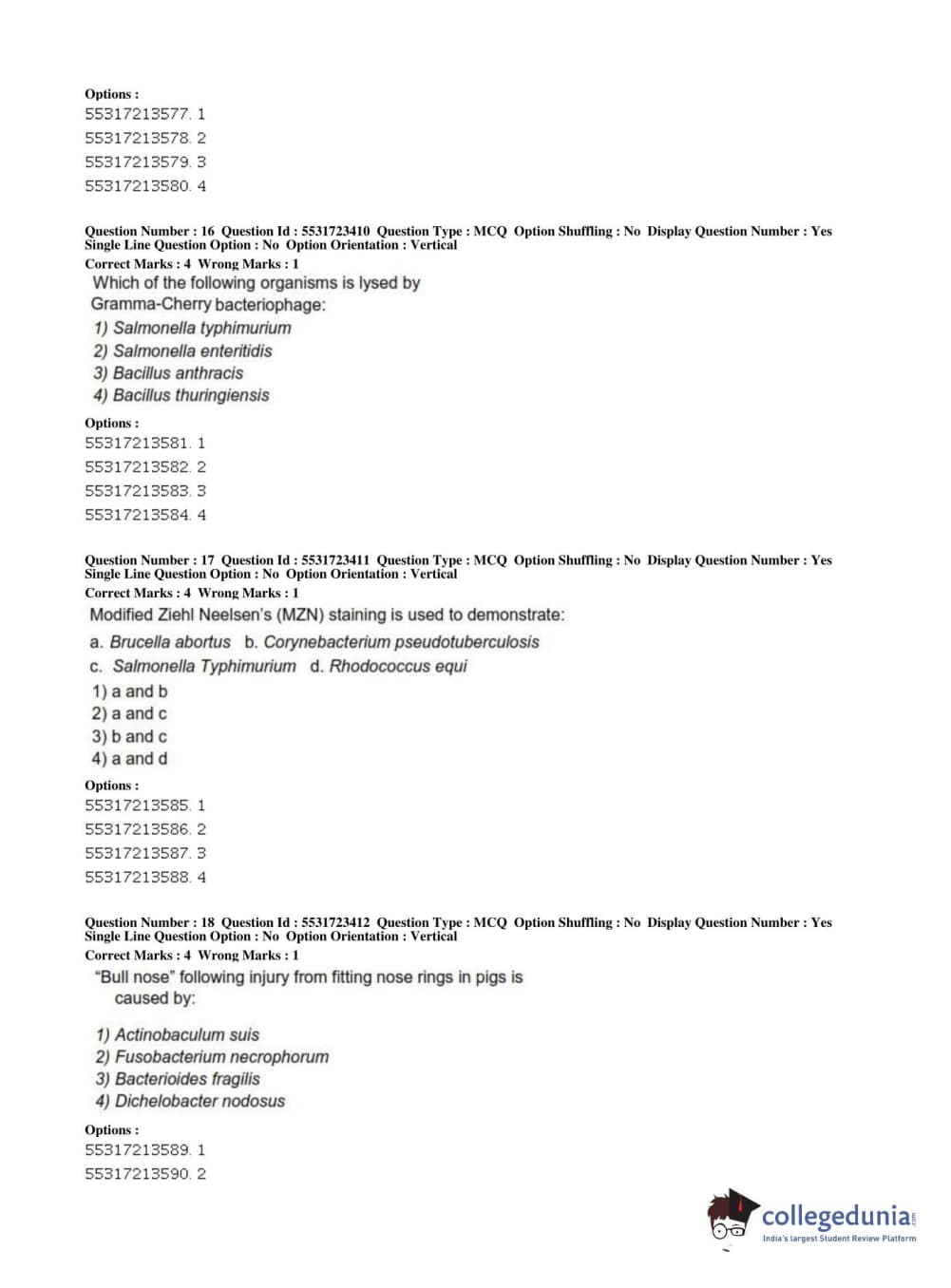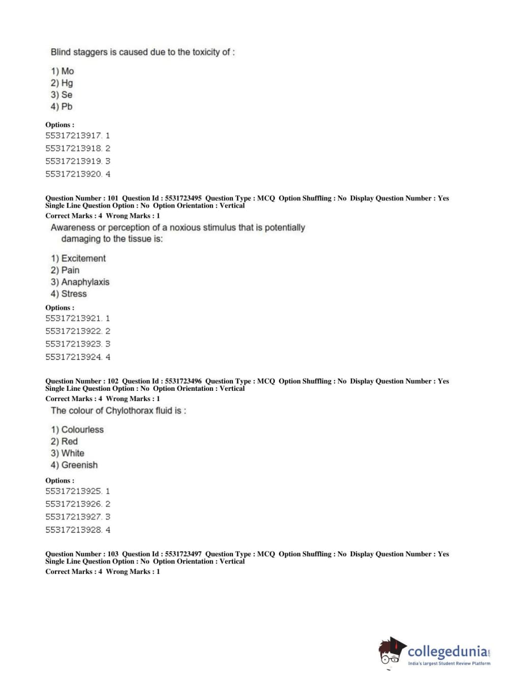 ICAR AIEEA 2019 PG - VETERINARY SCIENCE Question Paper with Answer Key PDFs Shift 2