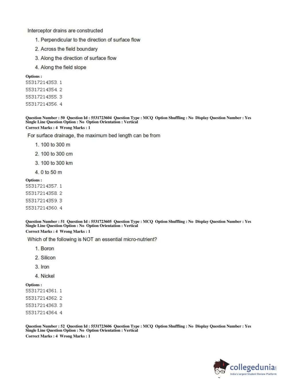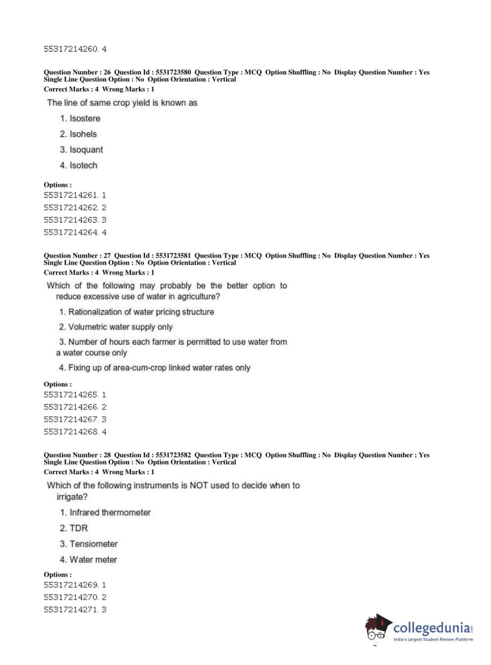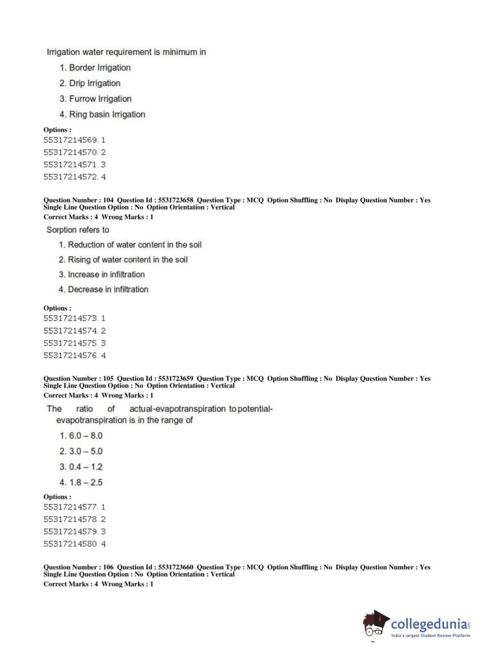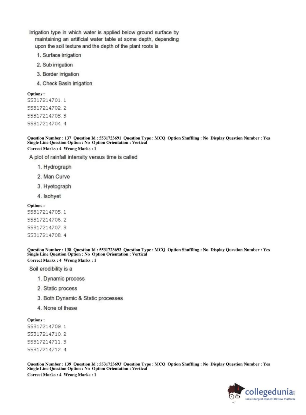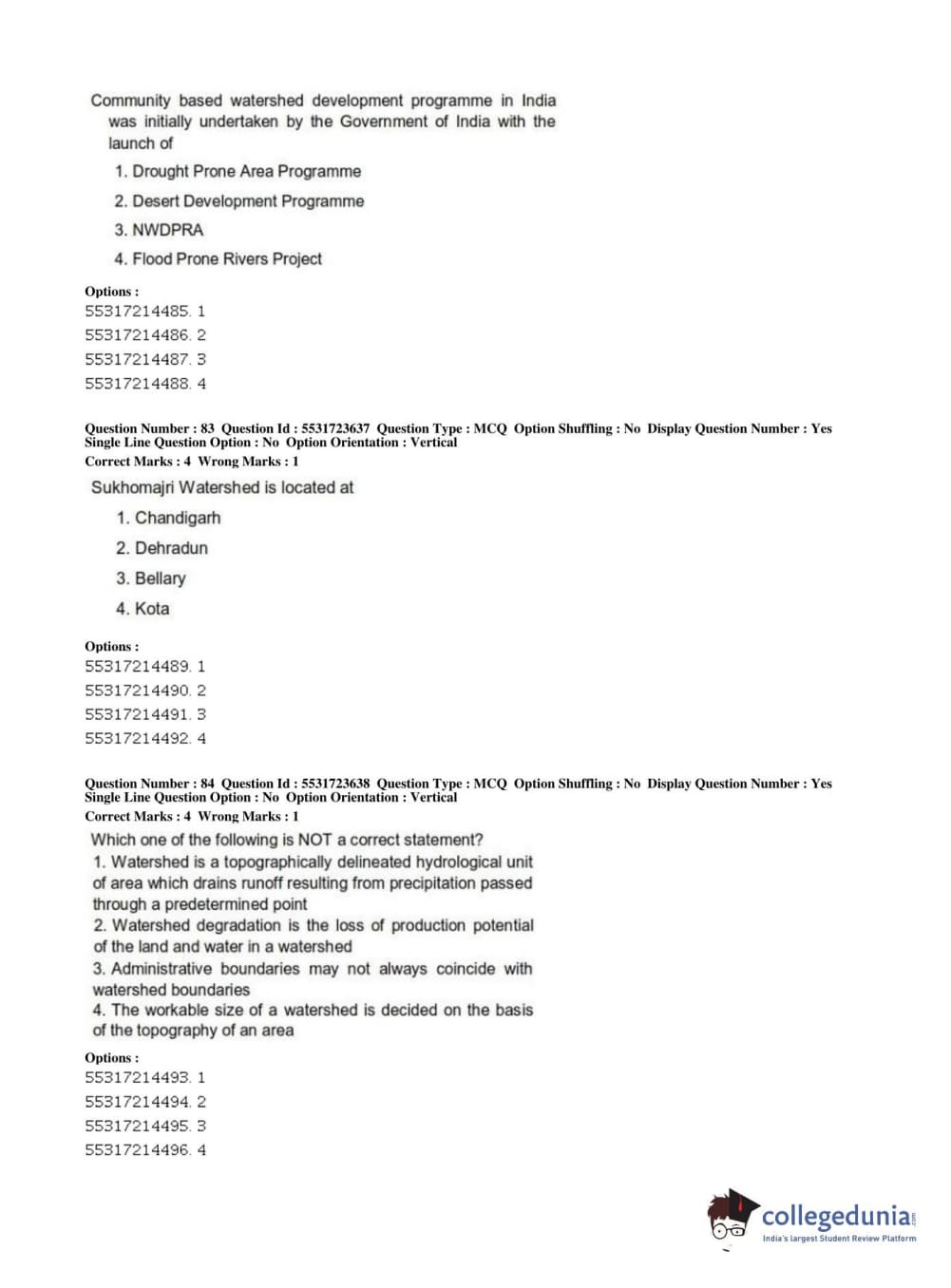 ICAR AIEEA 2019 PG - WATER SCIENCE AND TECHNOLOGY Question Paper with Answer Key PDFs Shift 2