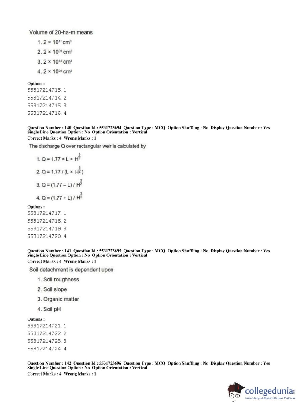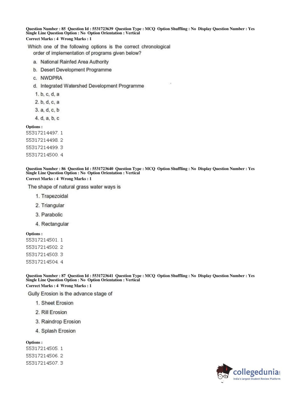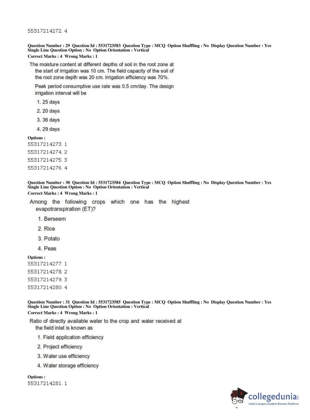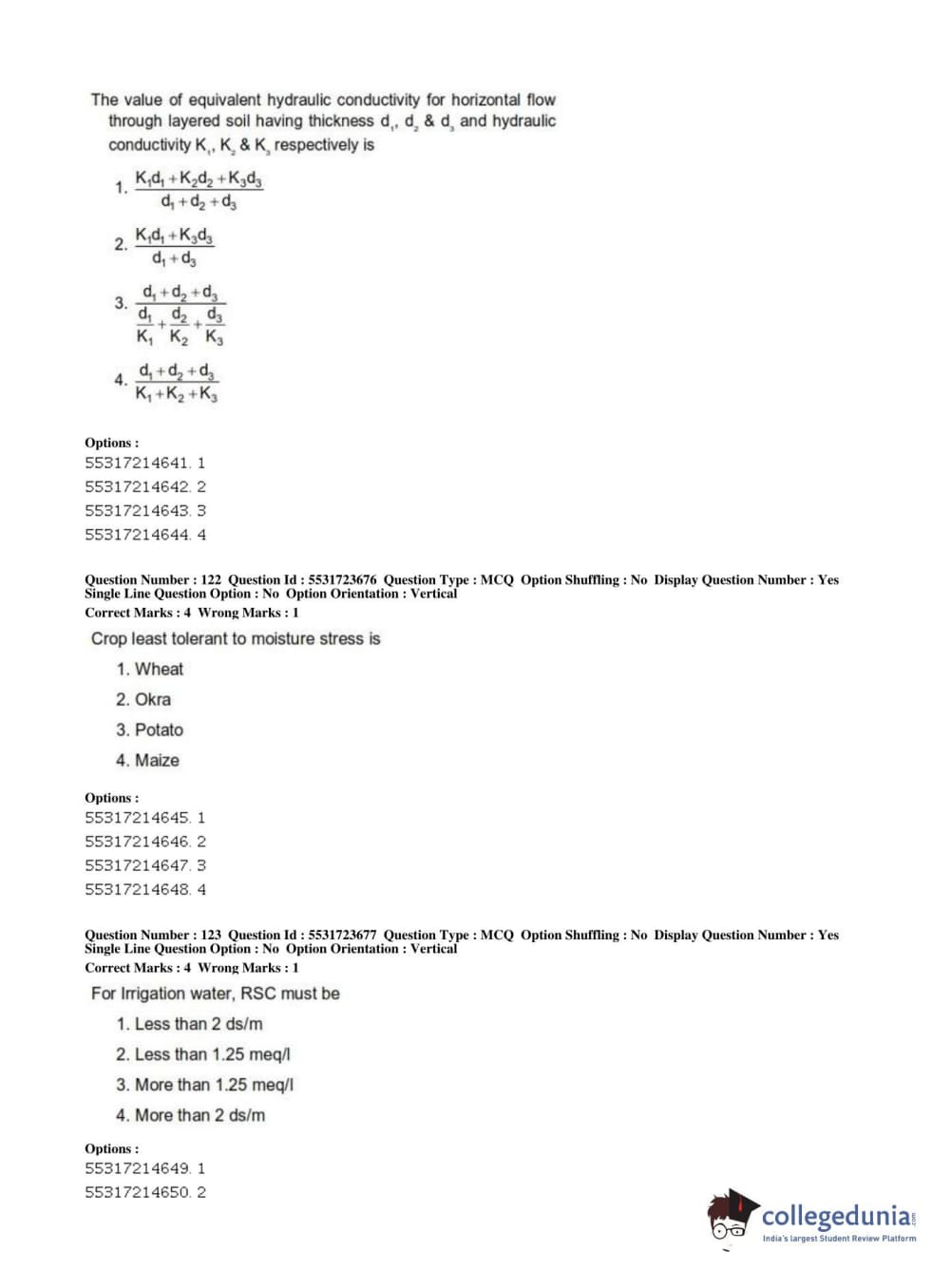ICAR AIEEA 2019 PG - WATER SCIENCE AND TECHNOLOGY Question Paper with Answer Key PDFs Shift 2