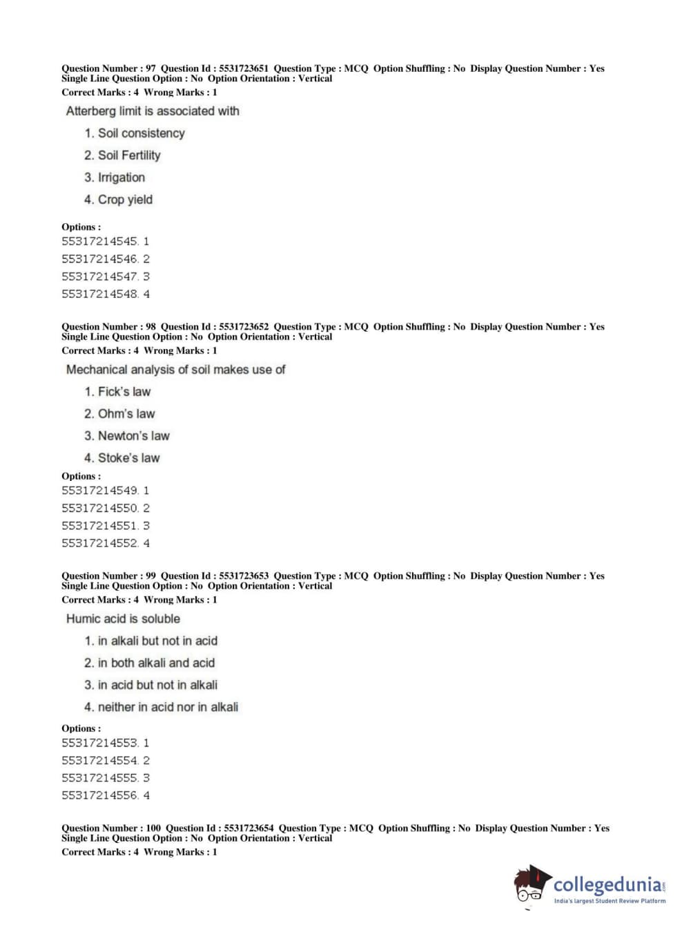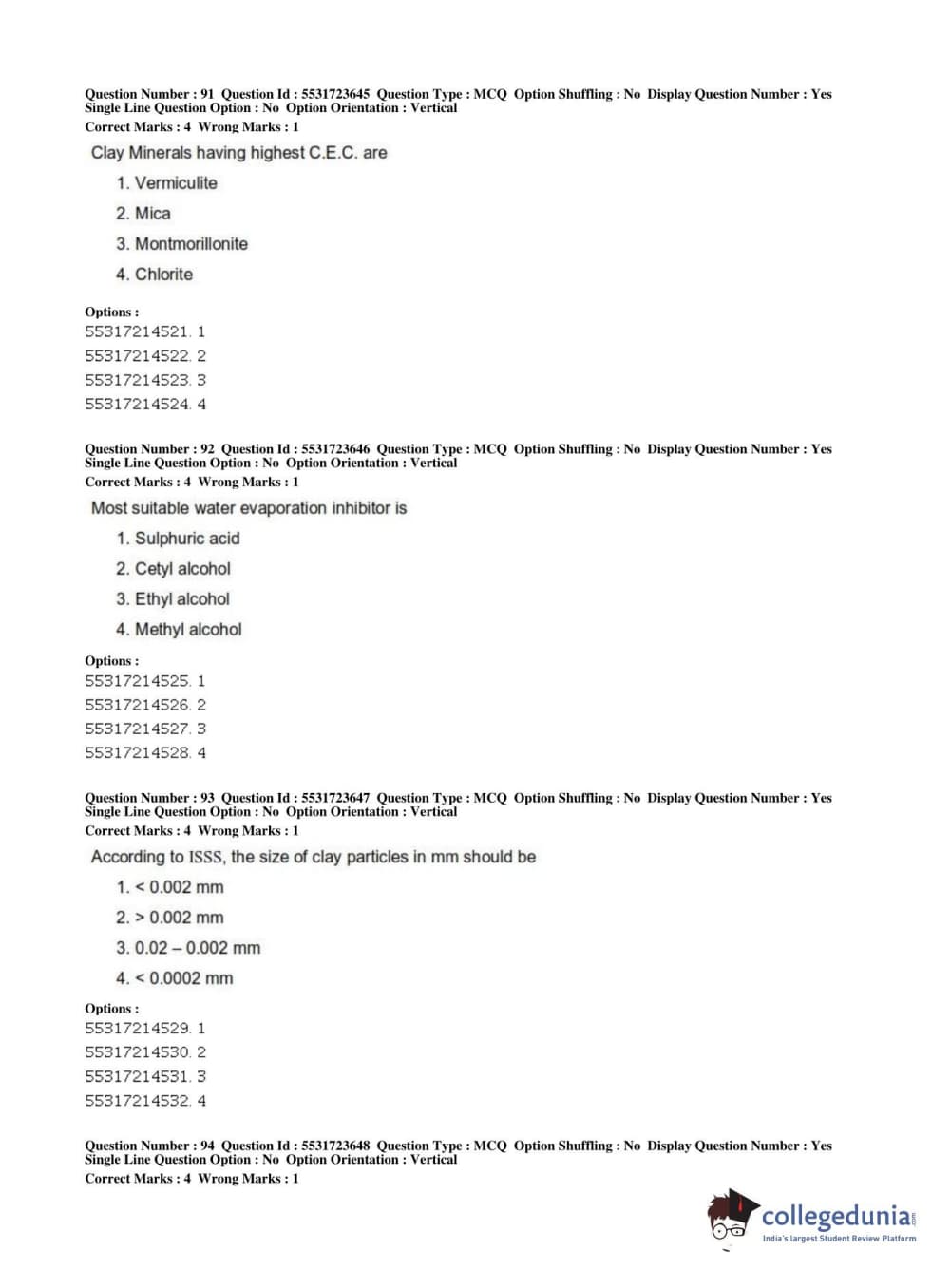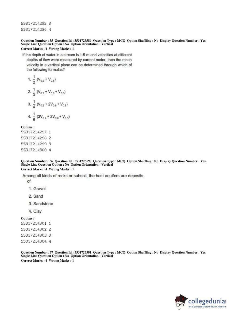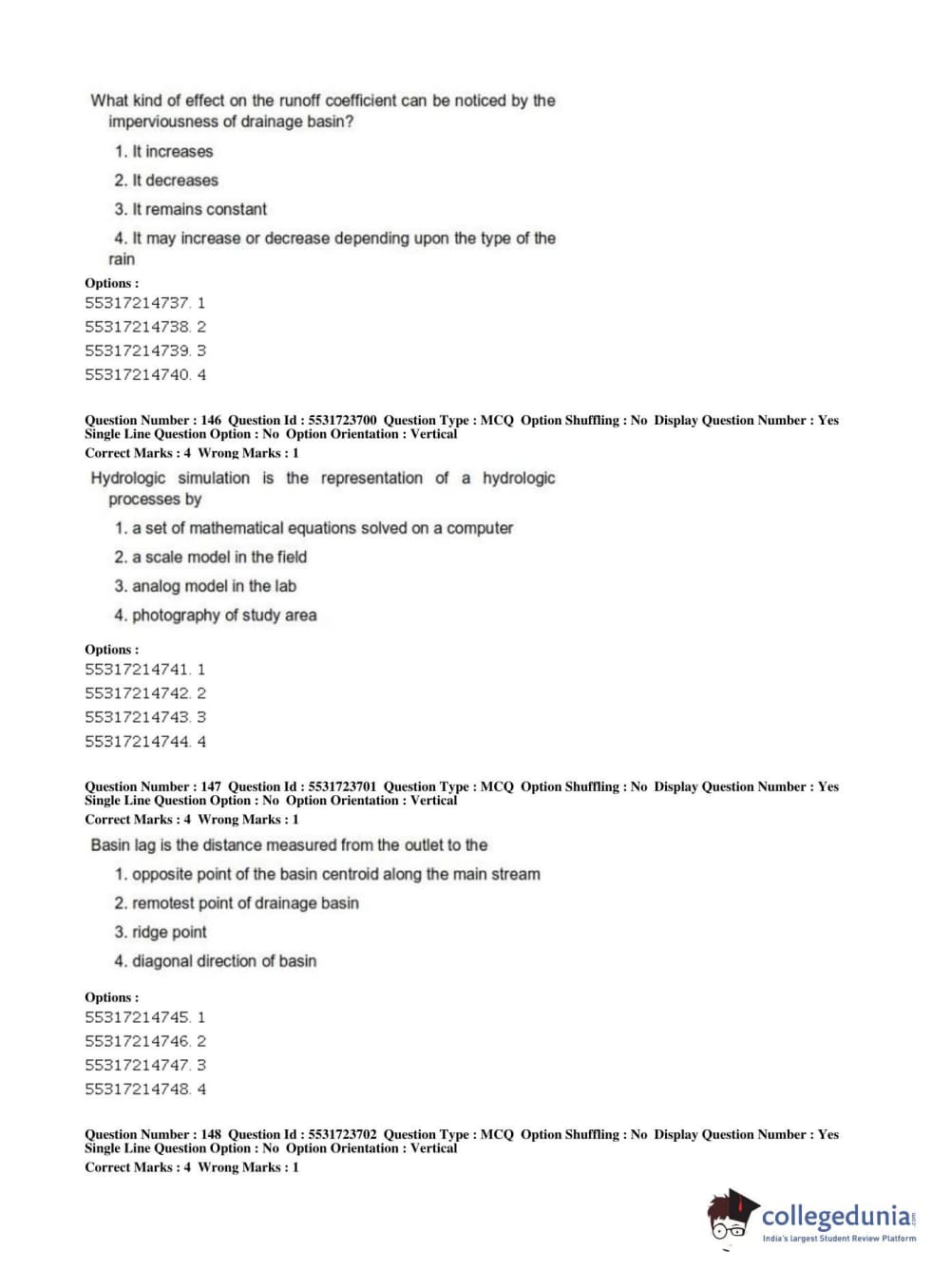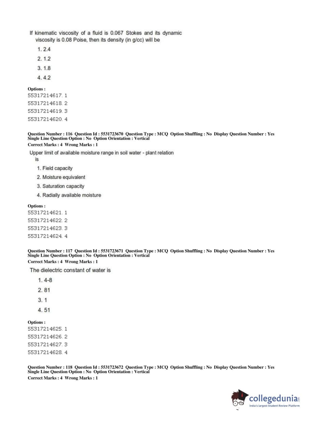 ICAR AIEEA 2019 PG - WATER SCIENCE AND TECHNOLOGY Question Paper with Answer Key PDFs Shift 2