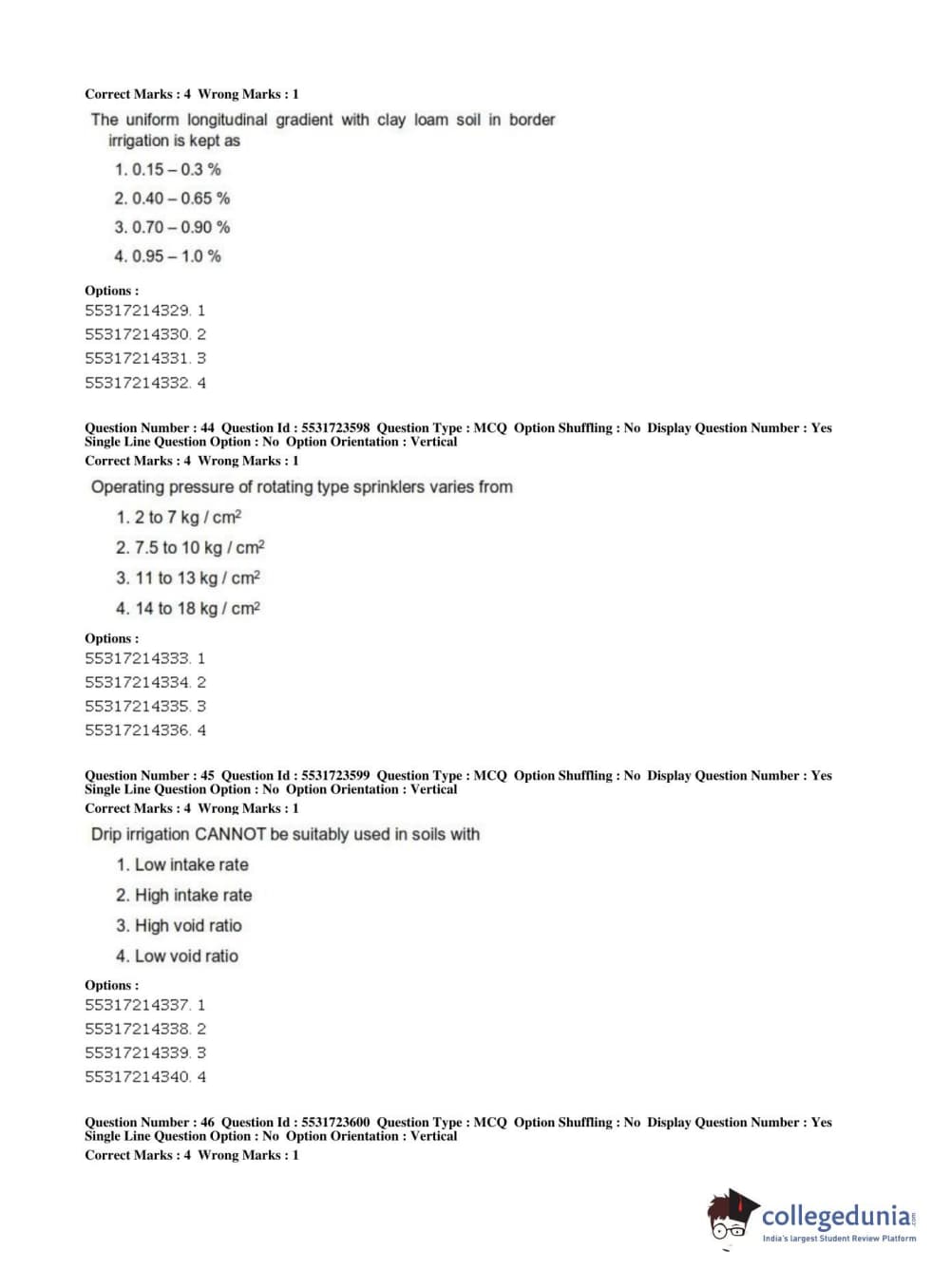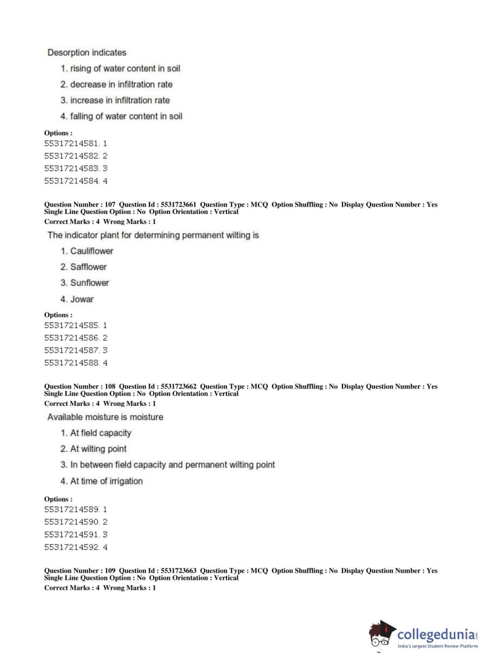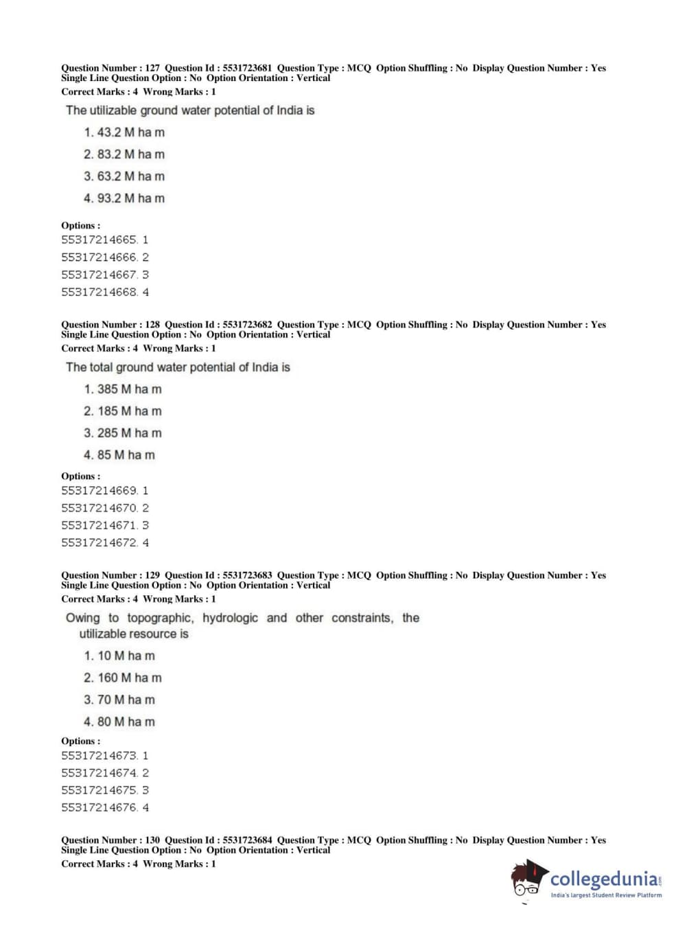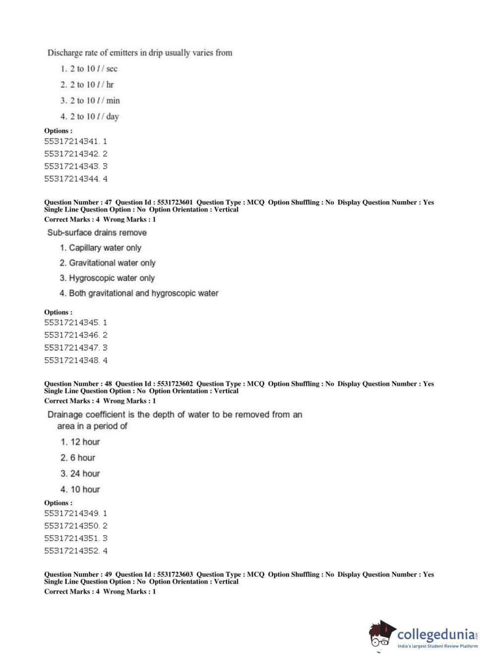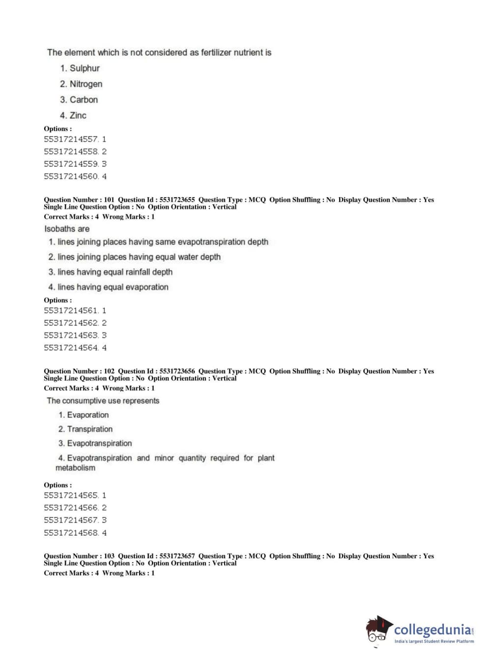 | ICAR AIEEA 2019 PG - WATER SCIENCE AND TECHNOLOGY Question Paper PDF | ICAR AIEEA 2019 PG - WATER SCIENCE AND TECHNOLOGY Answer Key PDF |