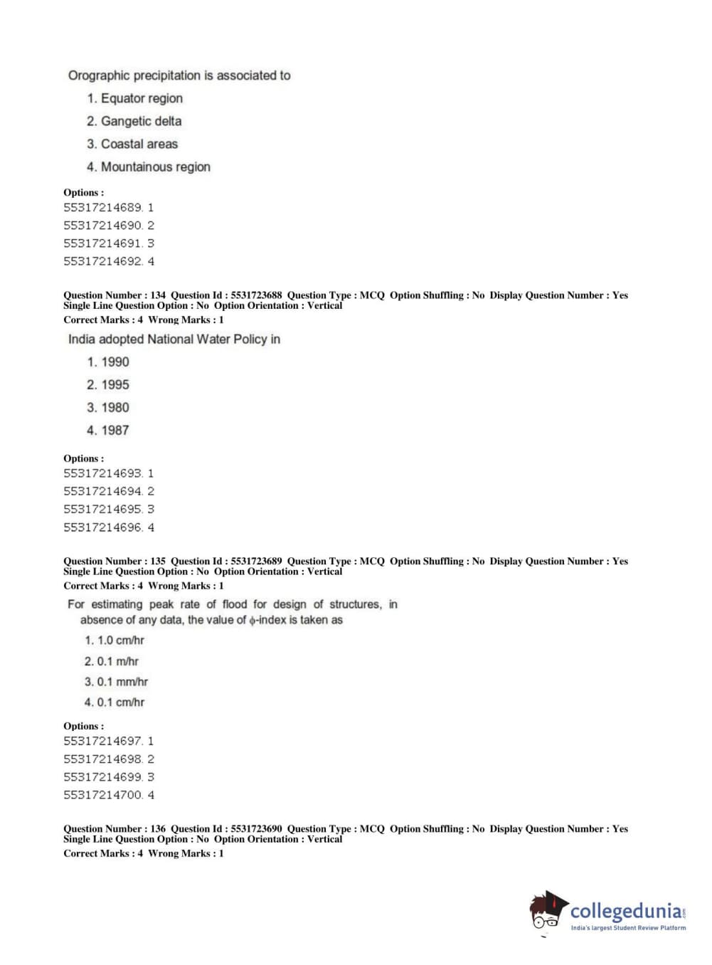 ICAR AIEEA 2019 PG - WATER SCIENCE AND TECHNOLOGY Question paper with answer key pdf conducted on July 1, 2019 in Shift 2 is available for download. The exam was successfully organized by National Testing Agency (NTA). The question paper comprised a total of 160 questions.