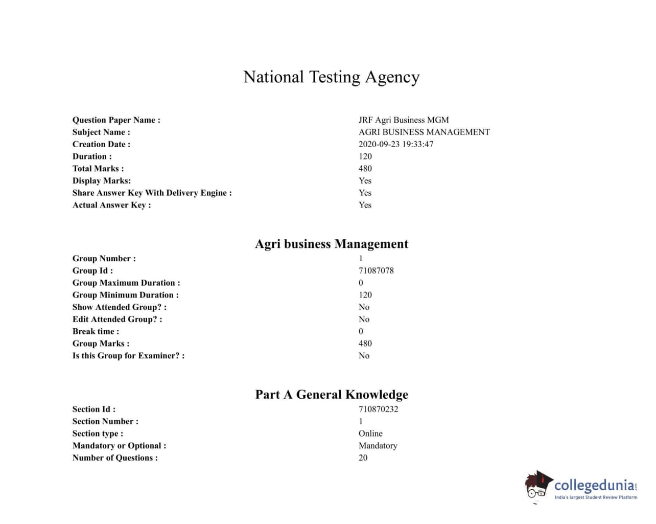 ICAR AIEEA 2020 JRF - AGRI BUSINESS Question paper with answer key pdf conducted on September 23, 2020 in Afternoon Session is available for download. The exam was successfully organized by National Testing Agency (NTA). The question paper comprised a total of 120 questions.