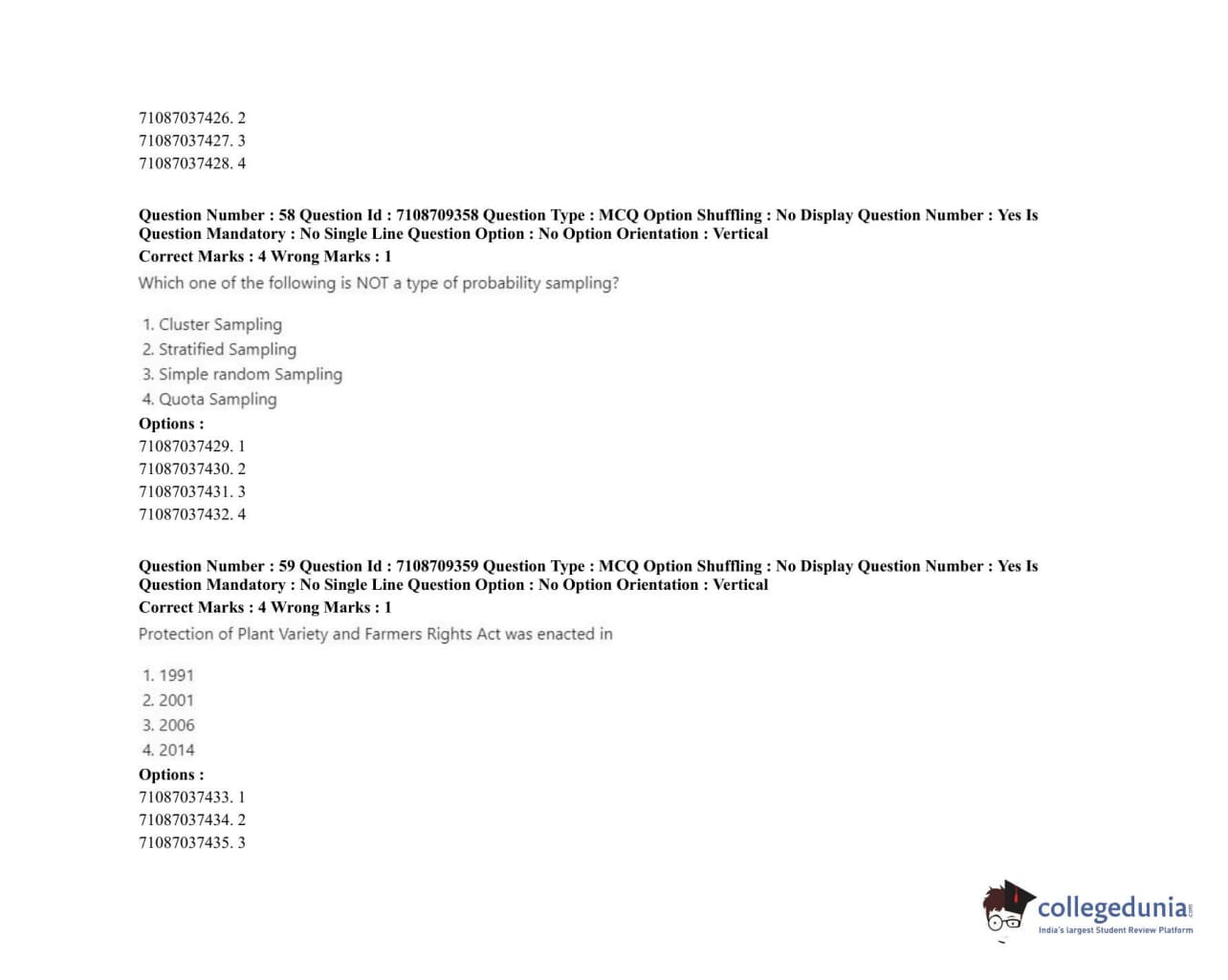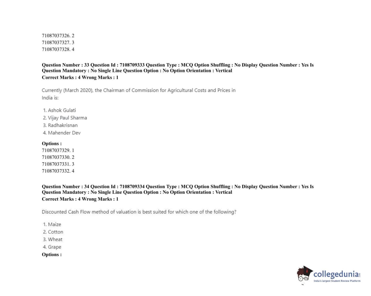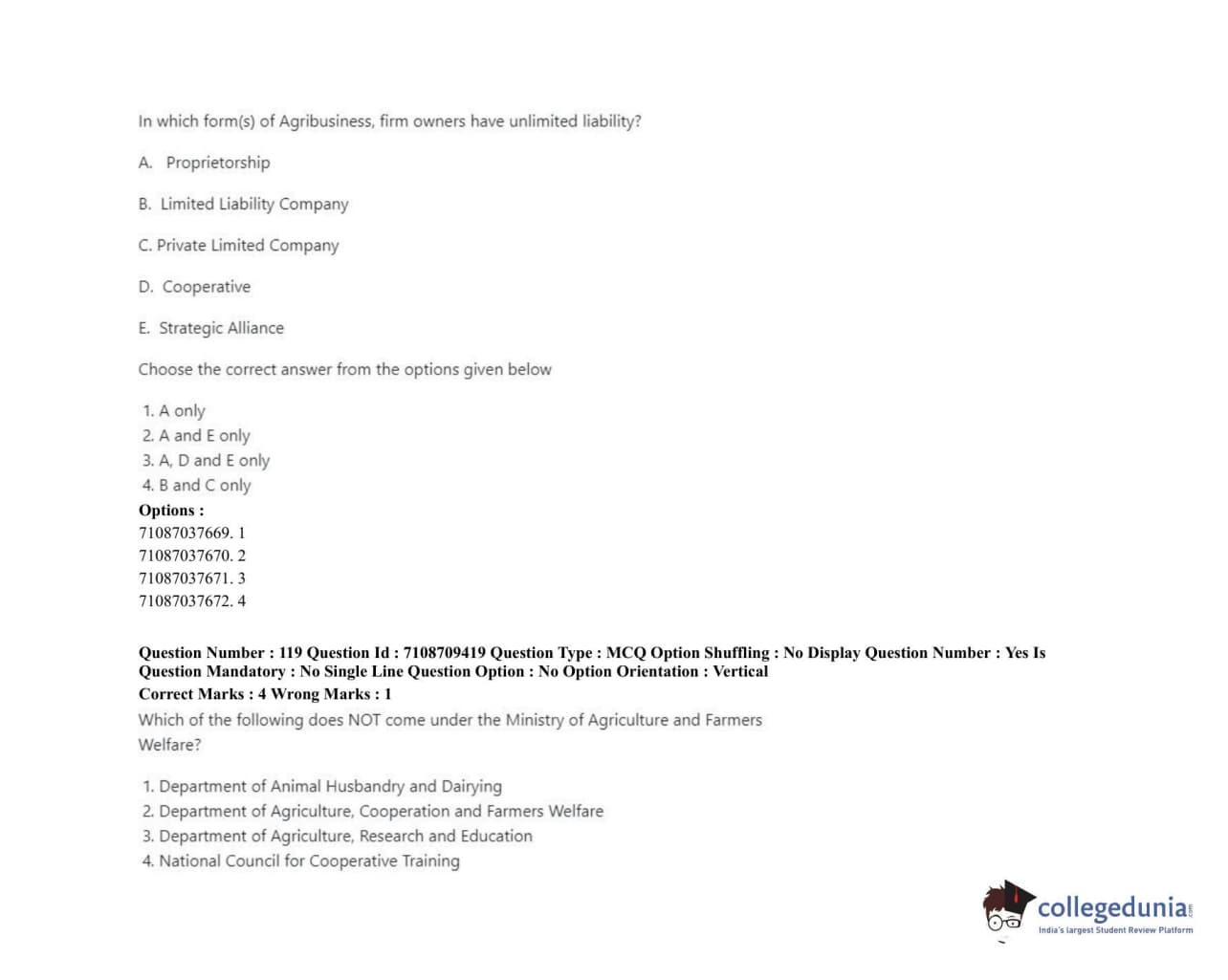 ICAR AIEEA 2020 JRF - AGRI BUSINESS Question Paper with Answer Key PDFs Afternoon Session