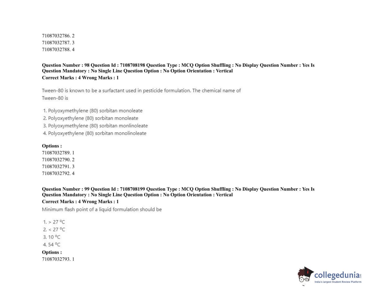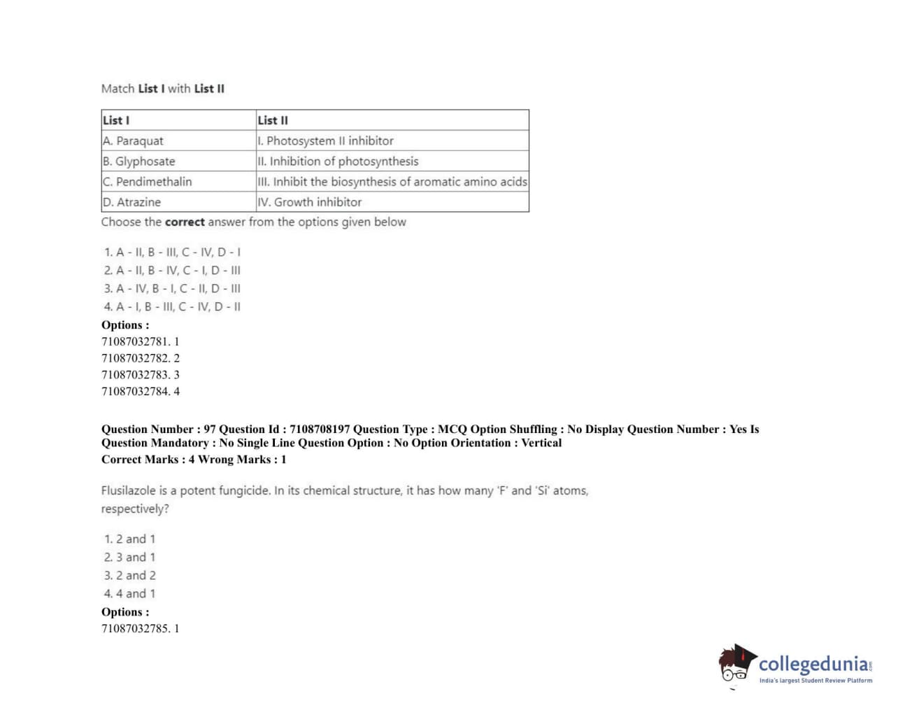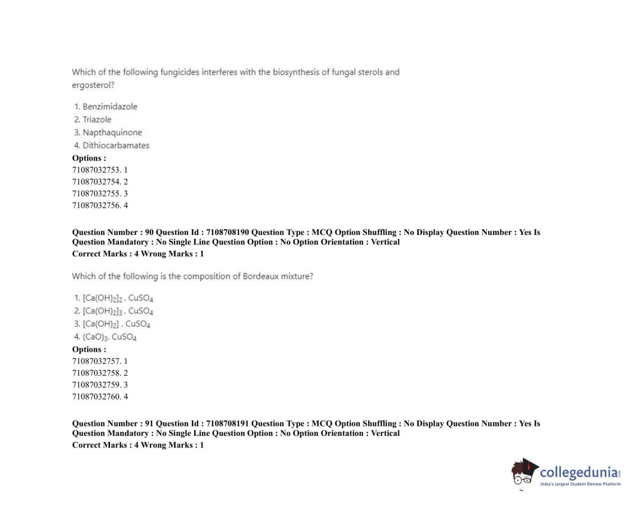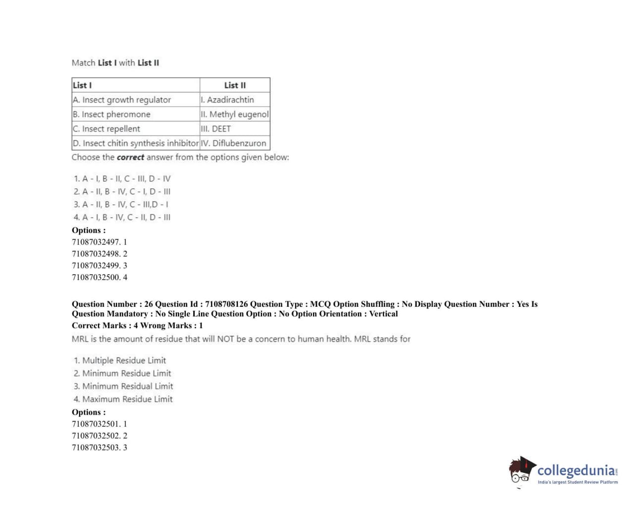 ICAR AIEEA 2020 JRF - AGRICULTURAL CHEMICALS Question Paper with Answer Key PDFs Afternoon Session