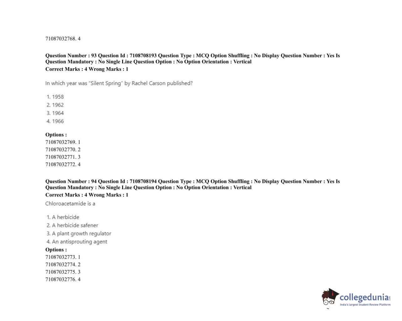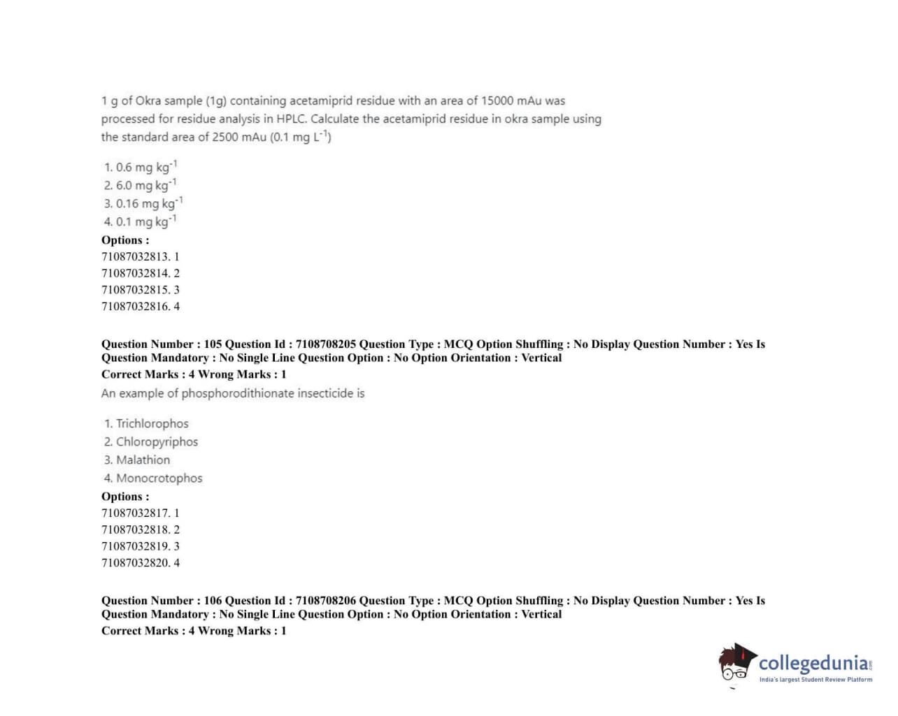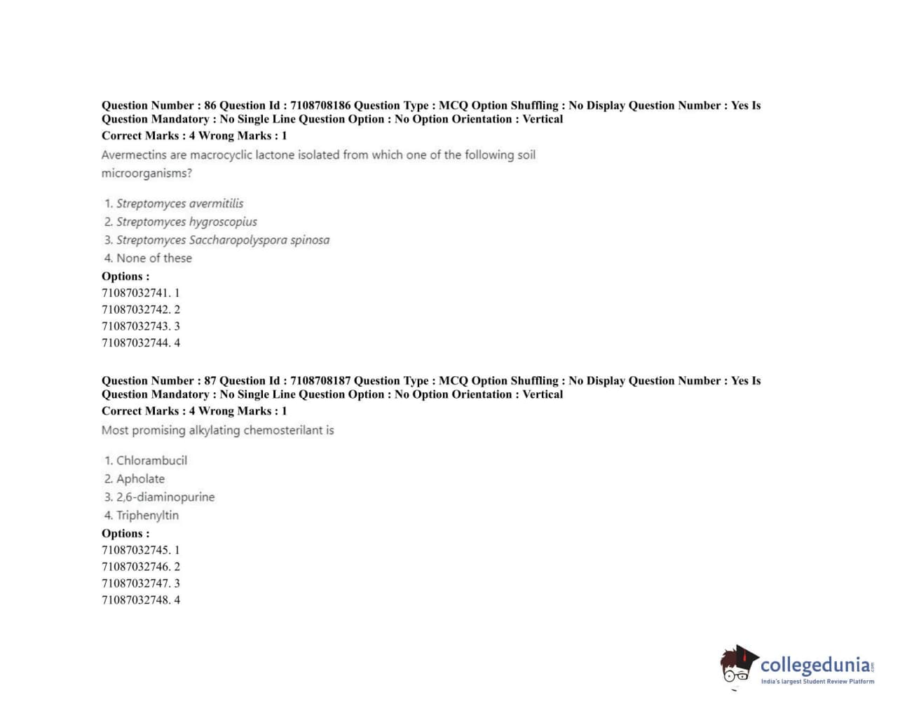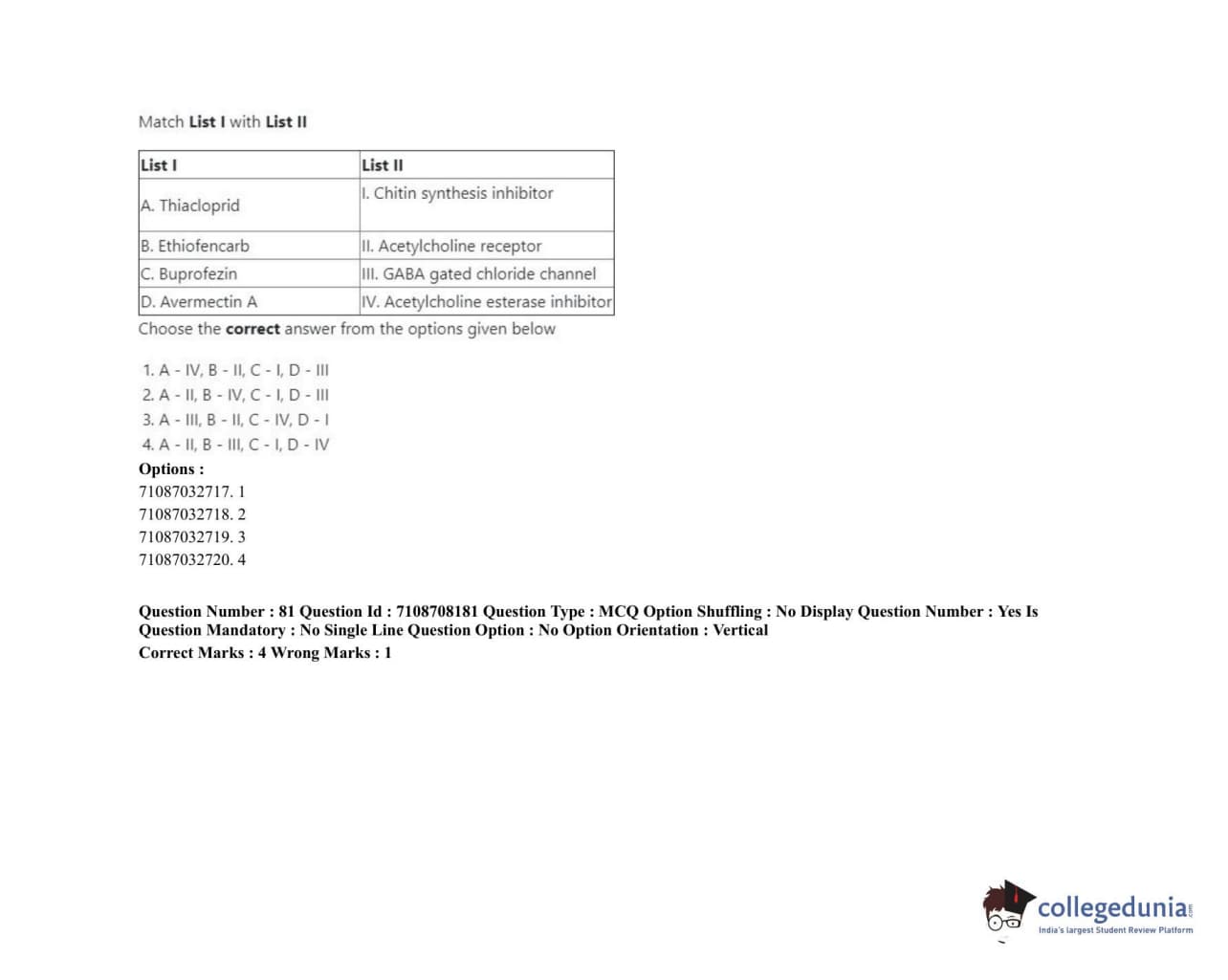 ICAR AIEEA 2020 JRF - AGRICULTURAL CHEMICALS Question Paper with Answer Key PDFs Afternoon Session