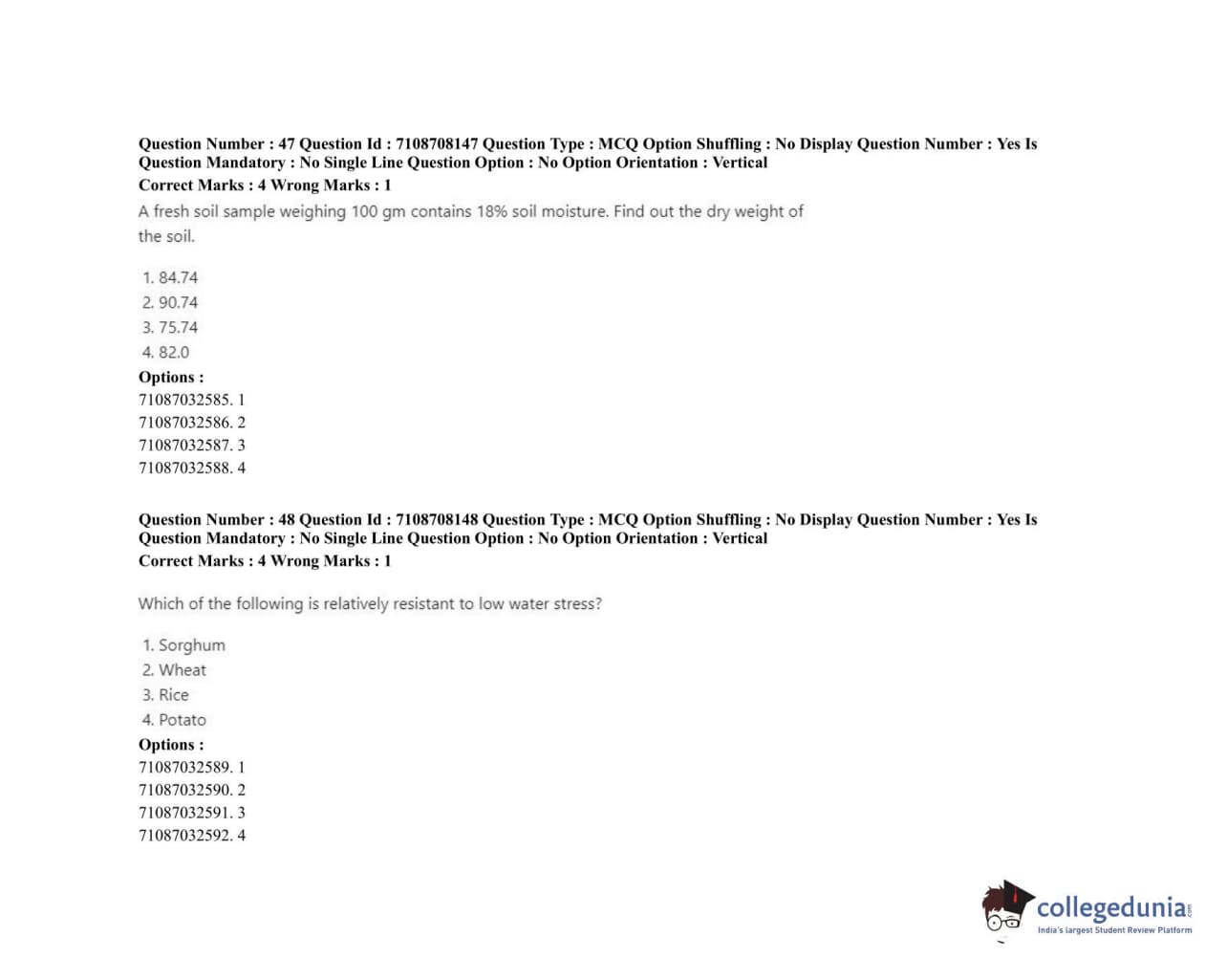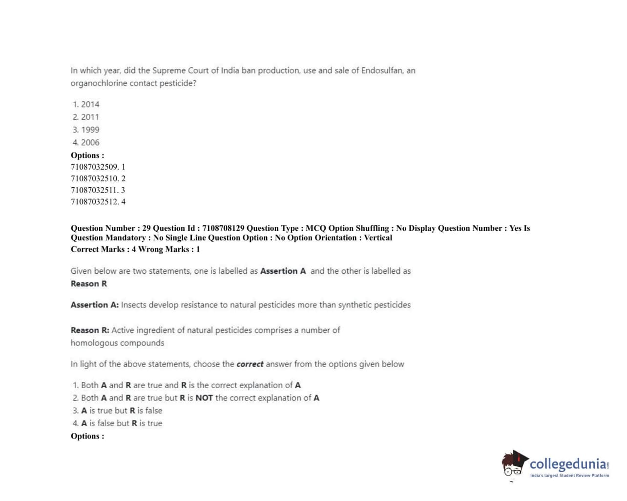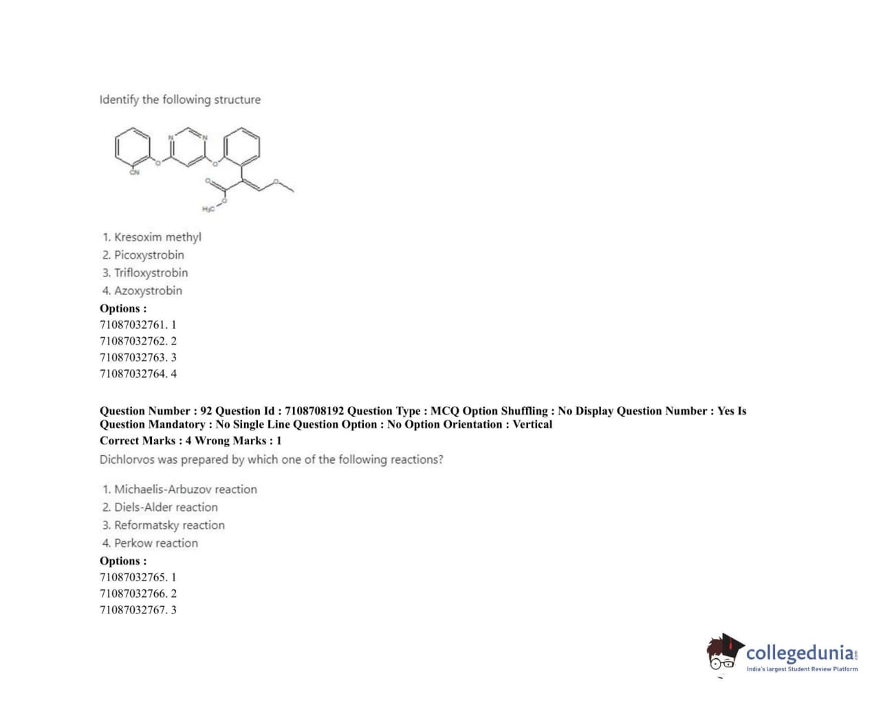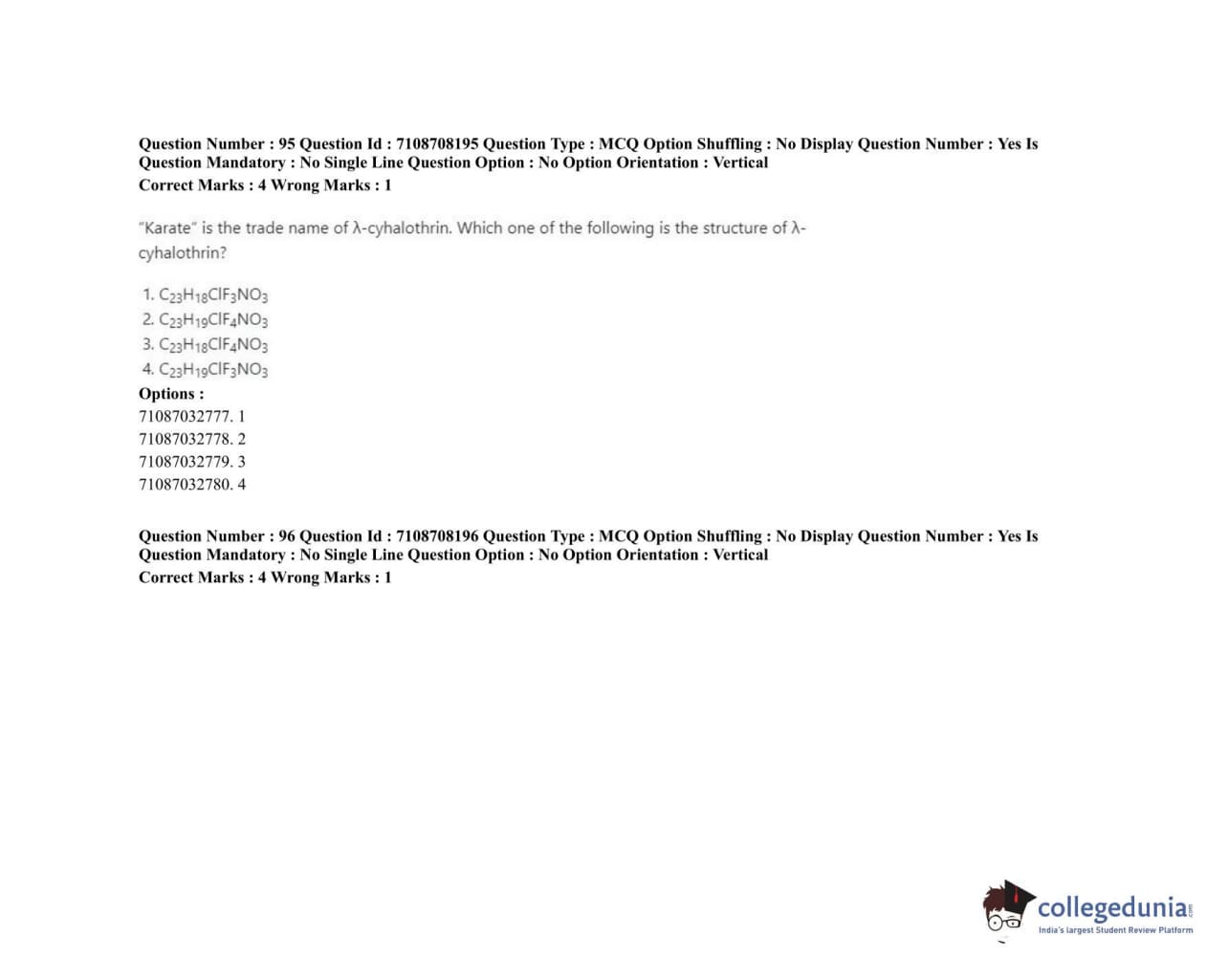ICAR AIEEA 2020 JRF - AGRICULTURAL CHEMICALS Question Paper with Answer Key PDFs Afternoon Session