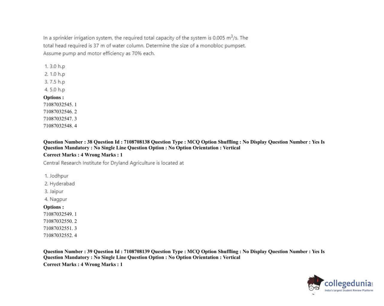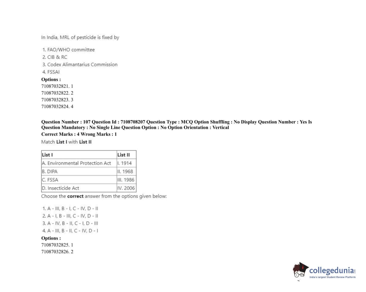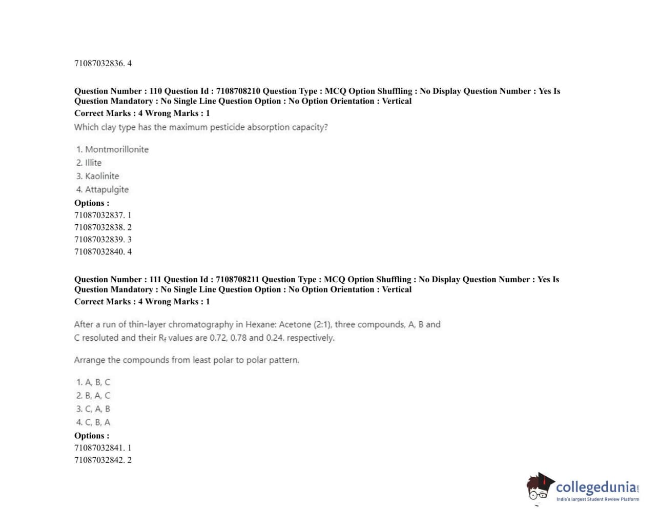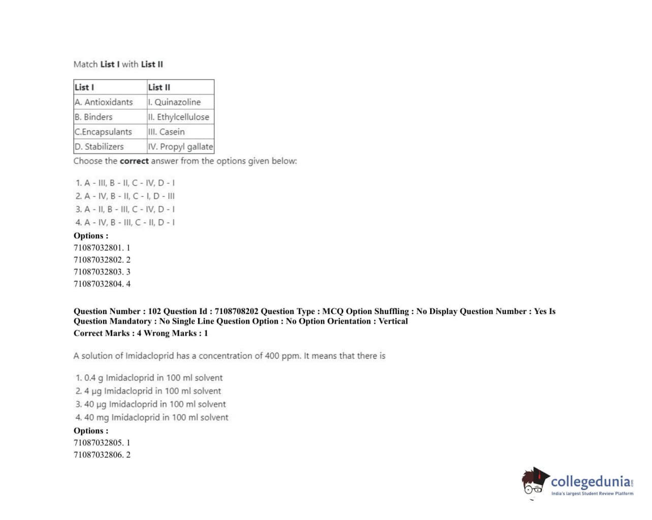 ICAR AIEEA 2020 JRF - AGRICULTURAL CHEMICALS Question Paper with Answer Key PDFs Afternoon Session