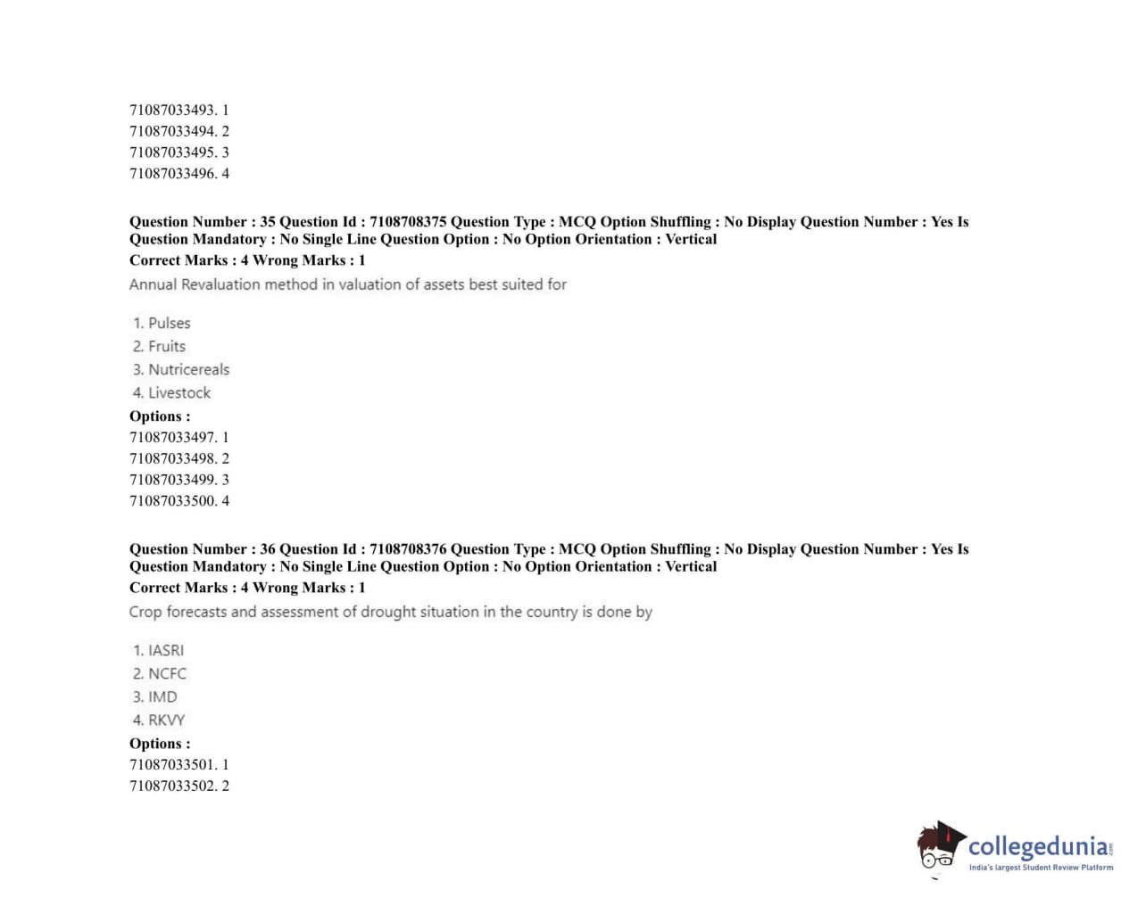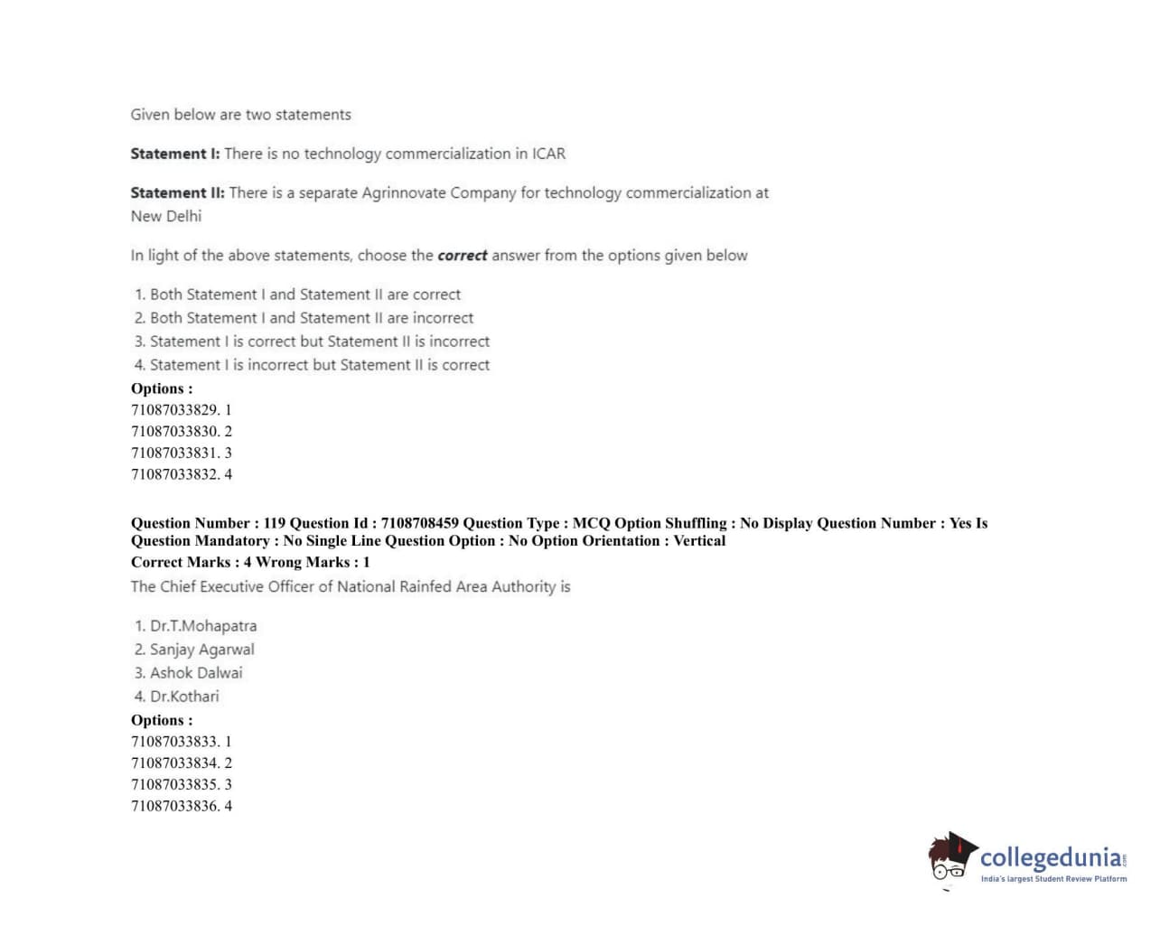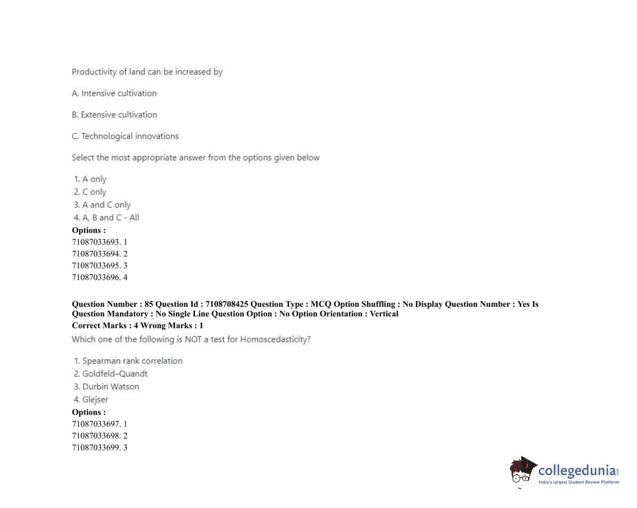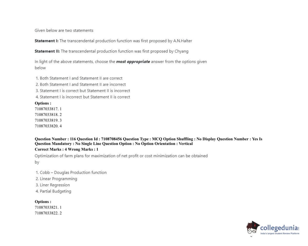 ICAR AIEEA 2020 JRF - AGRICULTURAL ECONOMICS Question Paper with Answer Key PDFs Afternoon Session