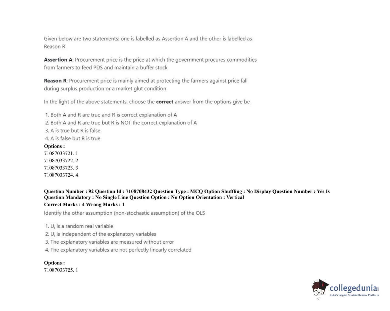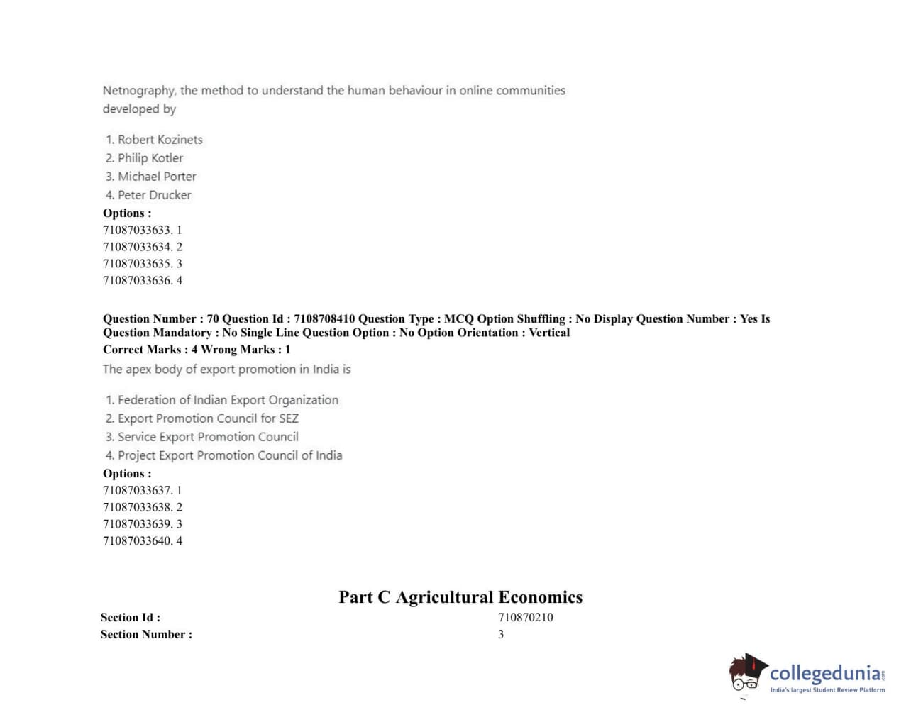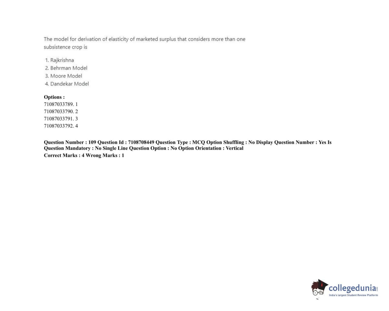 ICAR AIEEA 2020 JRF - AGRICULTURAL ECONOMICS Question Paper with Answer Key PDFs Afternoon Session