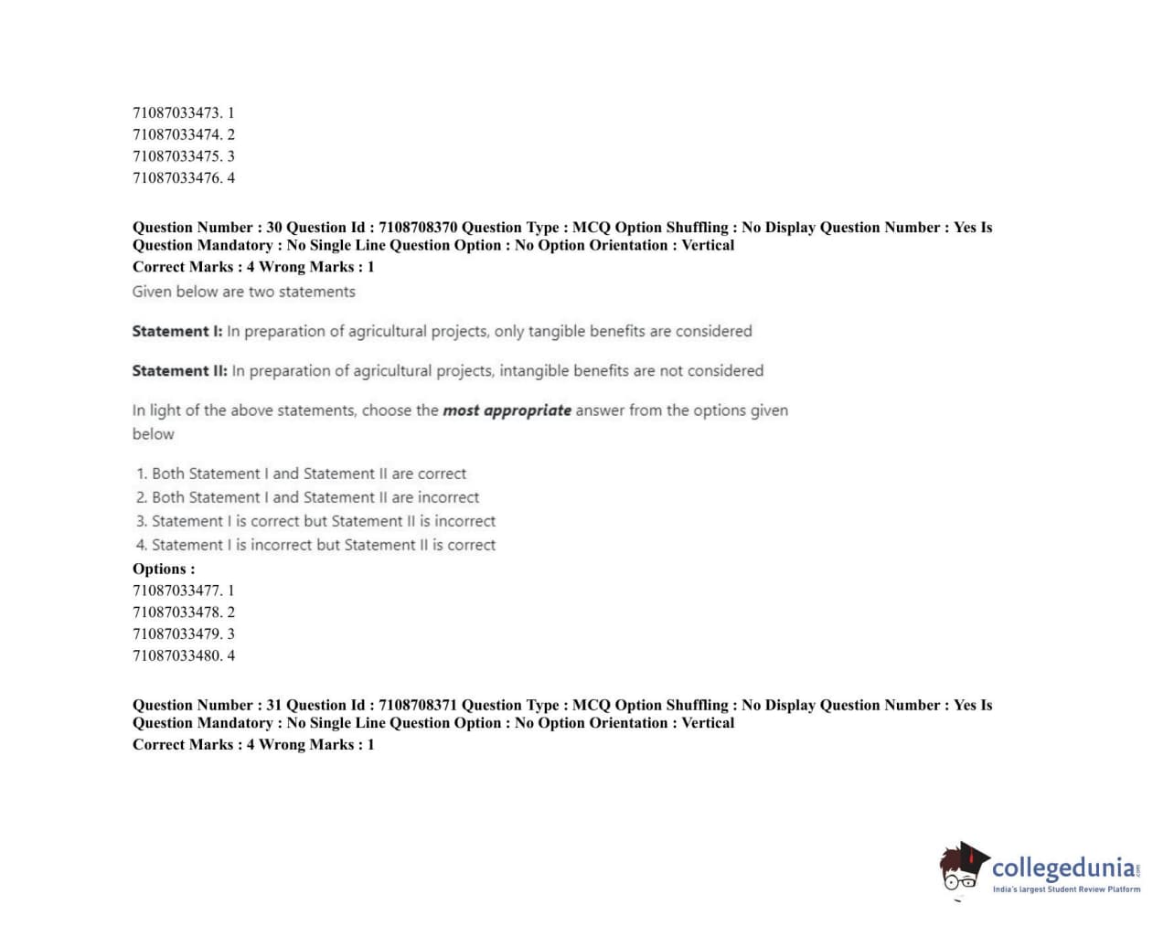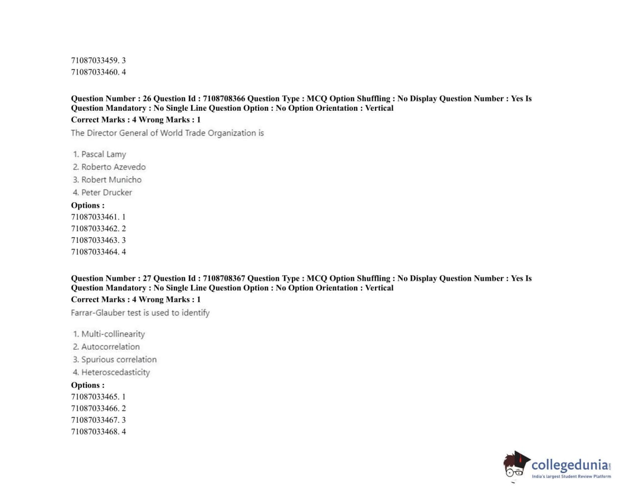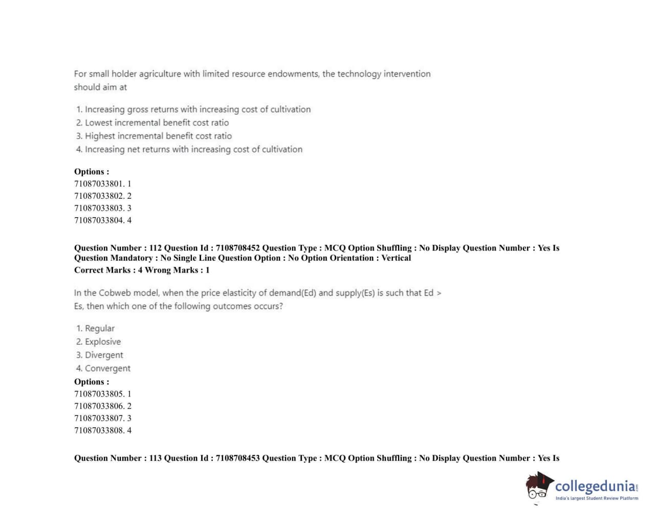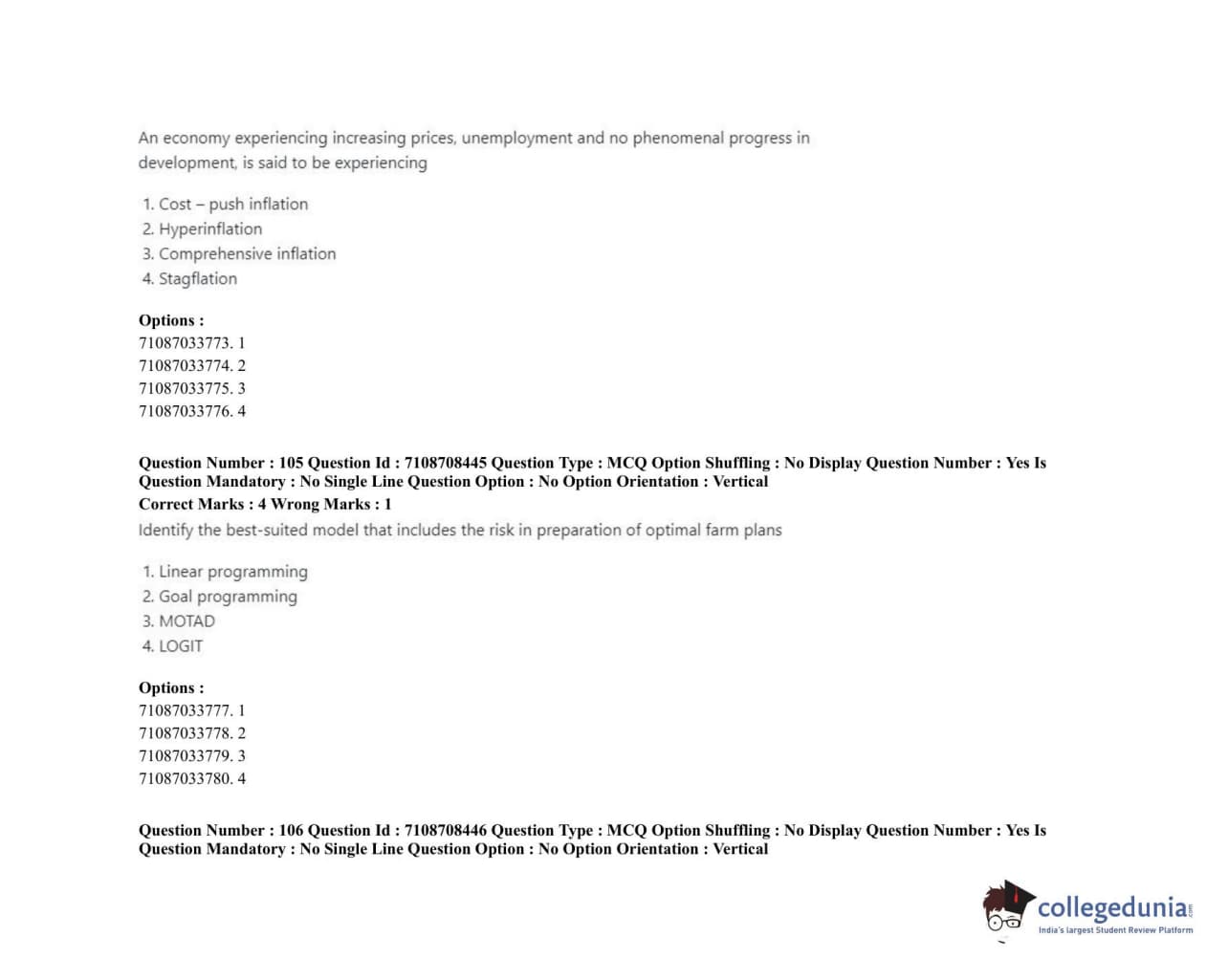 ICAR AIEEA 2020 JRF - AGRICULTURAL ECONOMICS Question Paper with Answer Key PDFs Afternoon Session