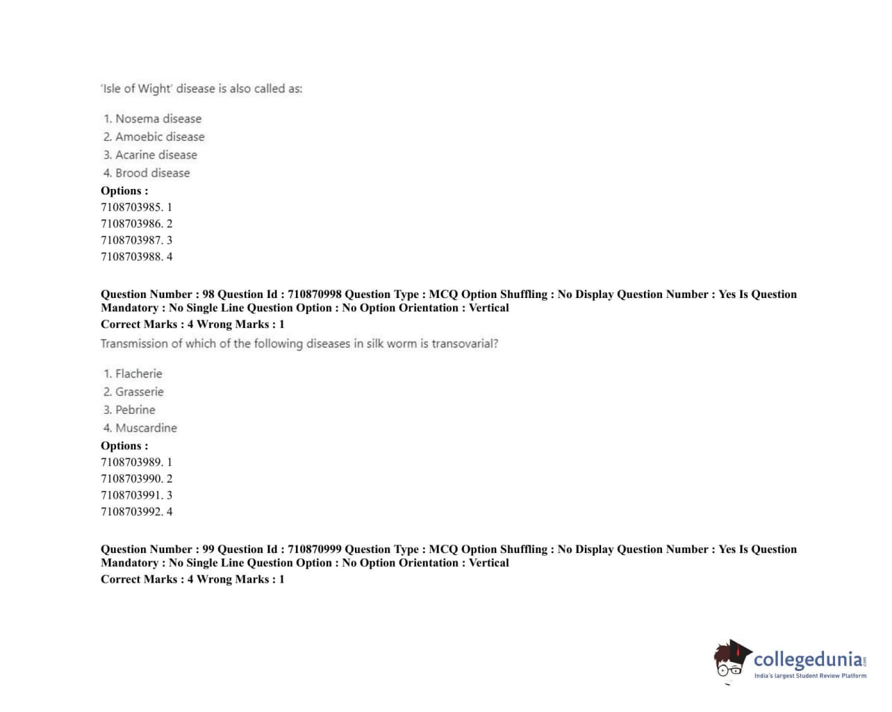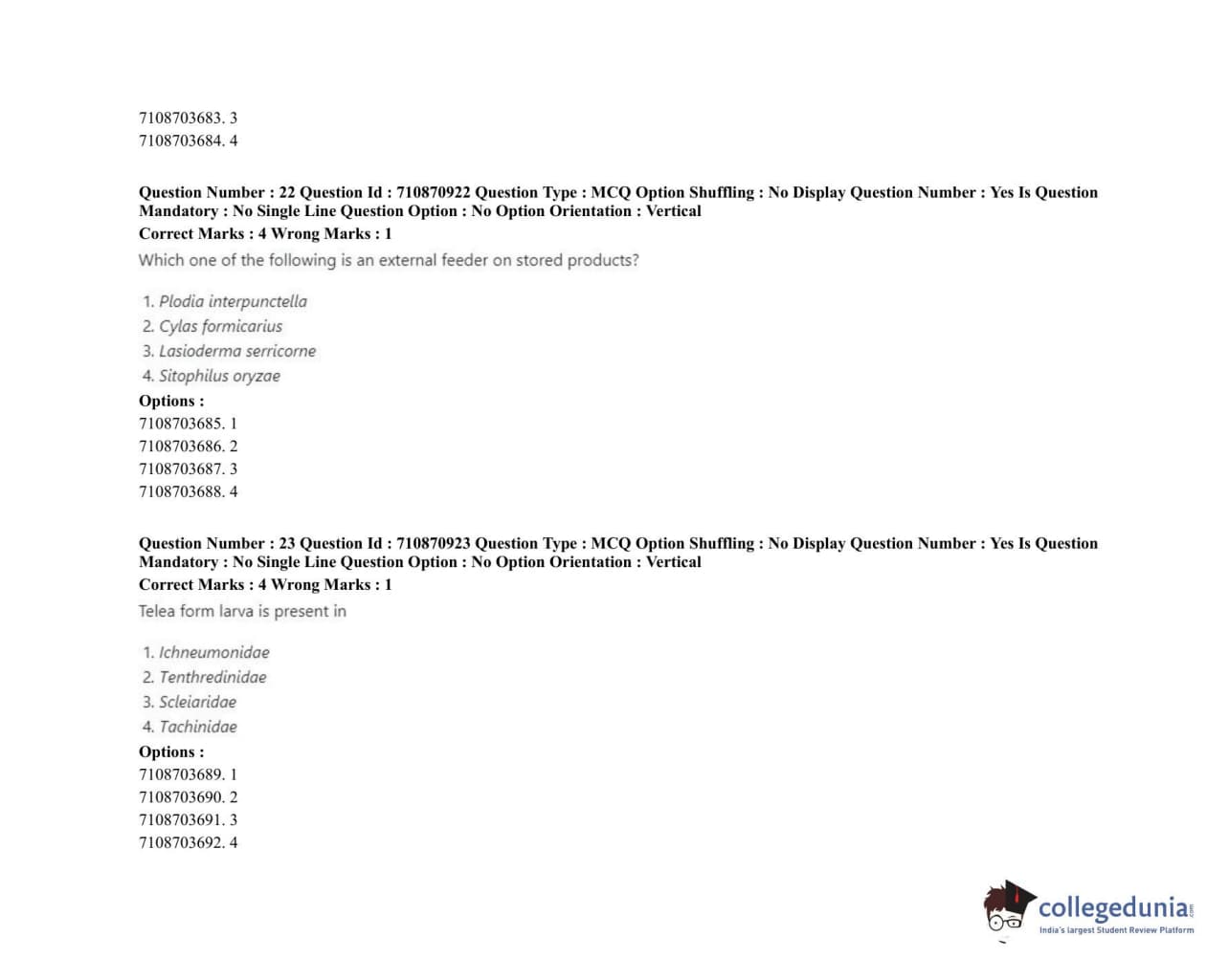 | ICAR AIEEA 2020 JRF - AGRICULTURAL ENTOMOLOGY Question Paper PDF | ICAR AIEEA 2020 JRF - AGRICULTURAL ENTOMOLOGY Answer Key PDF |