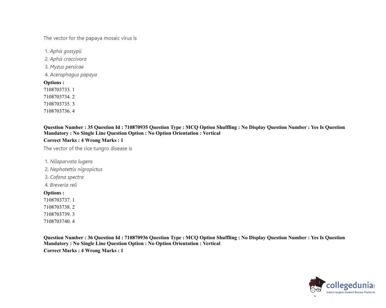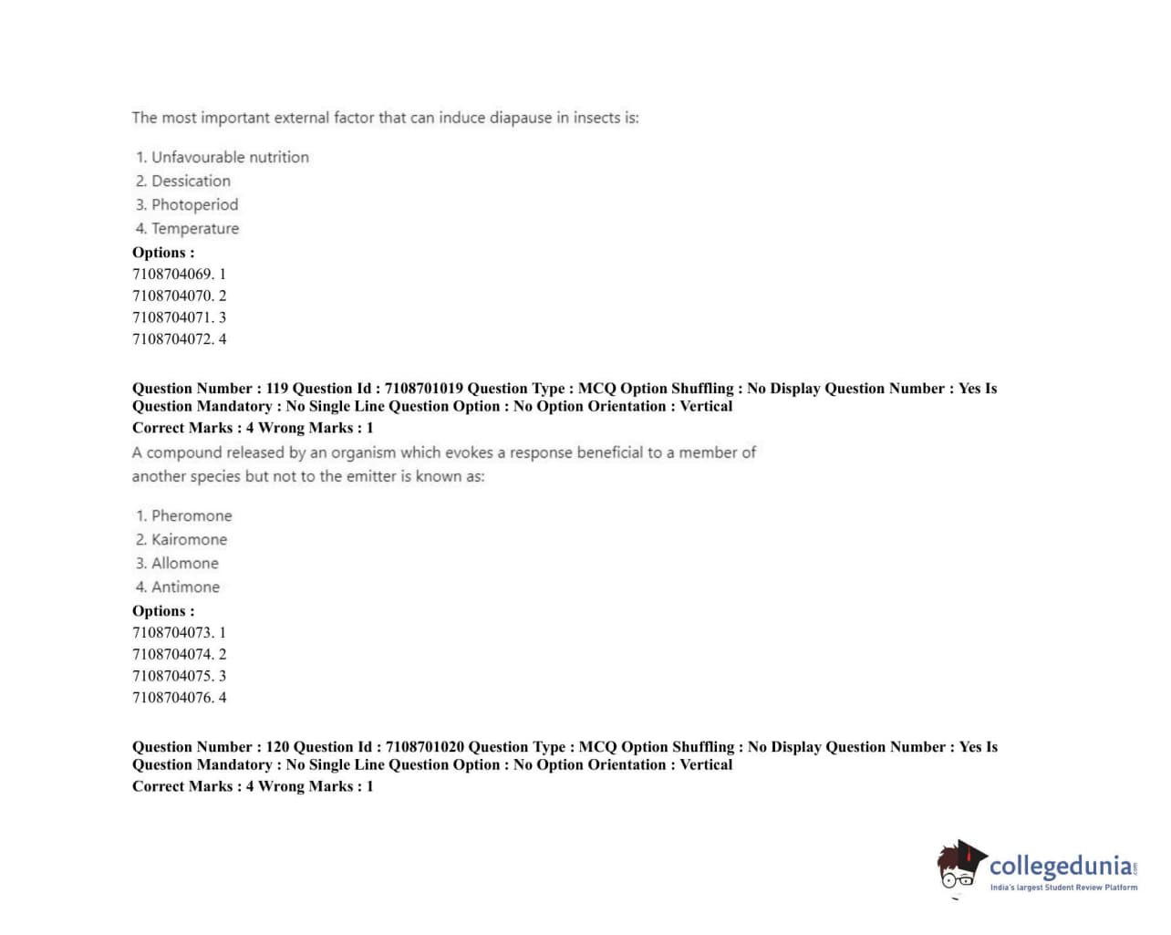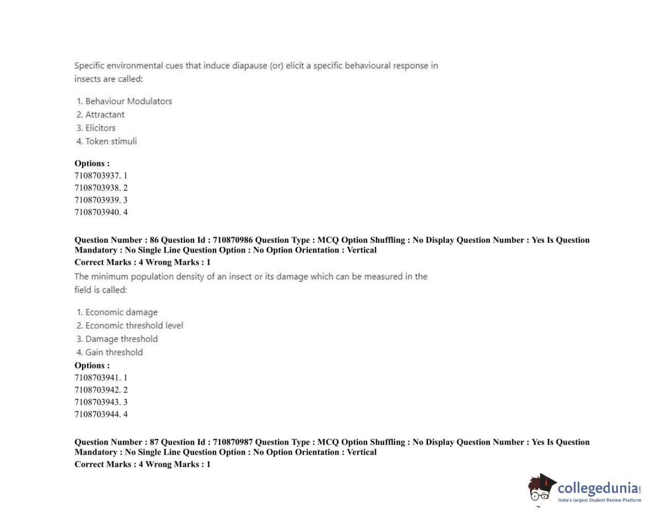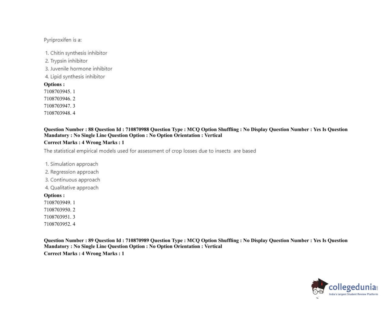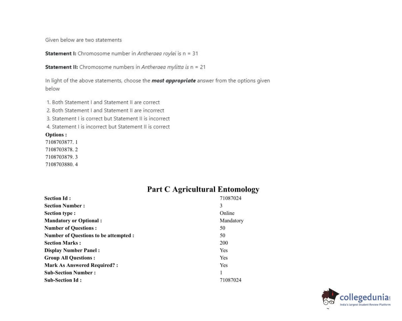 ICAR AIEEA 2020 JRF - AGRICULTURAL ENTOMOLOGY Question Paper with Answer Key PDFs Afternoon Session