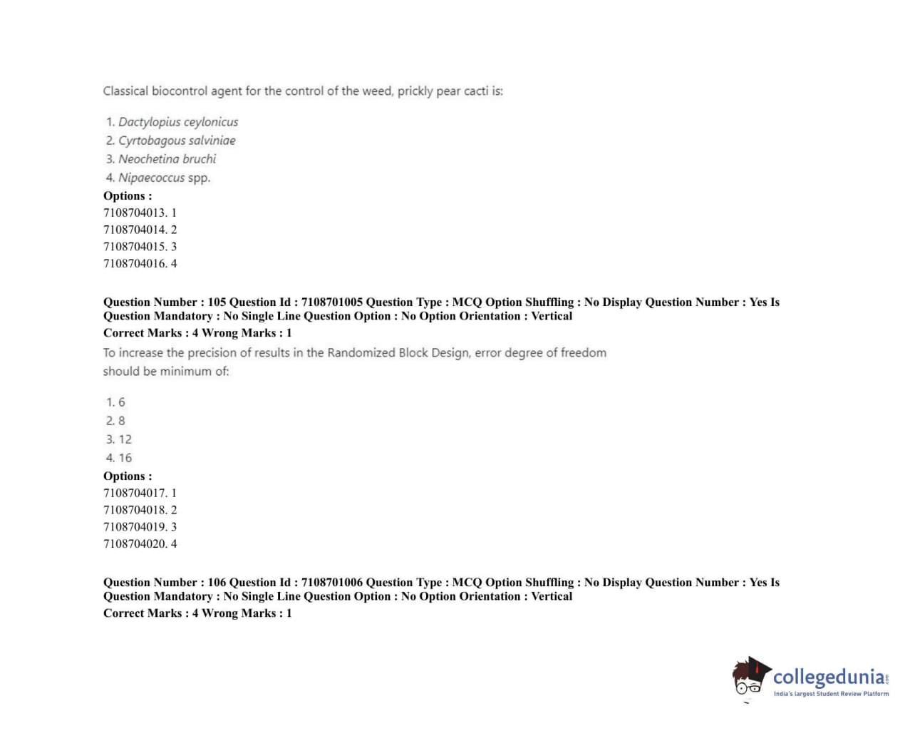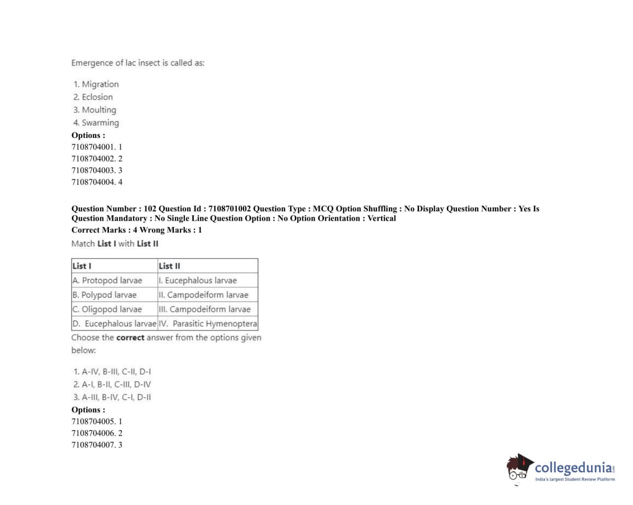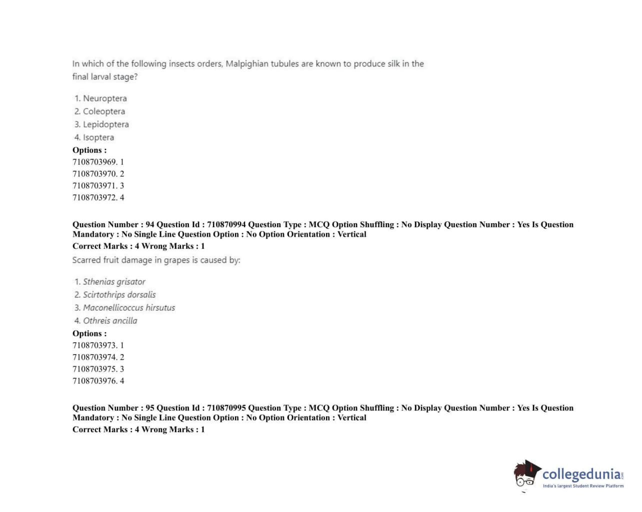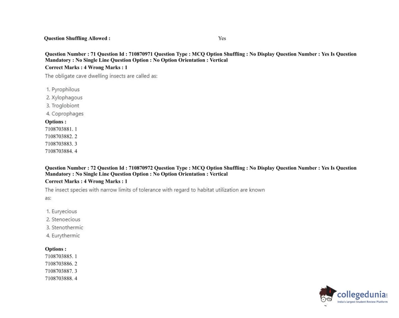ICAR AIEEA 2020 JRF - AGRICULTURAL ENTOMOLOGY Question Paper with Answer Key PDFs Afternoon Session
