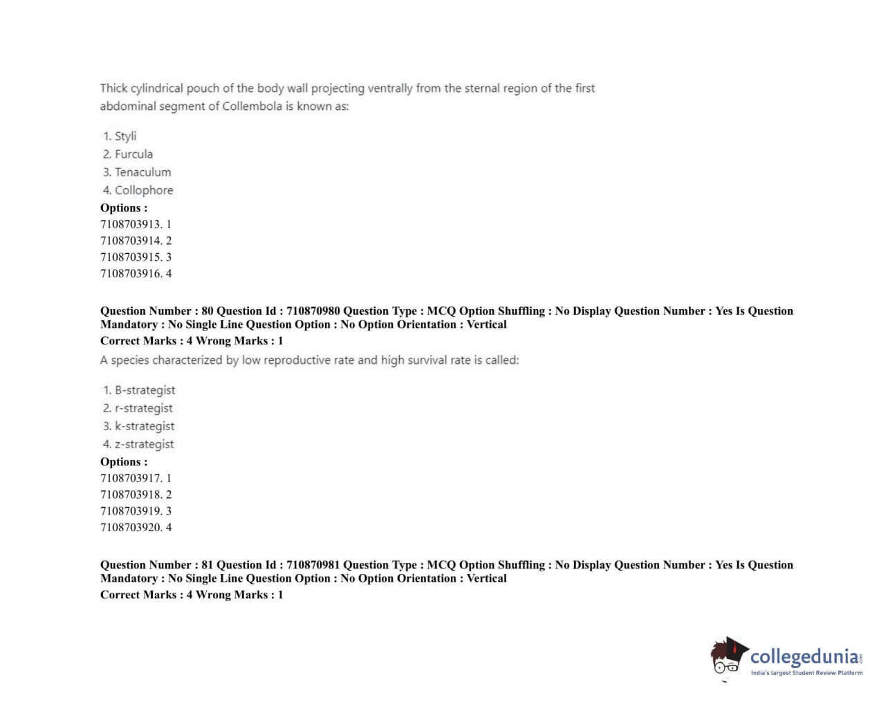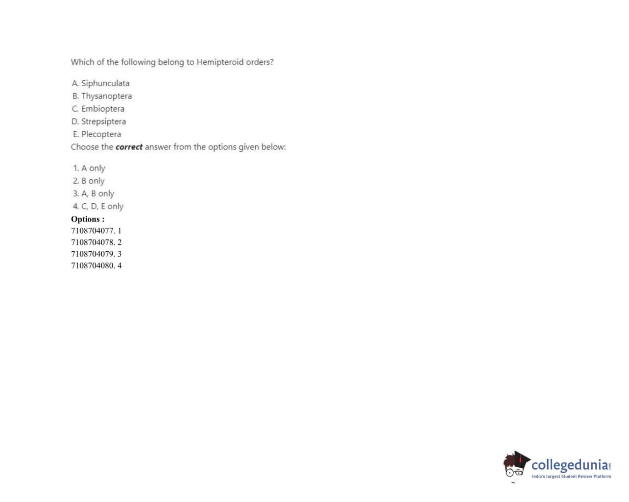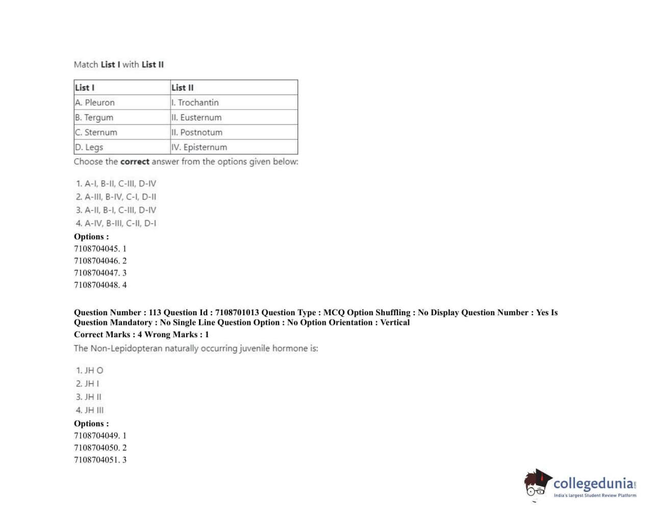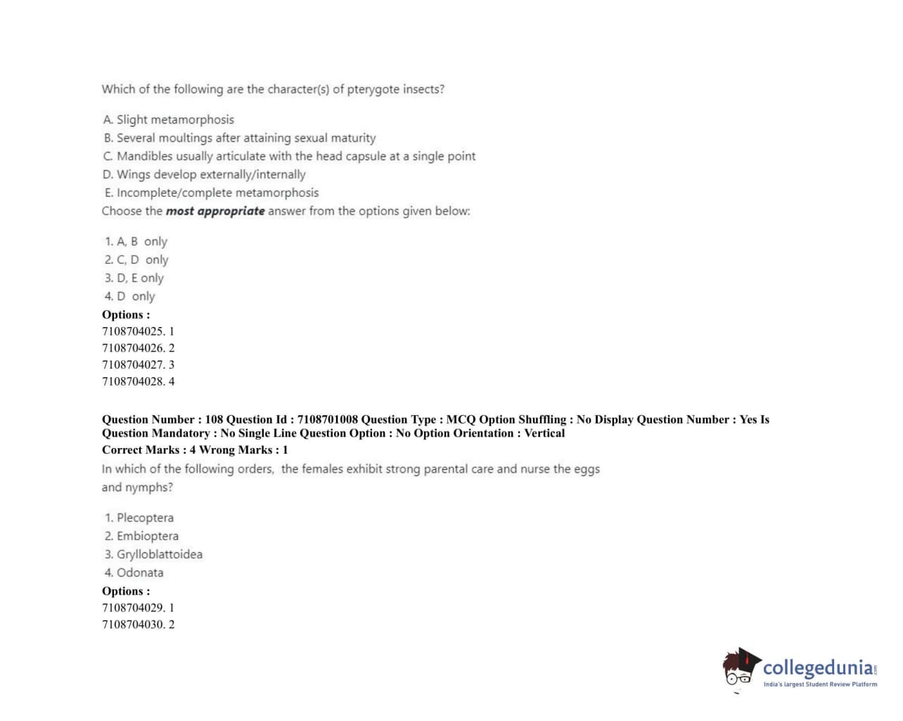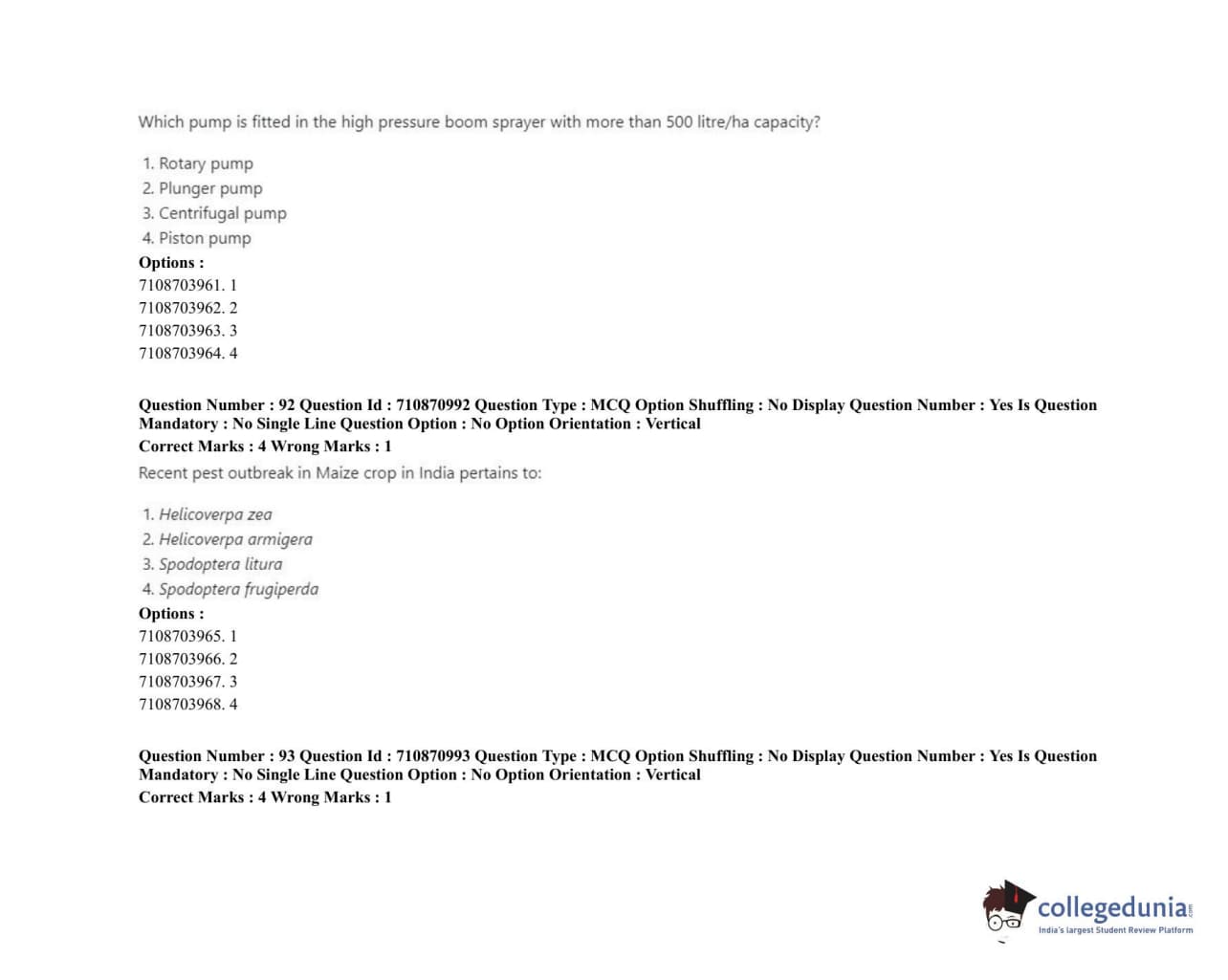 ICAR AIEEA 2020 JRF - AGRICULTURAL ENTOMOLOGY Question Paper with Answer Key PDFs Afternoon Session