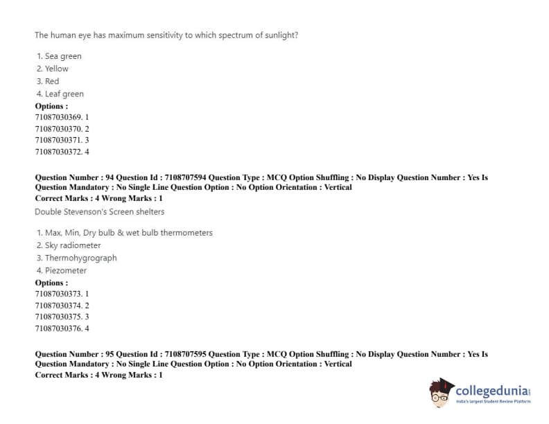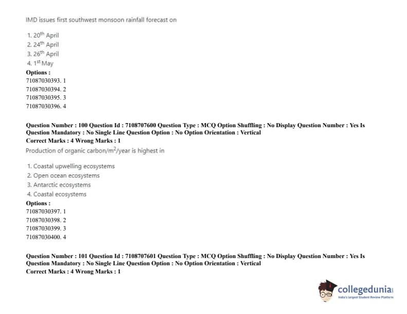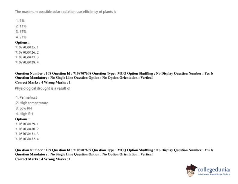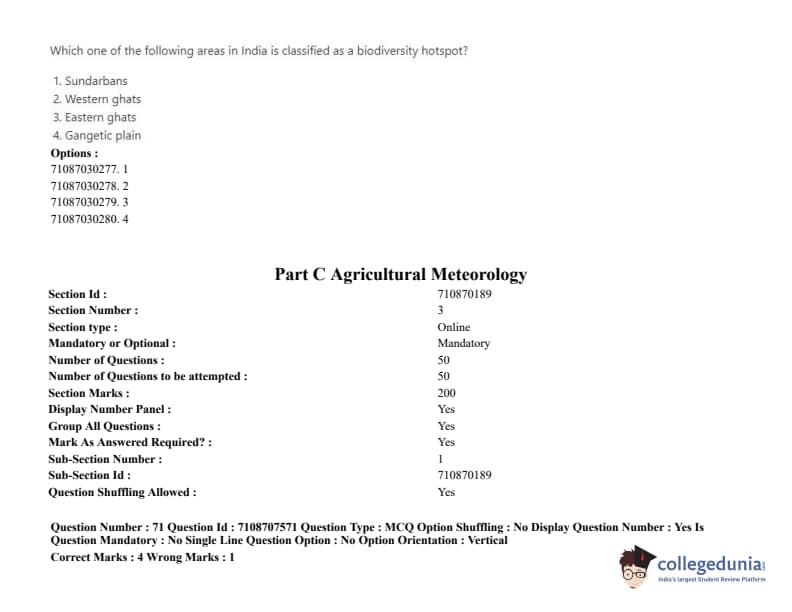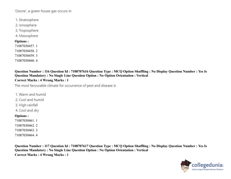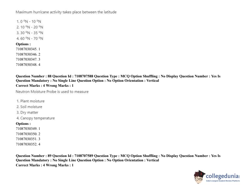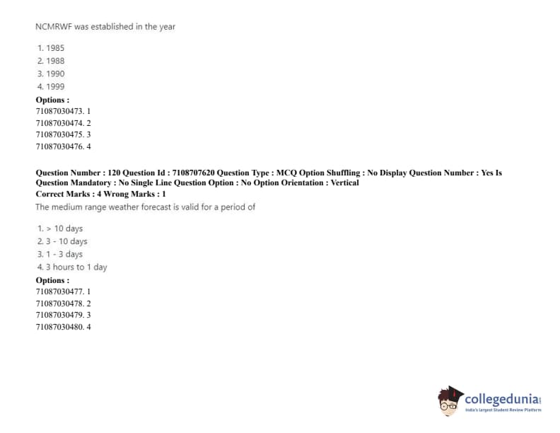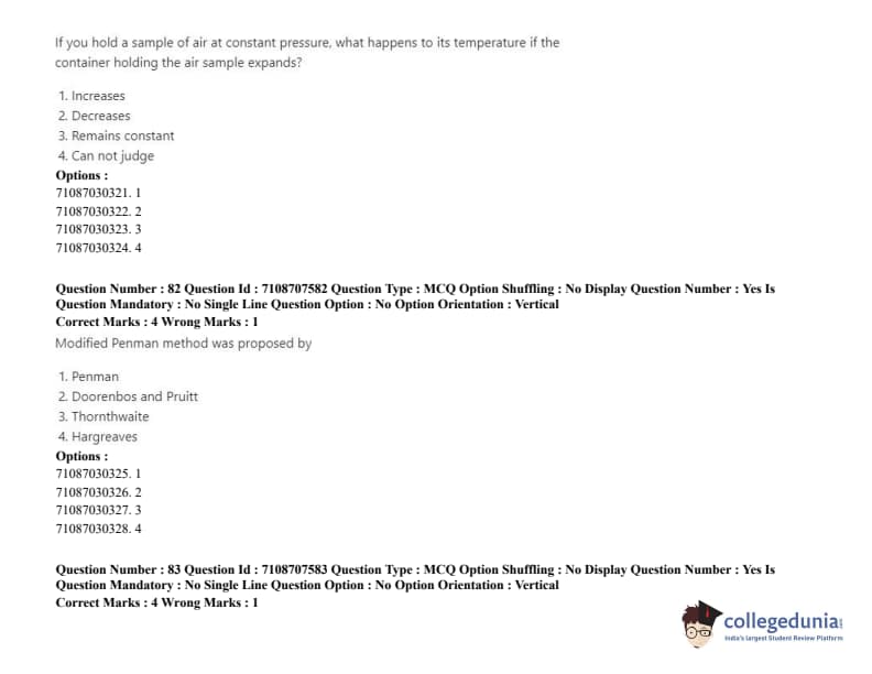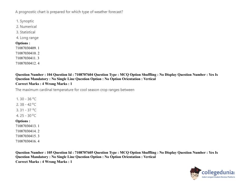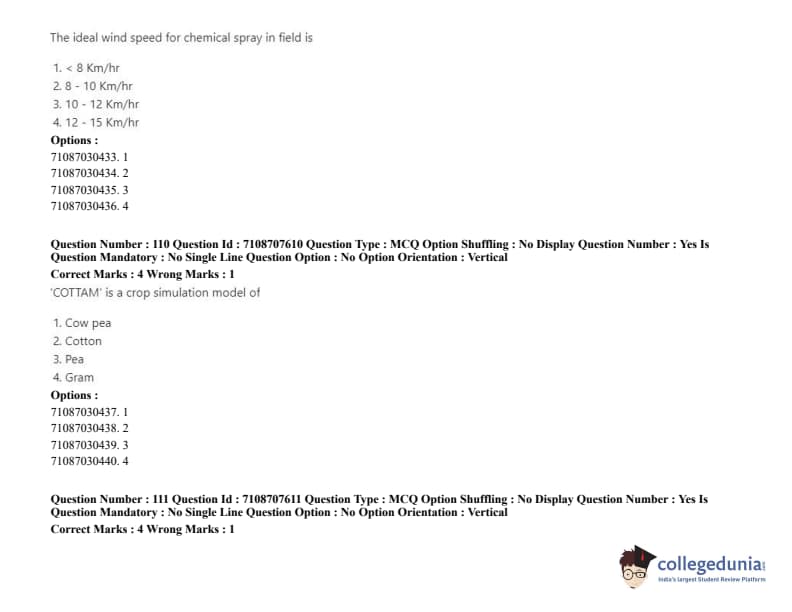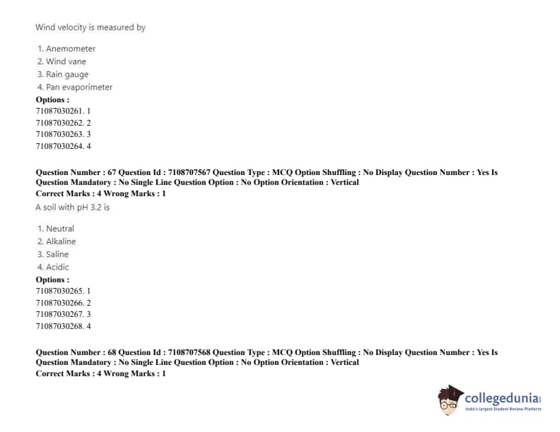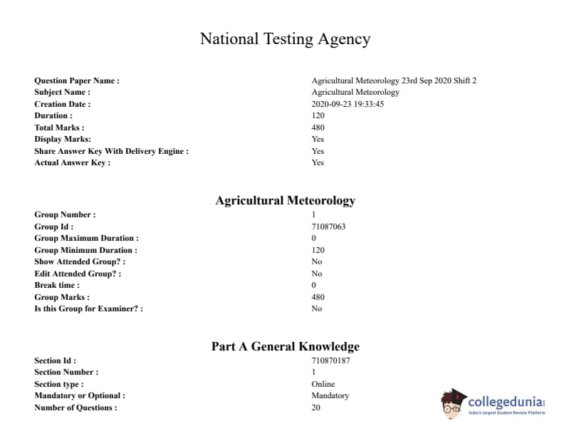 ICAR AIEEA 2020 JRF - AGRICULTURAL METEOROLOGY Question paper with answer key pdf conducted on September 23, 2020 in Afternoon Session is available for download. The exam was successfully organized by National Testing Agency (NTA). The question paper comprised a total of 120 questions.