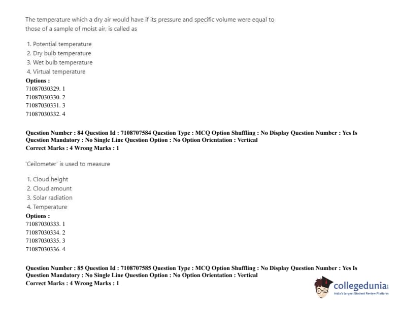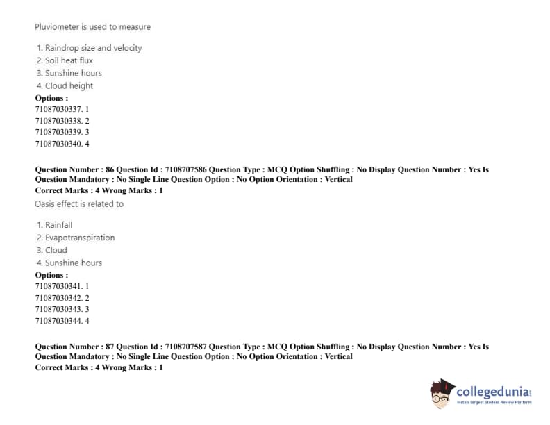 ICAR AIEEA 2020 JRF - AGRICULTURAL METEOROLOGY Question Paper with Answer Key PDFs Afternoon Session