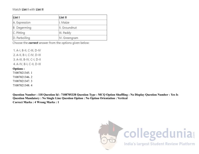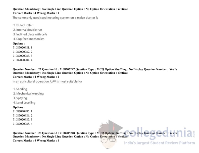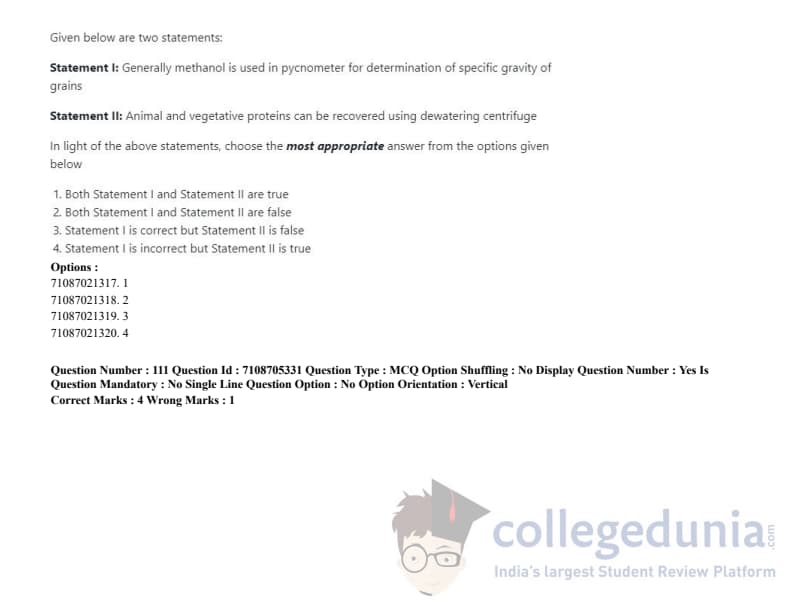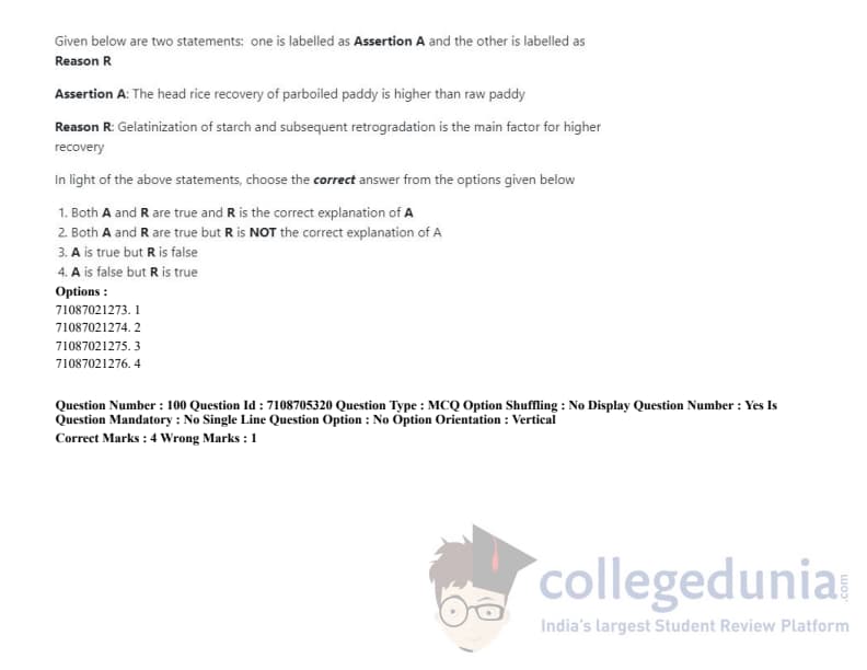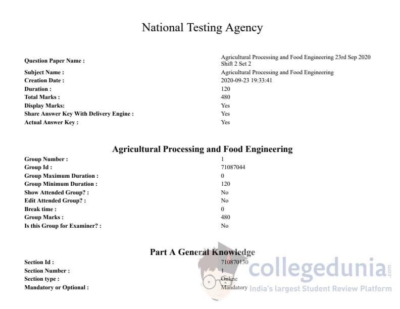 ICAR AIEEA 2020 JRF - AGRICULTURAL PROCESSING AND FOOD ENGINEERING Question paper with answer key pdf conducted on September 23, 2020 in Afternoon Session is available for download. The exam was successfully organized by National Testing Agency (NTA). The question paper comprised a total of 120 questions.