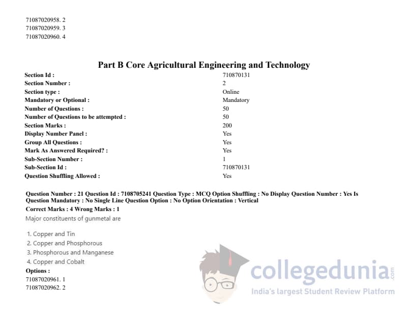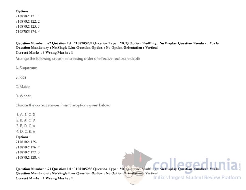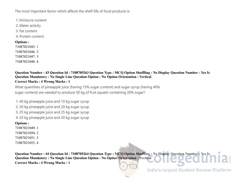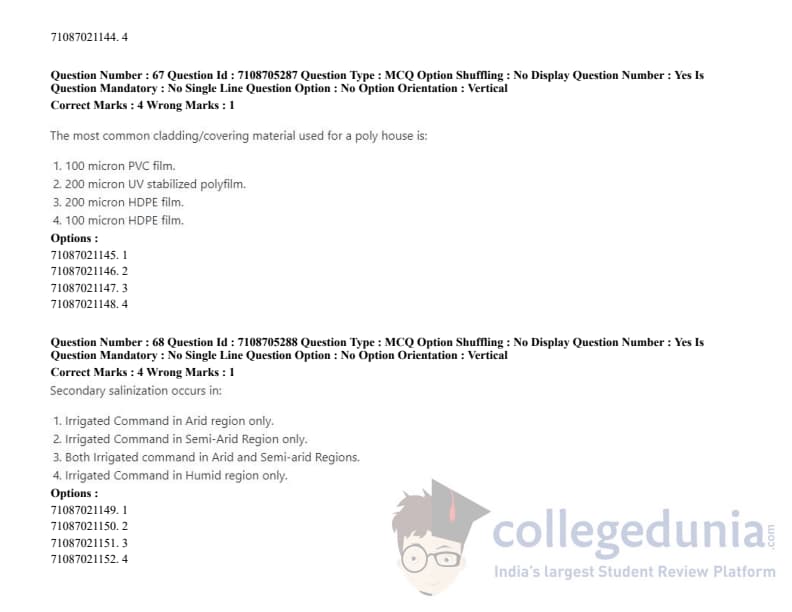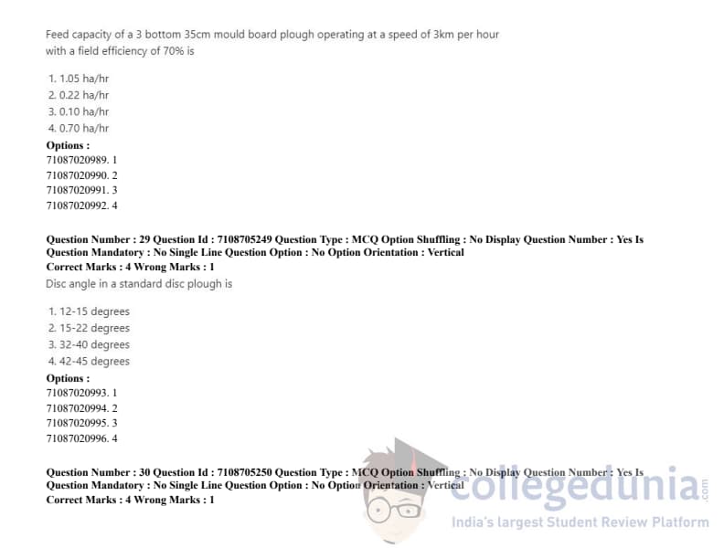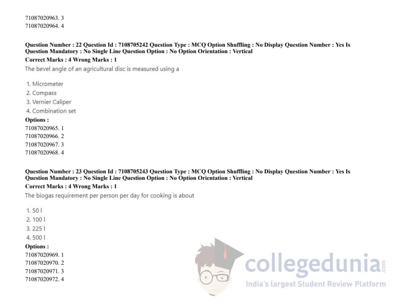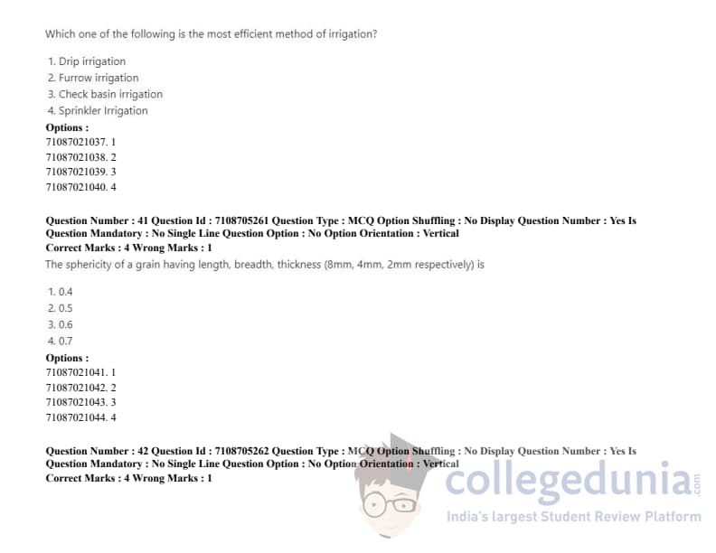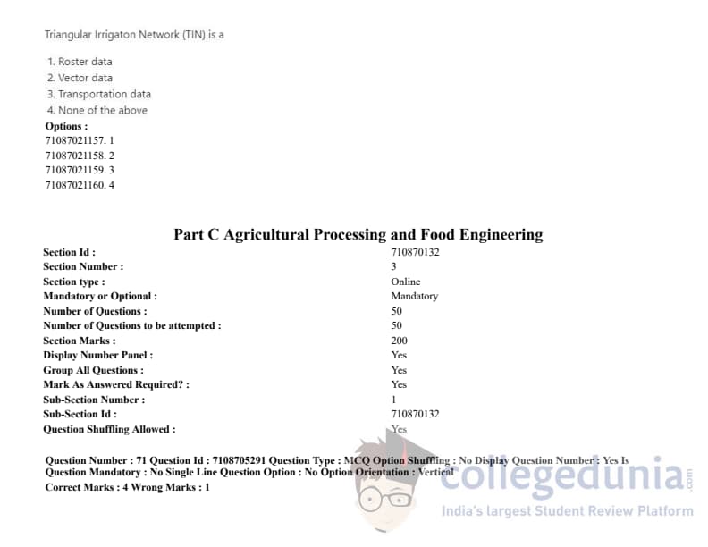 ICAR AIEEA 2020 JRF - AGRICULTURAL PROCESSING AND FOOD ENGINEERING Question Paper with Answer Key PDFs Afternoon Session