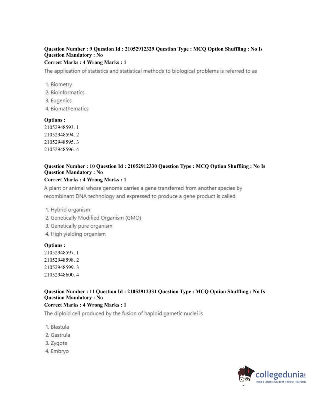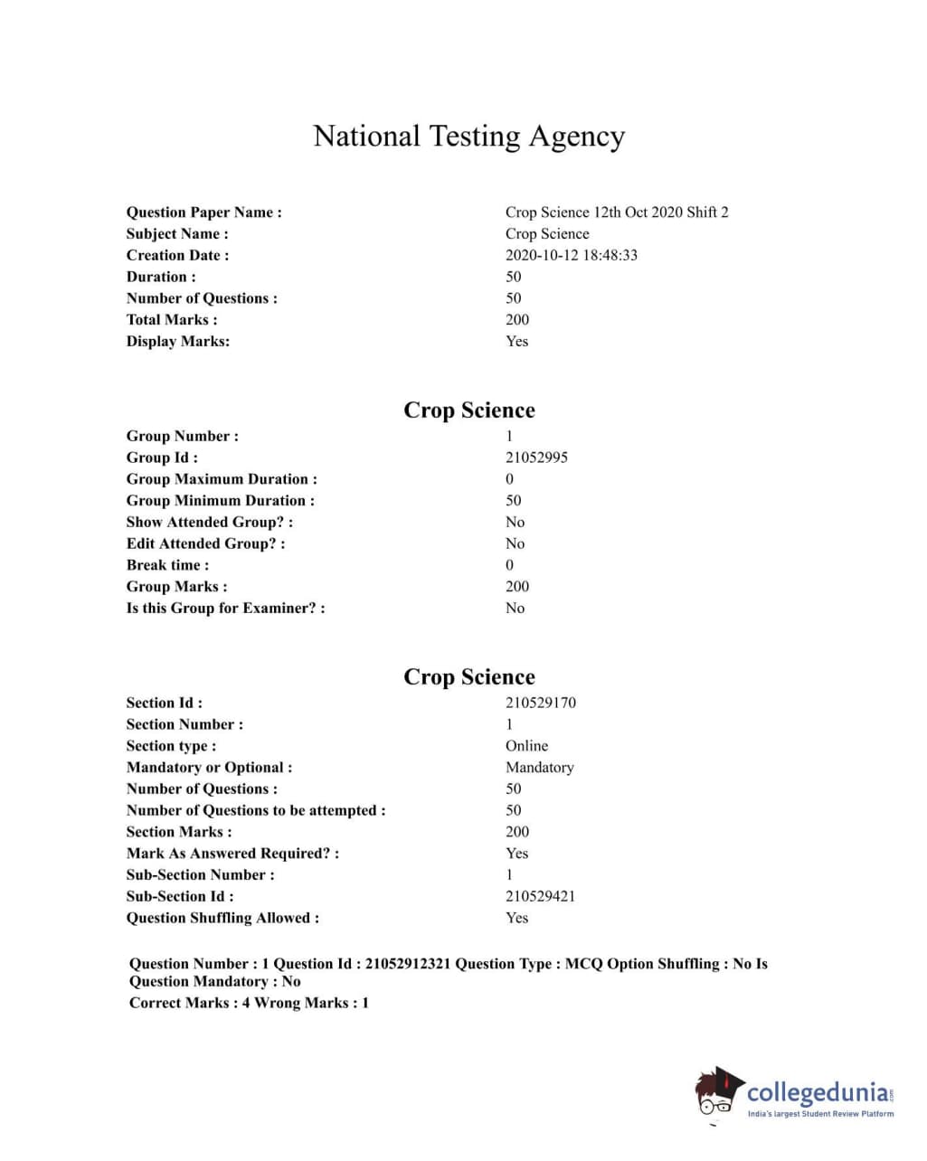 ICAR AIEEA 2020 JRF - CROP SCIENCE Question paper with answer key pdf conducted on October 12, 2020 in Afternoon Session is available for download. The exam was successfully organized by National Testing Agency (NTA). The question paper comprised a total of 120 questions.