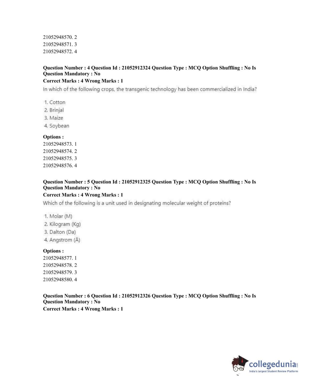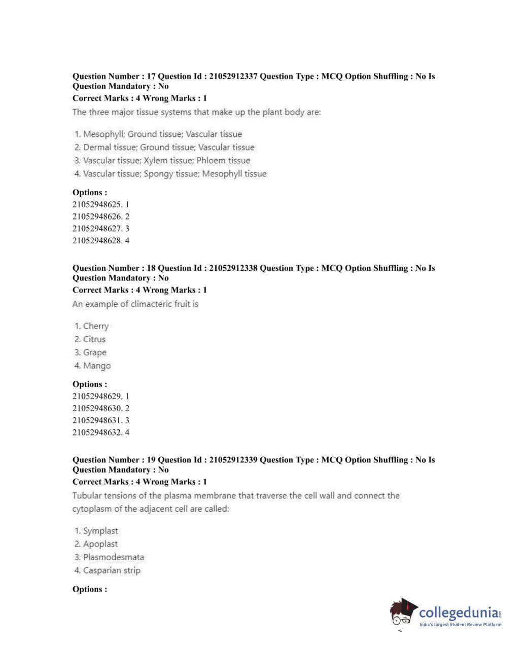 ICAR AIEEA 2020 JRF - CROP SCIENCE Question Paper with Answer Key PDFs Afternoon Session
