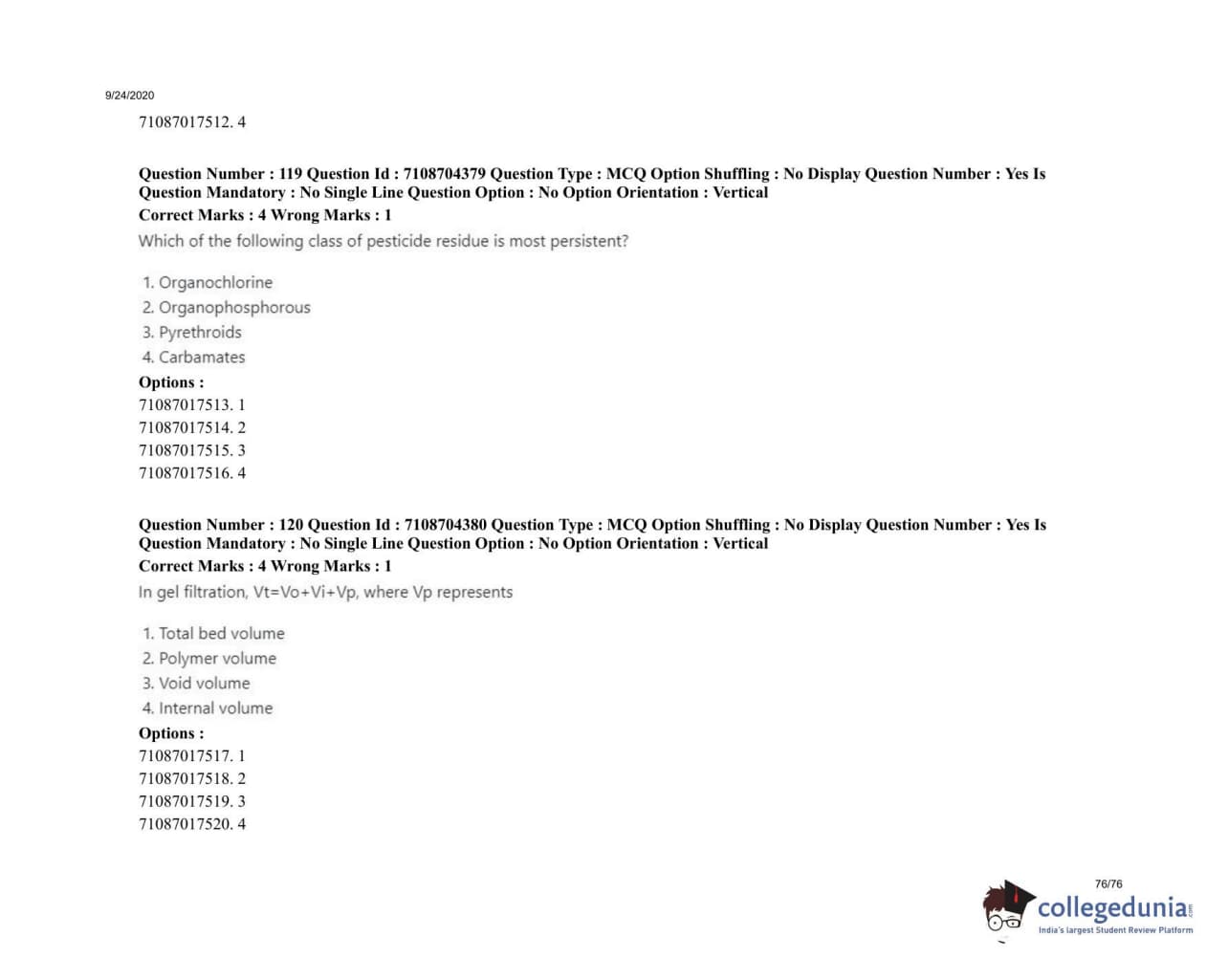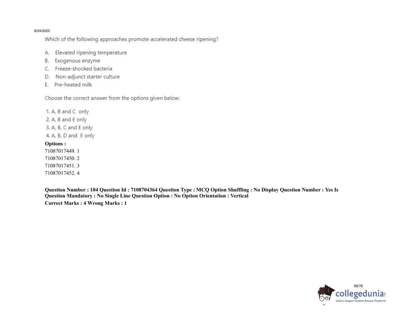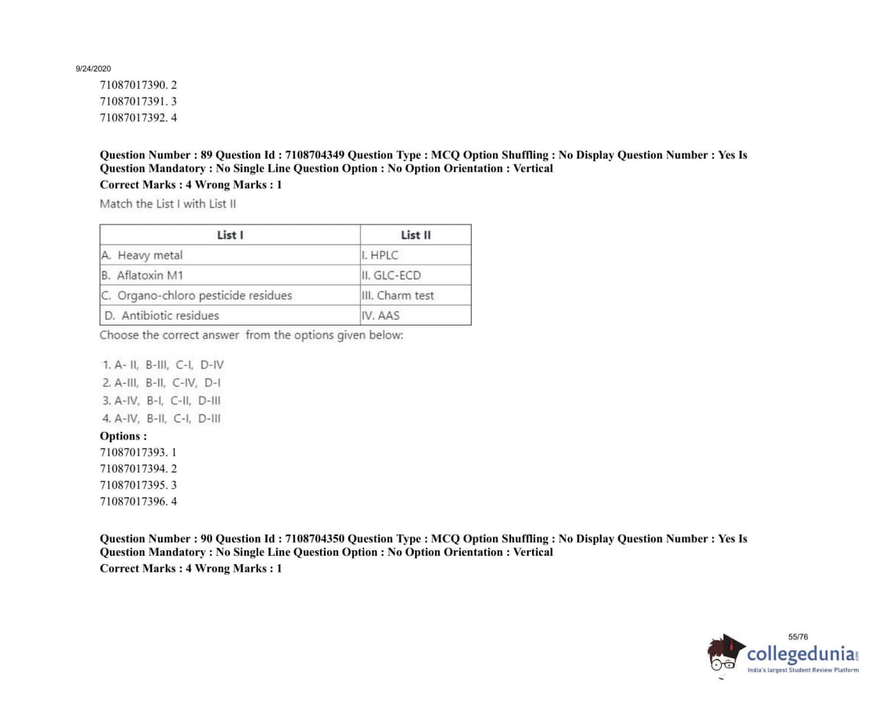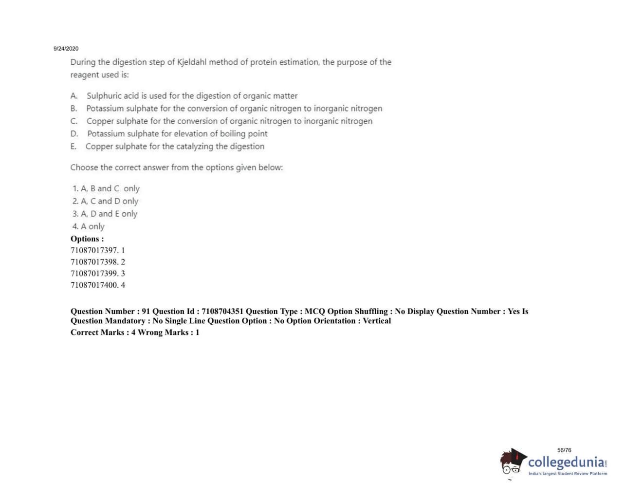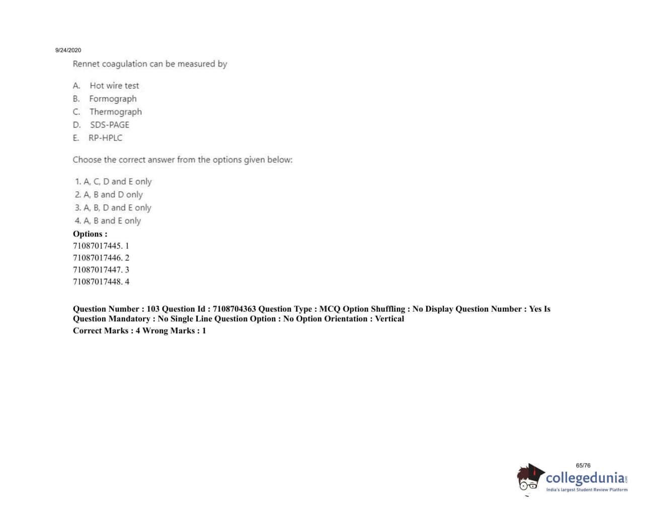 ICAR AIEEA 2020 JRF - DAIRY CHEMISTRY Question Paper with Answer Key PDFs Afternoon Session
