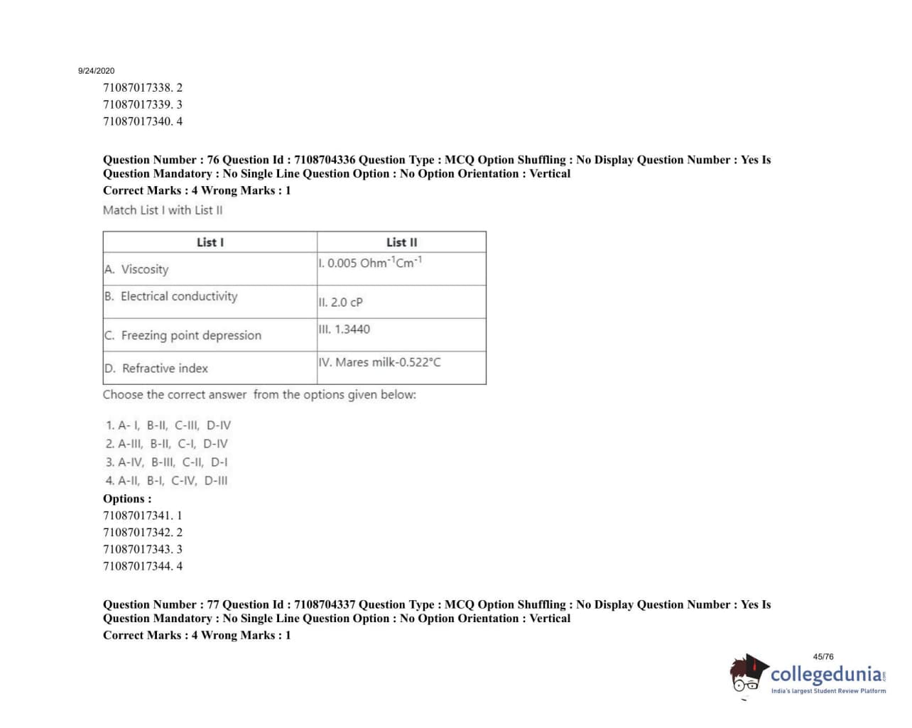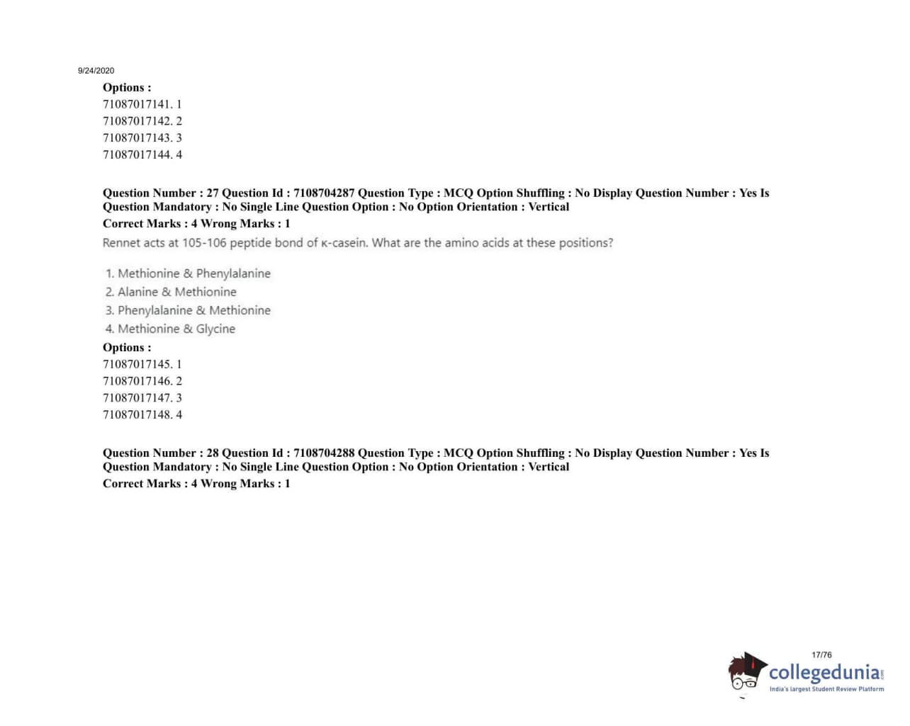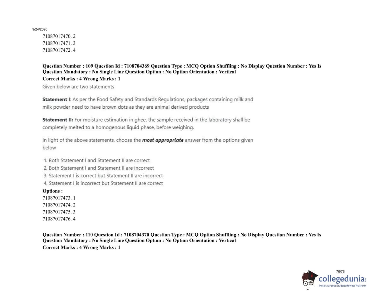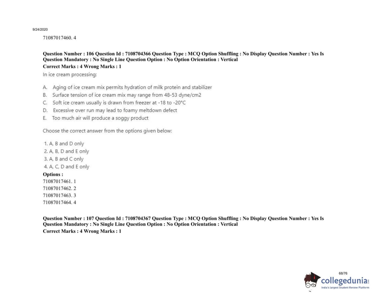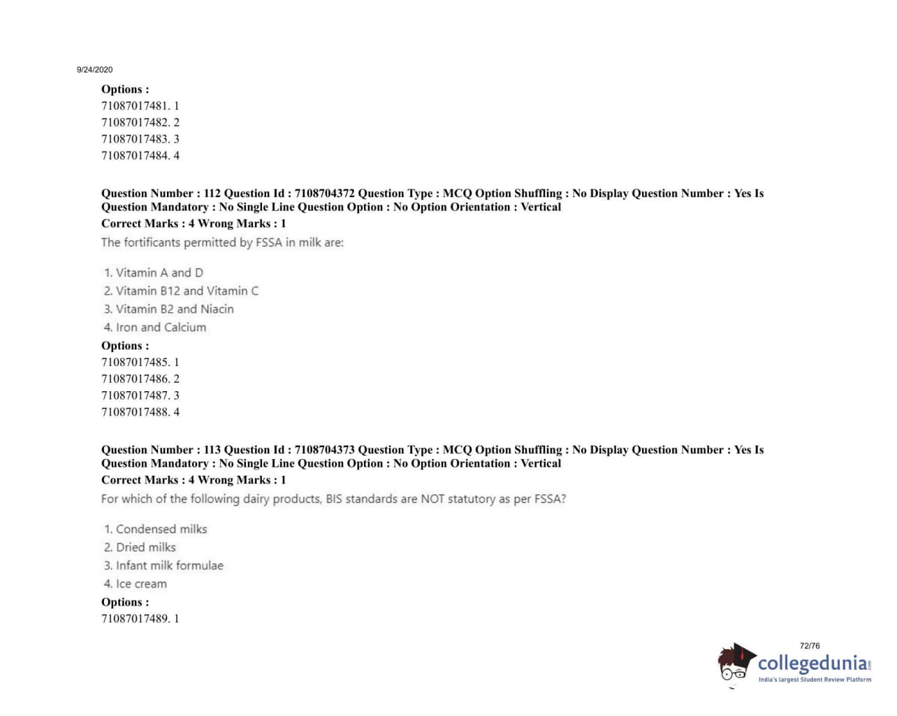 ICAR AIEEA 2020 JRF - DAIRY CHEMISTRY Question Paper with Answer Key PDFs Afternoon Session