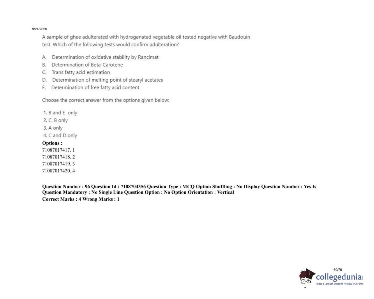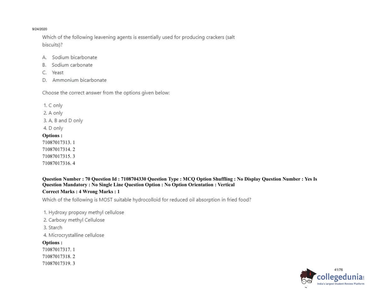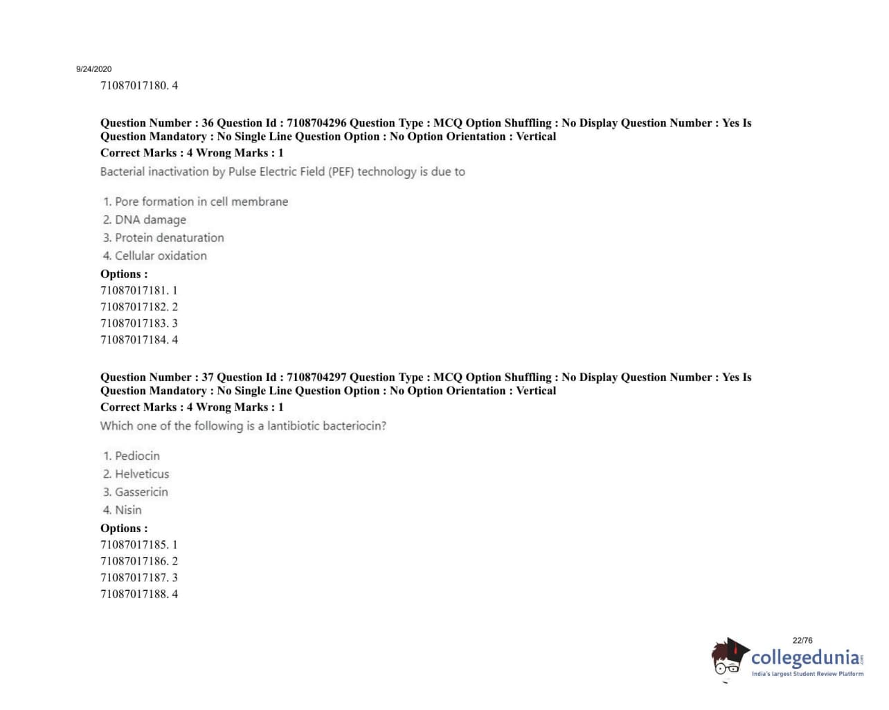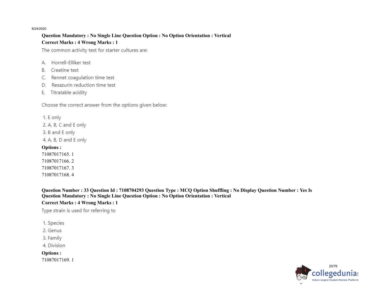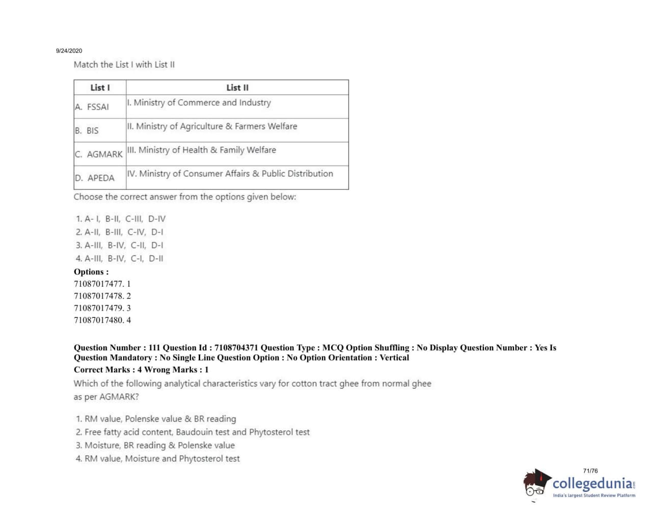 ICAR AIEEA 2020 JRF - DAIRY CHEMISTRY Question Paper with Answer Key PDFs Afternoon Session