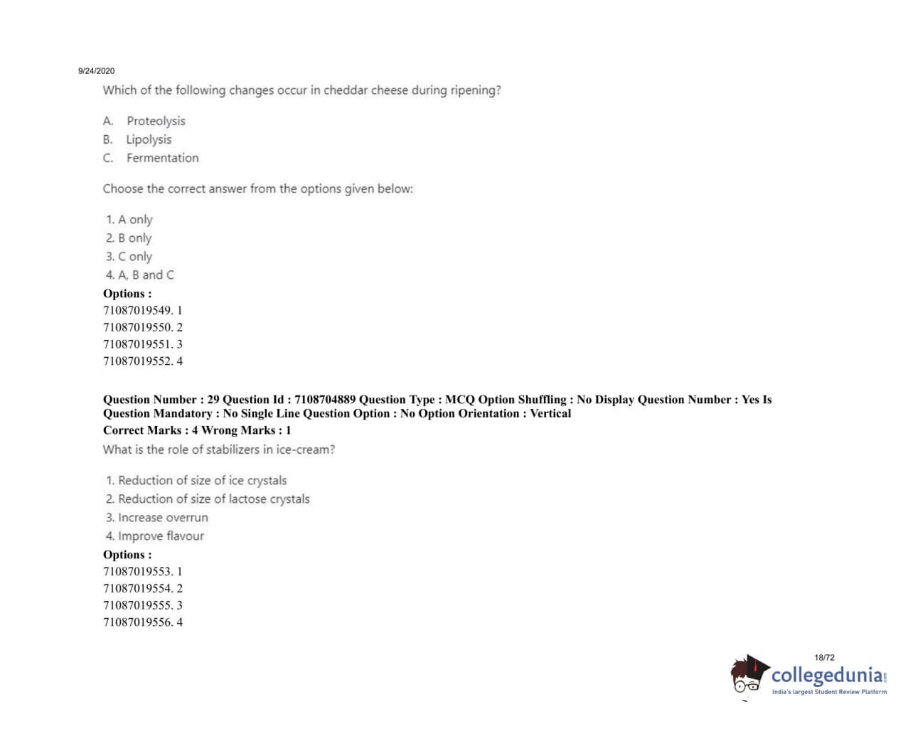 ICAR AIEEA 2020 JRF - DAIRY ENGINEERING Question paper with answer key pdf conducted on September 23, 2020 in Afternoon Session is available for download. The exam was successfully organized by National Testing Agency (NTA). The question paper comprised a total of 120 questions.