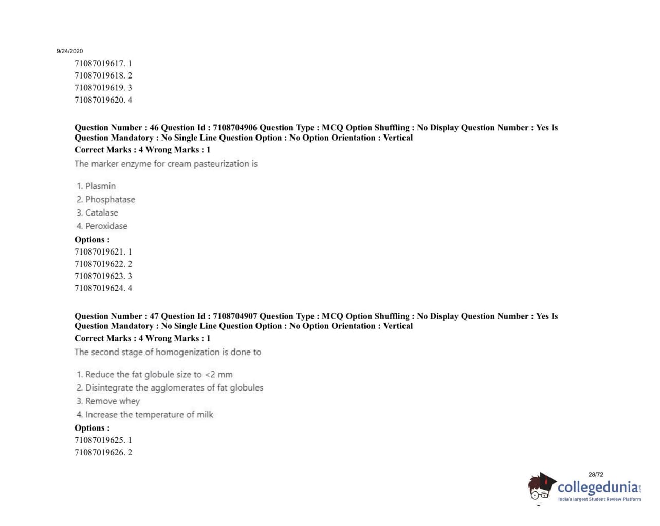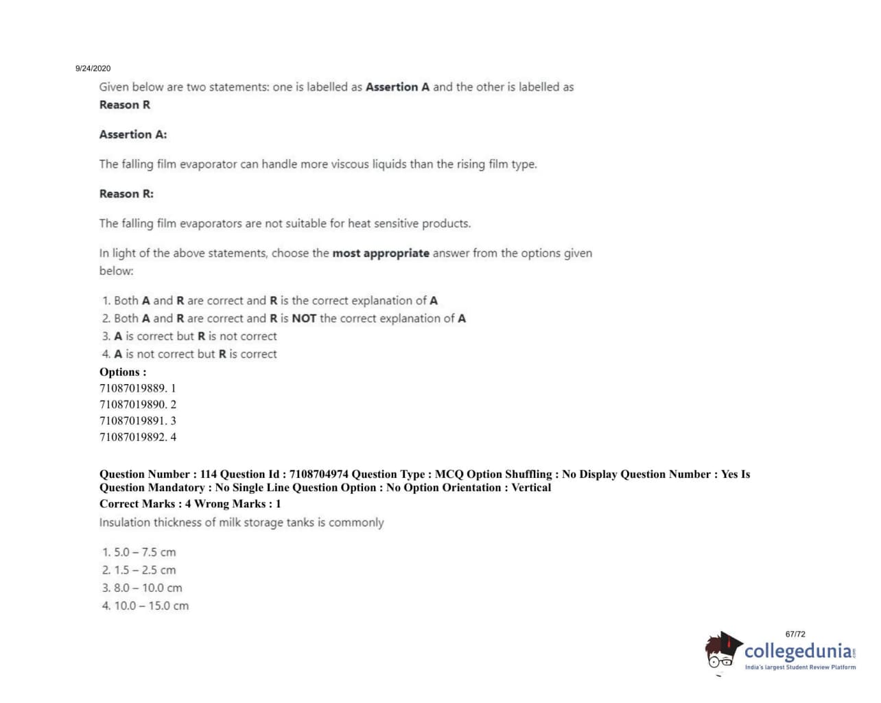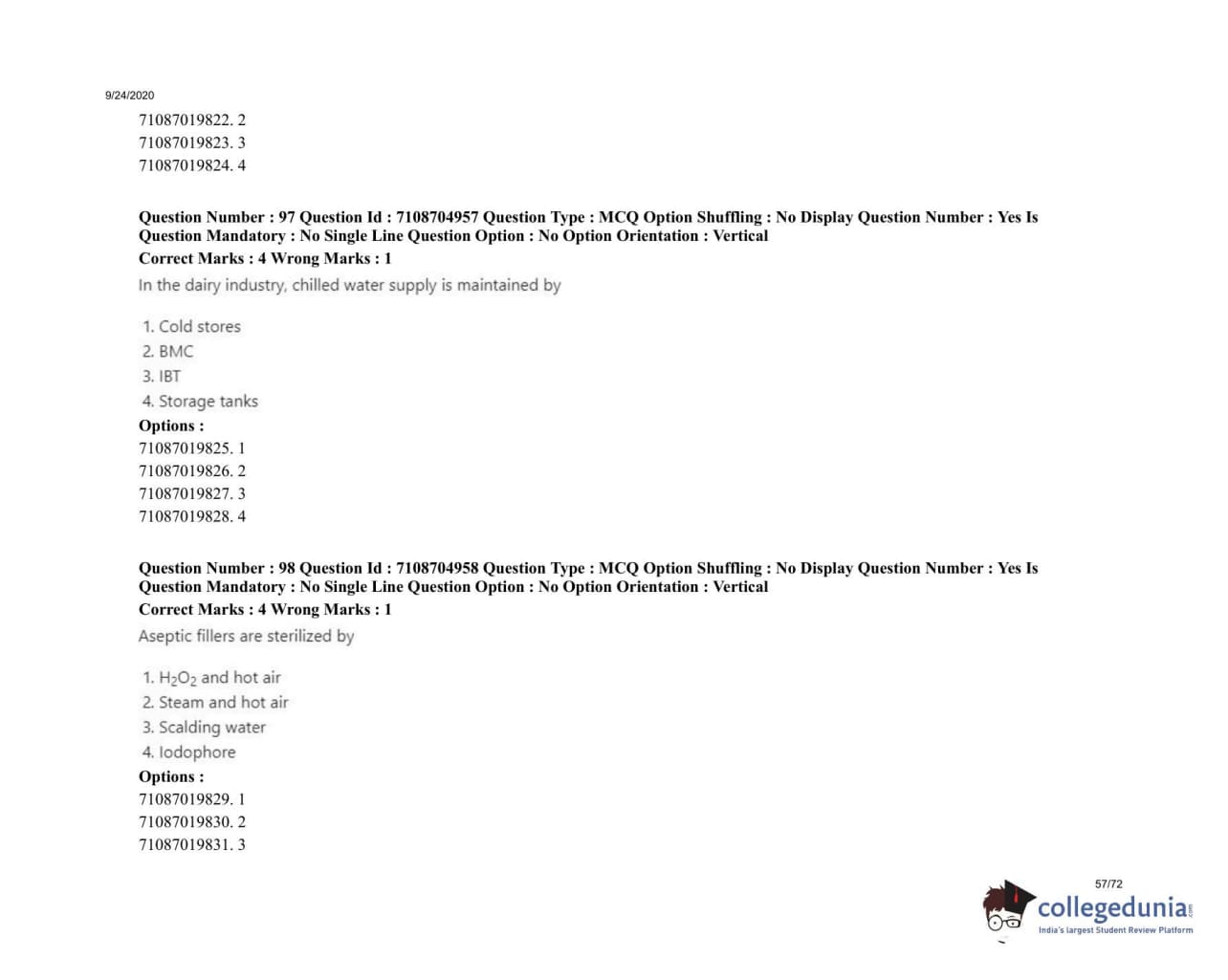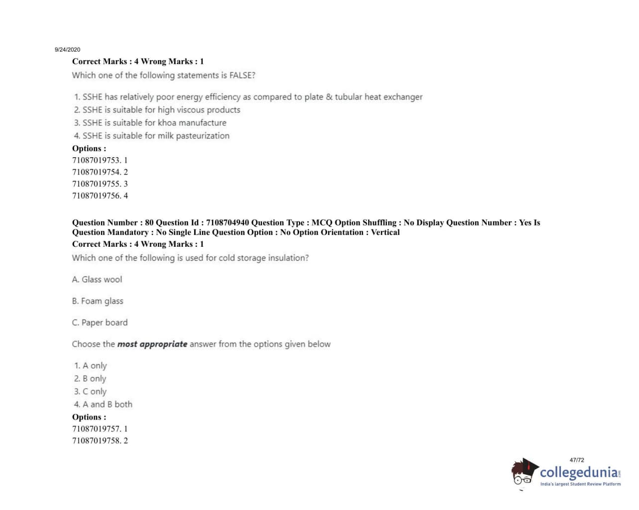 ICAR AIEEA 2020 JRF - DAIRY ENGINEERING Question Paper with Answer Key PDFs Afternoon Session