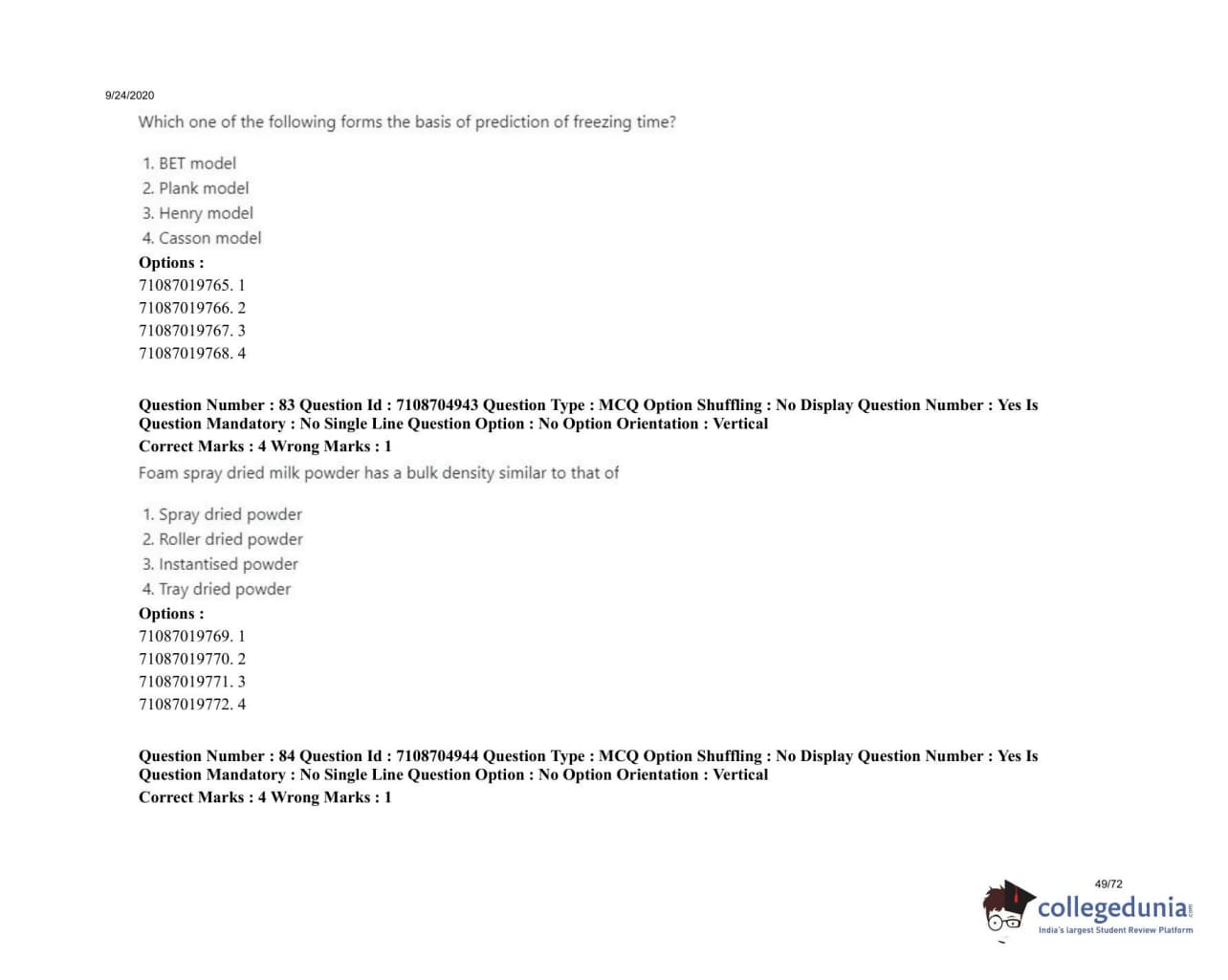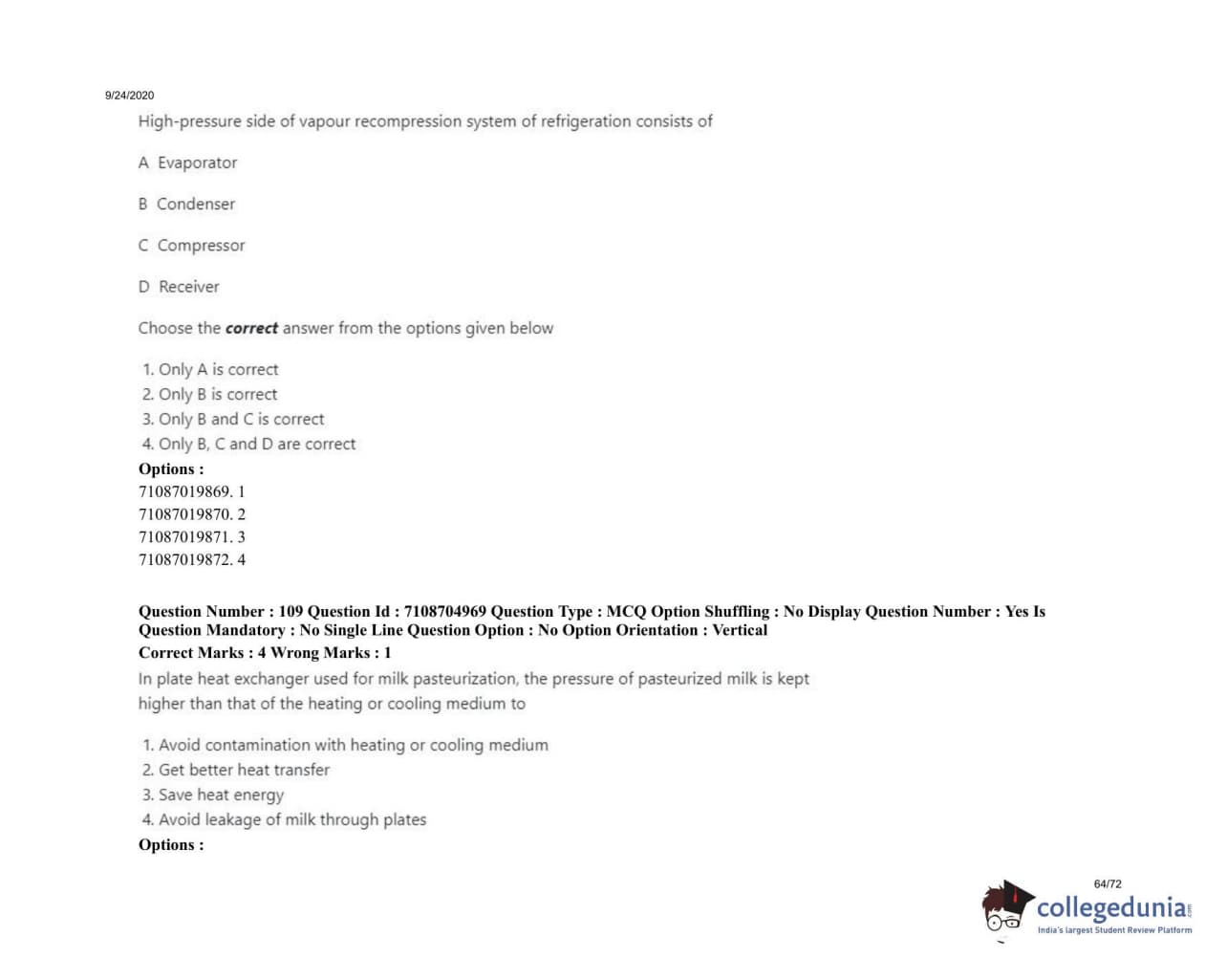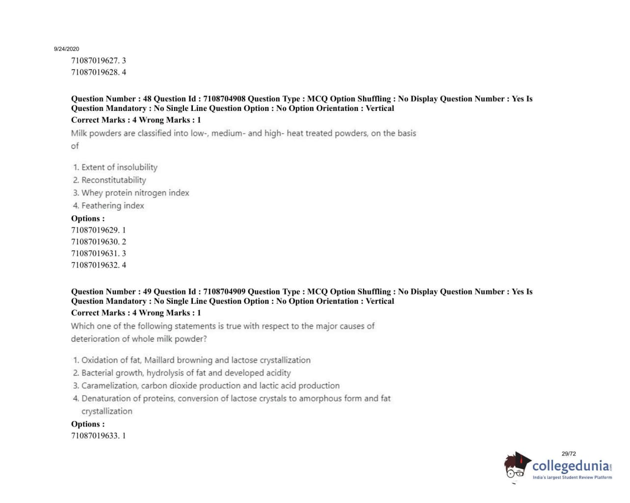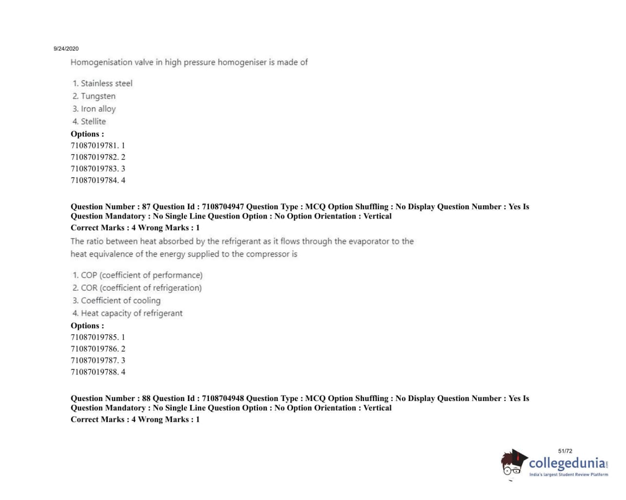 ICAR AIEEA 2020 JRF - DAIRY ENGINEERING Question Paper with Answer Key PDFs Afternoon Session