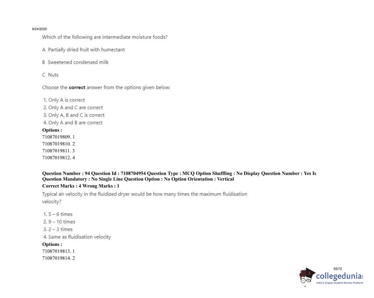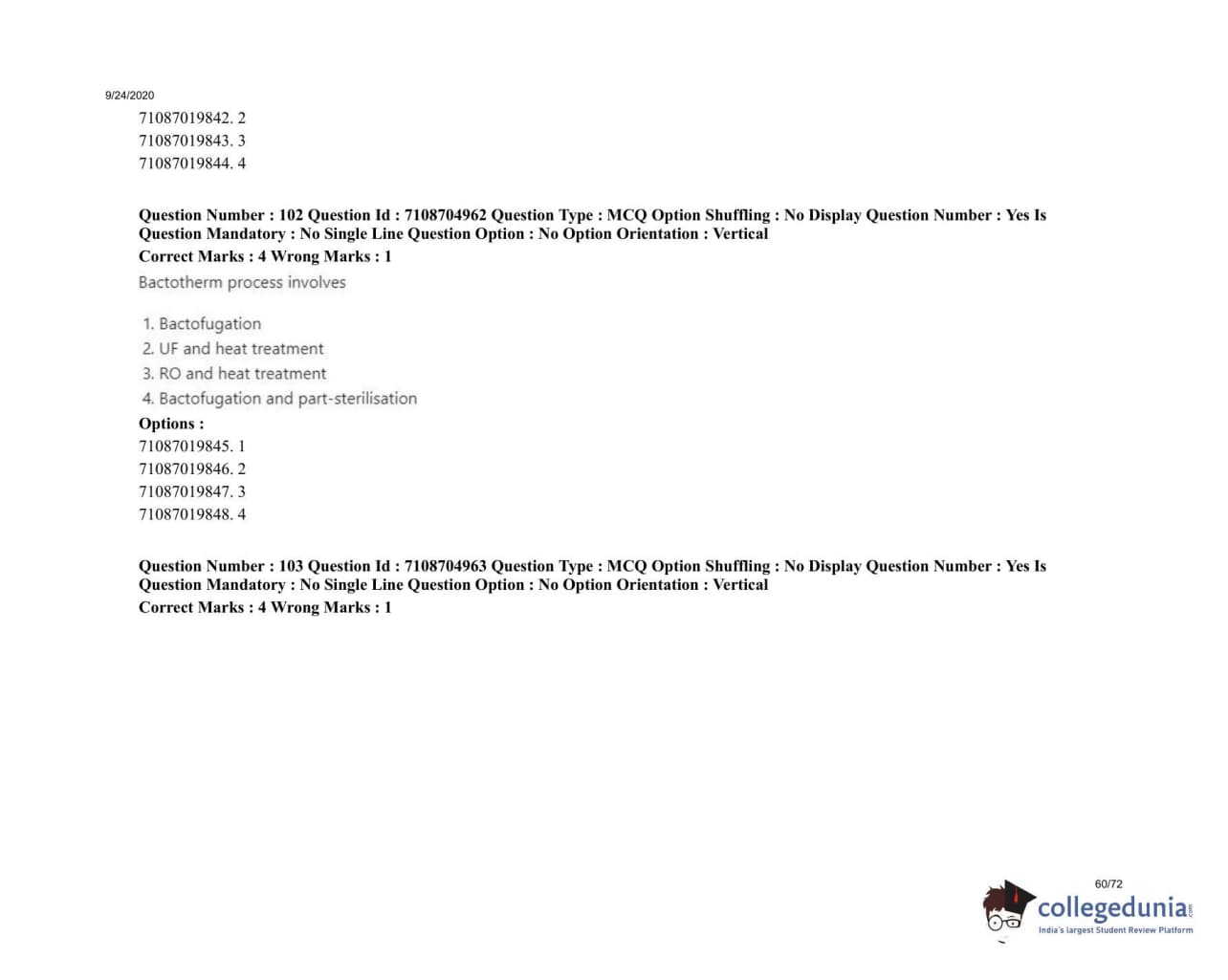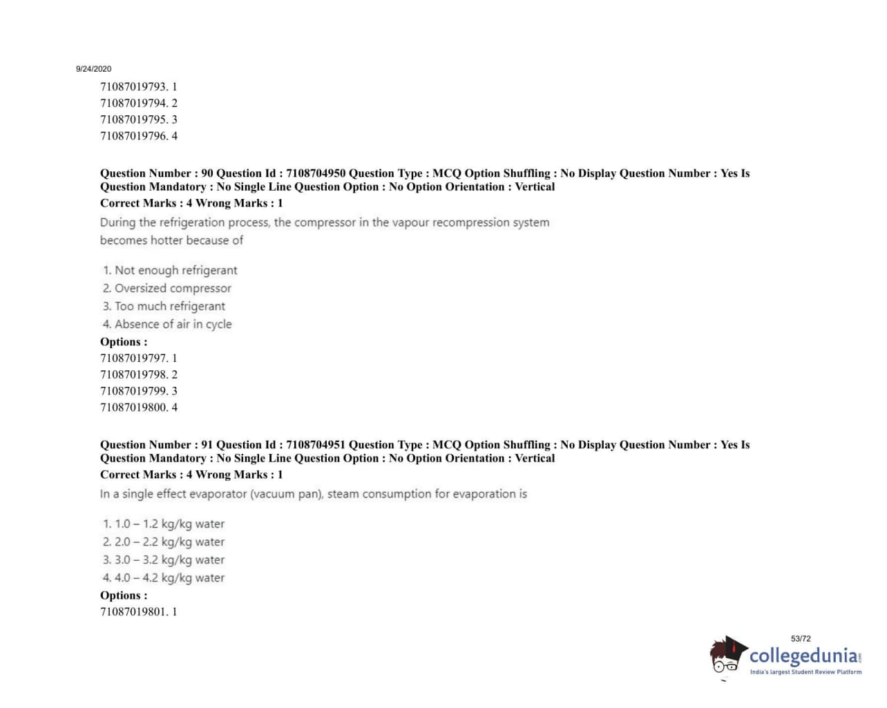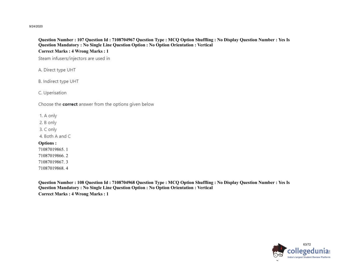 ICAR AIEEA 2020 JRF - DAIRY ENGINEERING Question Paper with Answer Key PDFs Afternoon Session