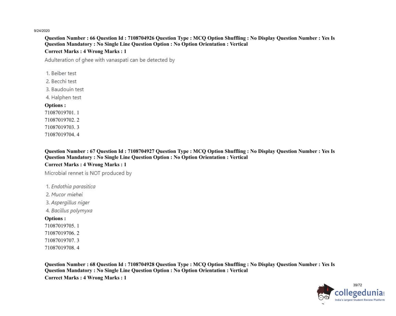 | ICAR AIEEA 2020 JRF - DAIRY ENGINEERING Question Paper PDF | ICAR AIEEA 2020 JRF - DAIRY ENGINEERING Answer Key PDF |