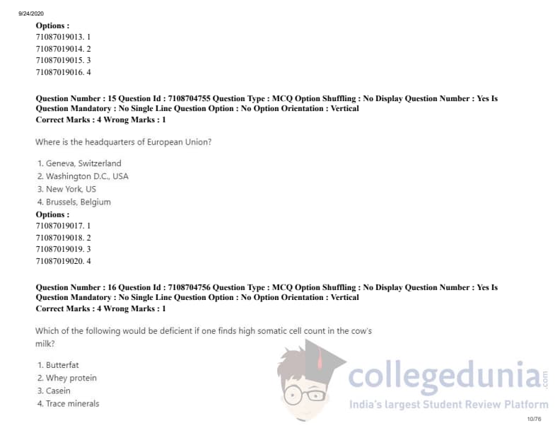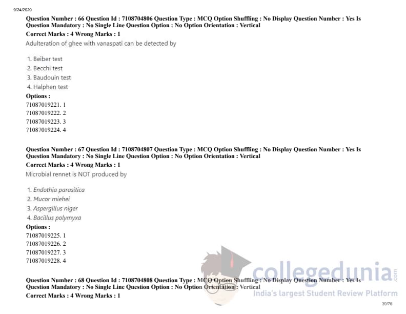 | ICAR AIEEA 2020 JRF - DAIRY TECHNOLOGY Question Paper PDF | ICAR AIEEA 2020 JRF - DAIRY TECHNOLOGY Answer Key PDF |
