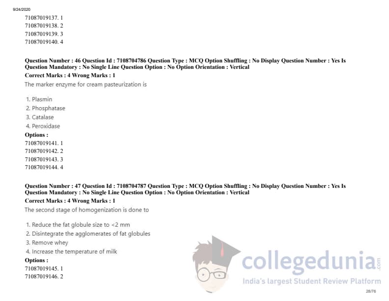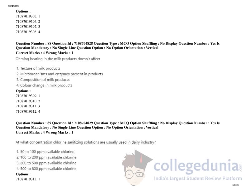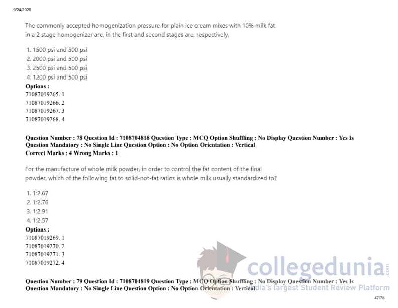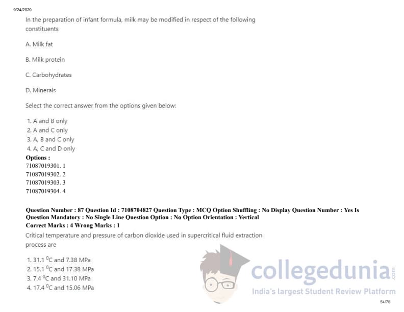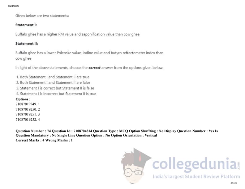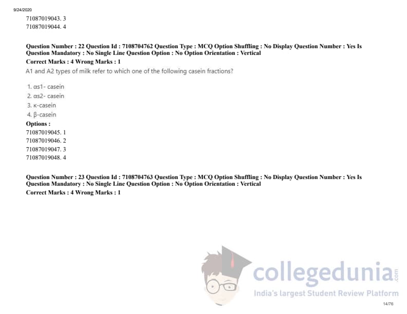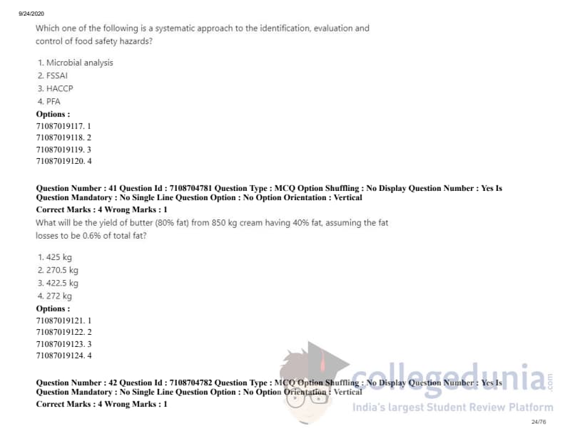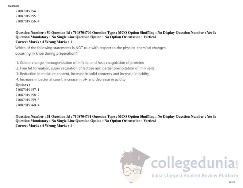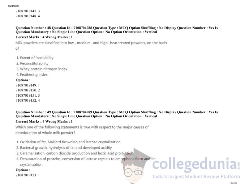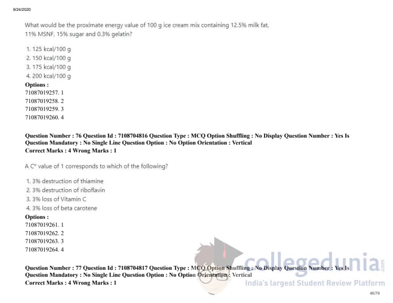 ICAR AIEEA 2020 JRF - DAIRY TECHNOLOGY Question Paper with Answer Key PDFs Afternoon Session