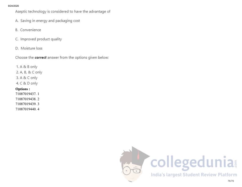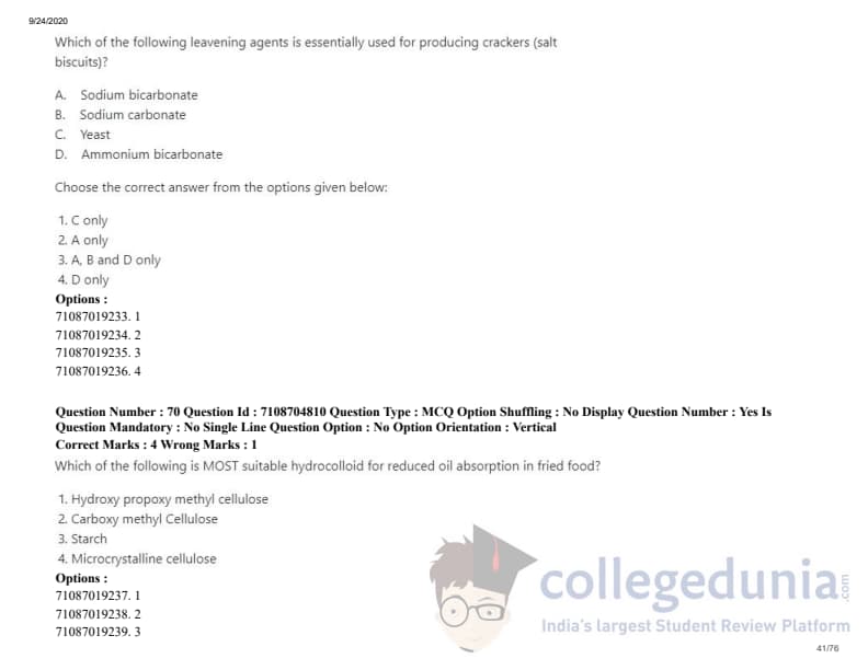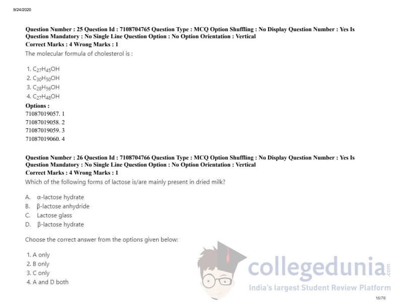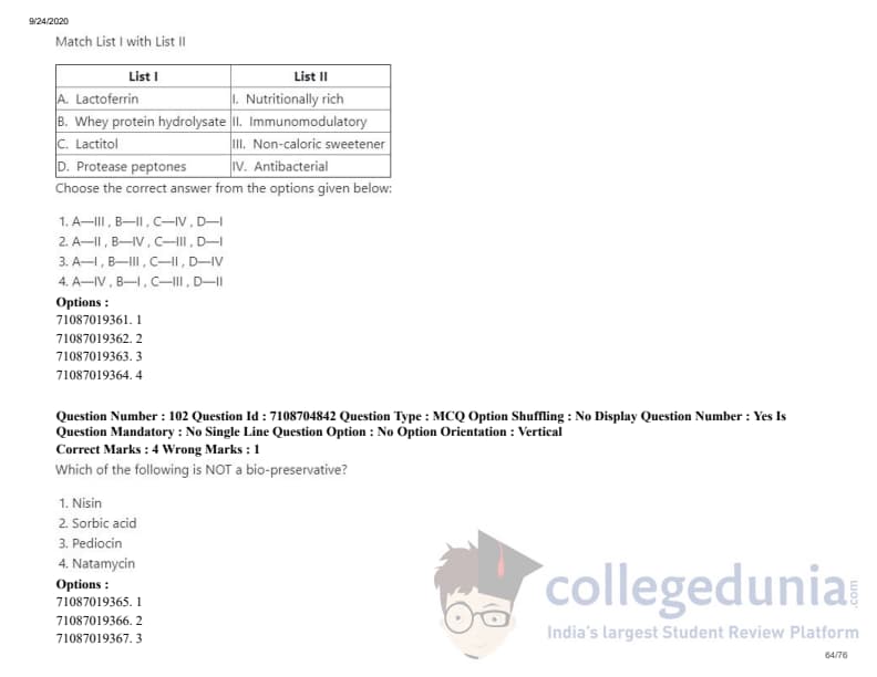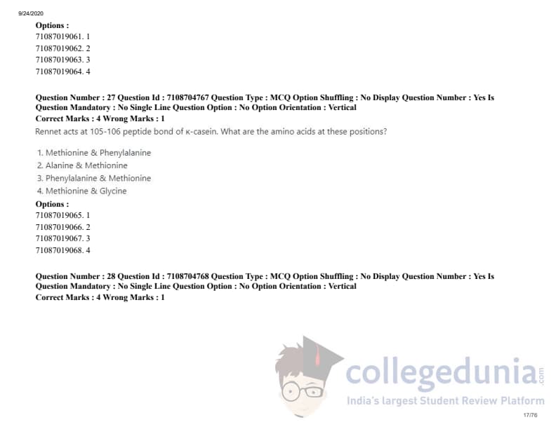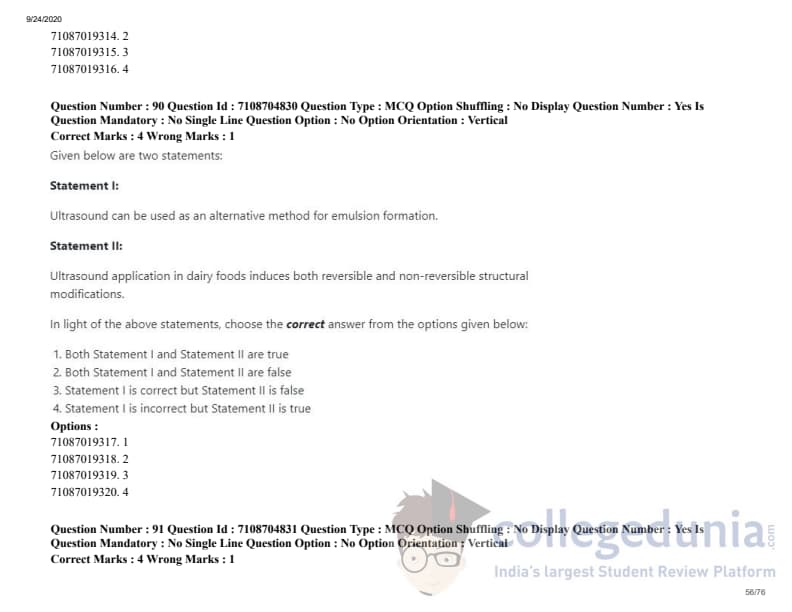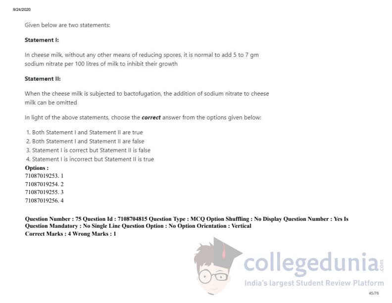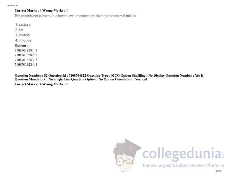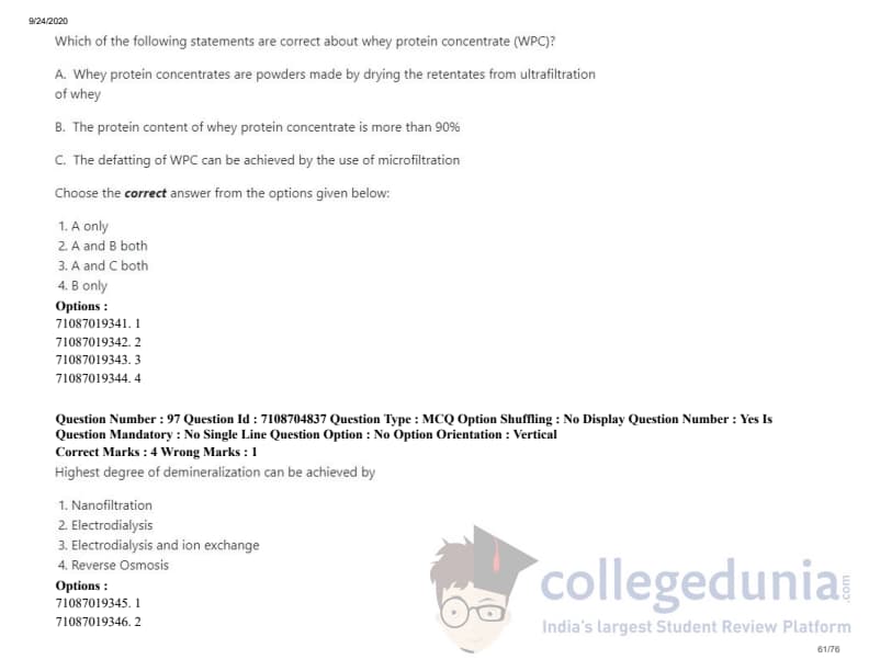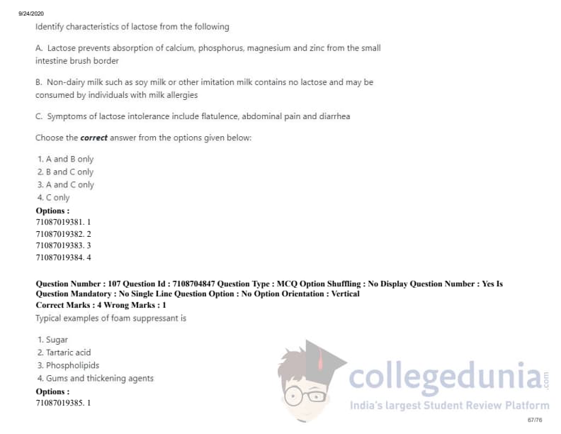 ICAR AIEEA 2020 JRF - DAIRY TECHNOLOGY Question Paper with Answer Key PDFs Afternoon Session