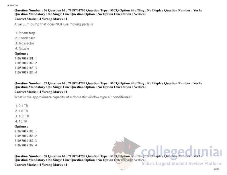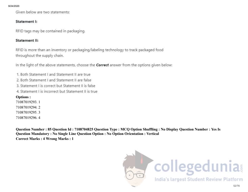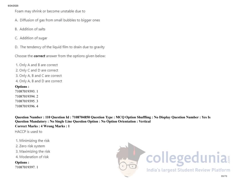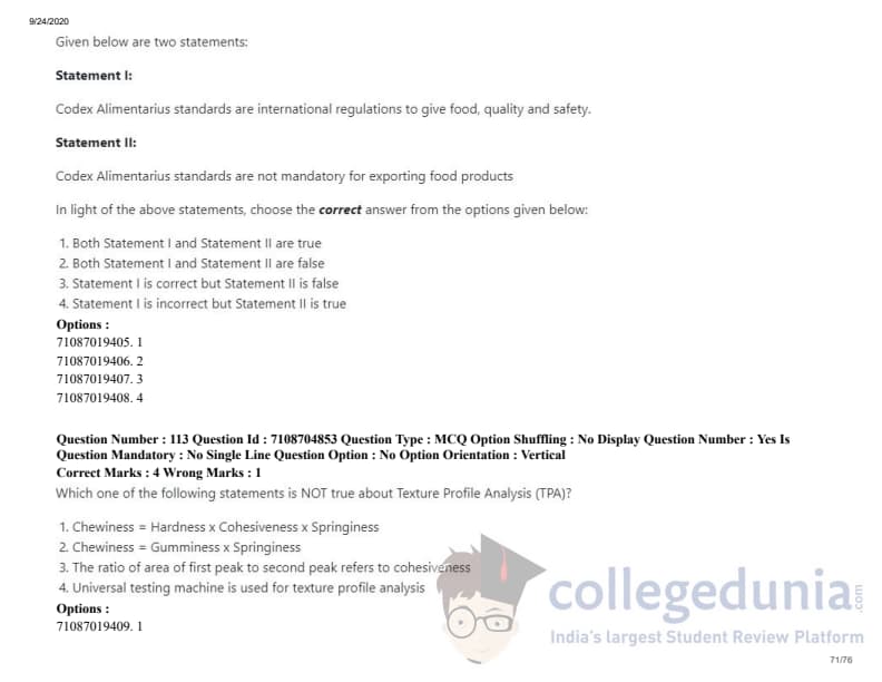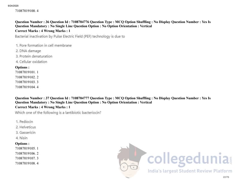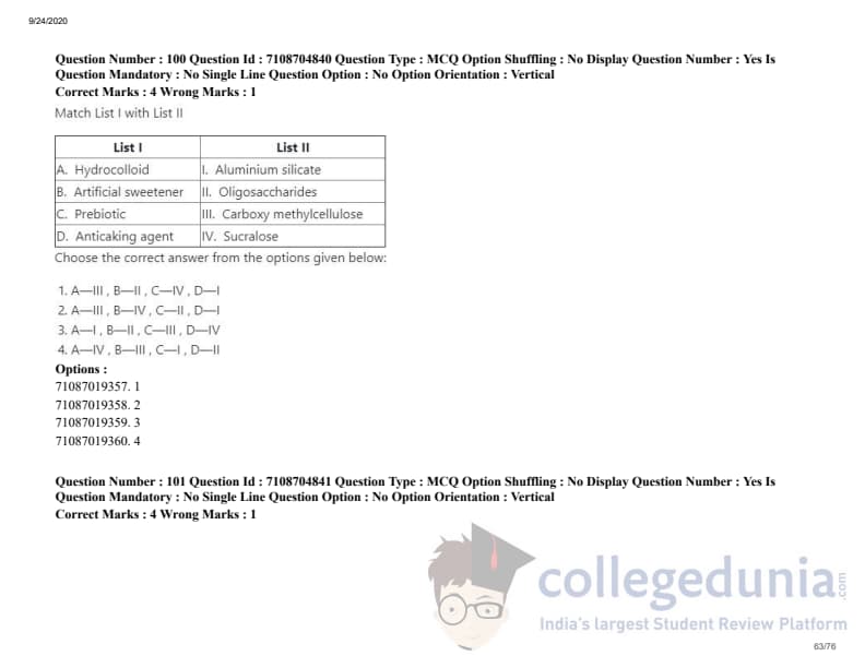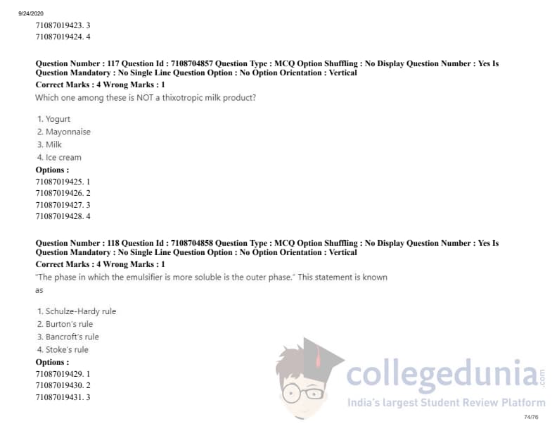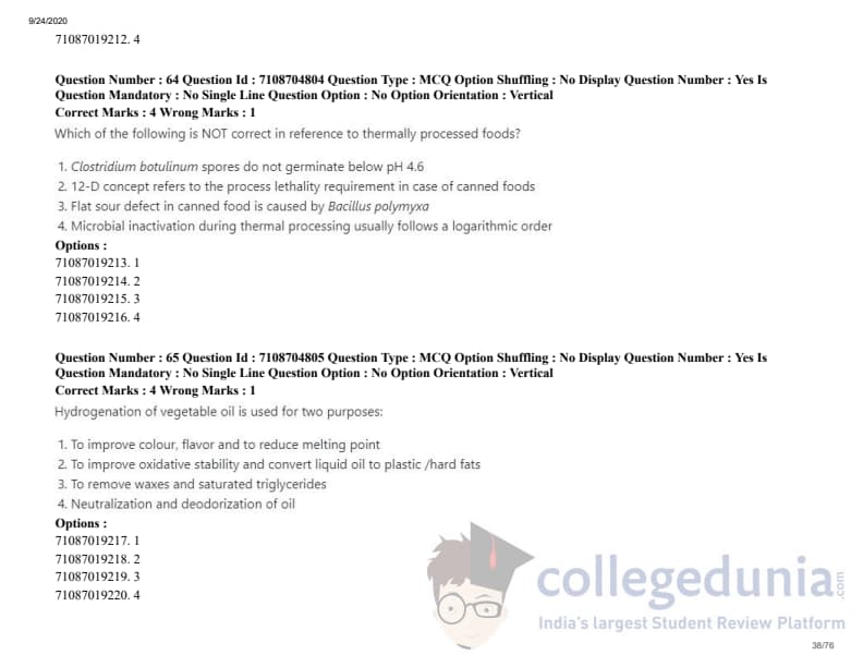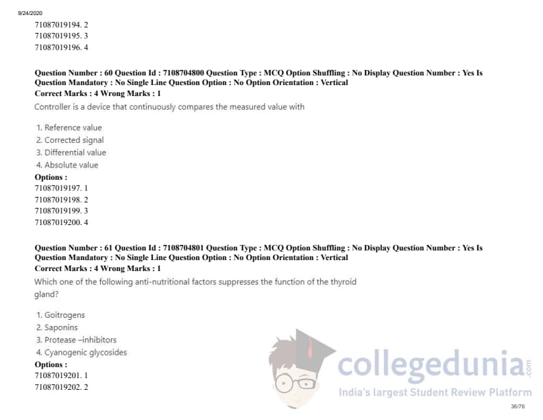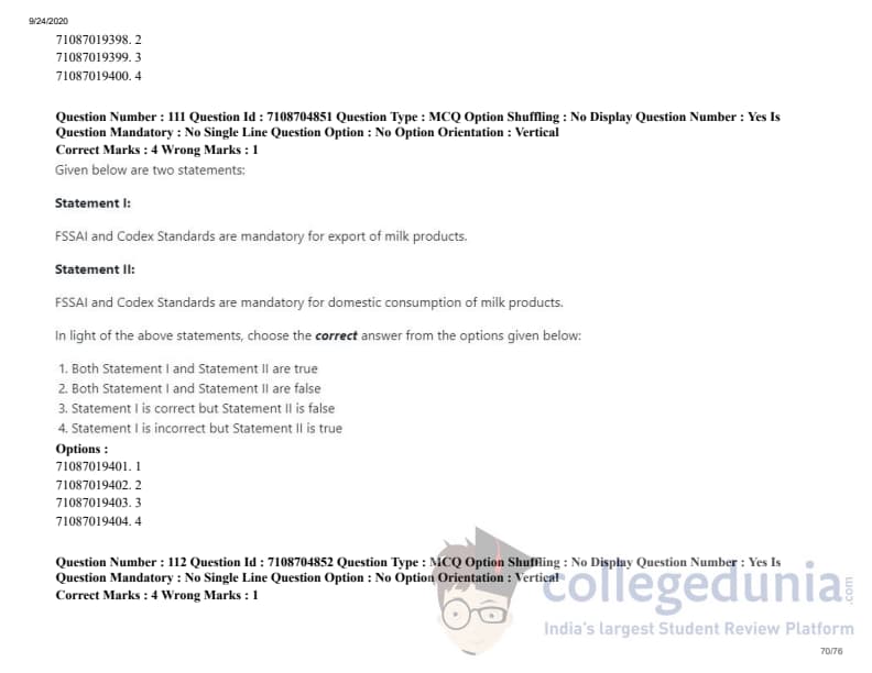 ICAR AIEEA 2020 JRF - DAIRY TECHNOLOGY Question Paper with Answer Key PDFs Afternoon Session
