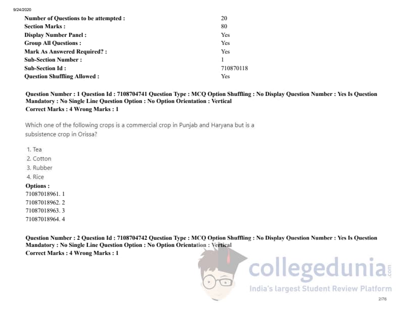 ICAR AIEEA 2020 JRF - DAIRY TECHNOLOGY Question paper with answer key pdf conducted on September 23, 2020 in Afternoon Session is available for download. The exam was successfully organized by National Testing Agency (NTA). The question paper comprised a total of 120 questions.