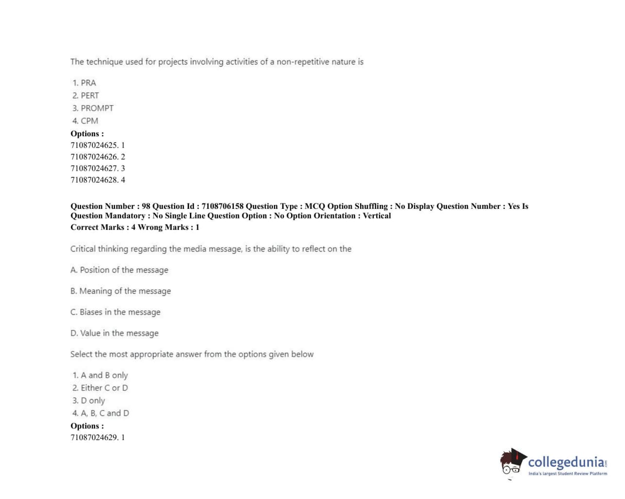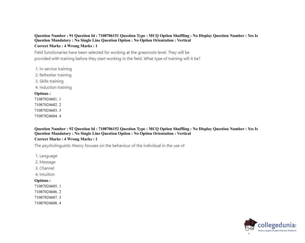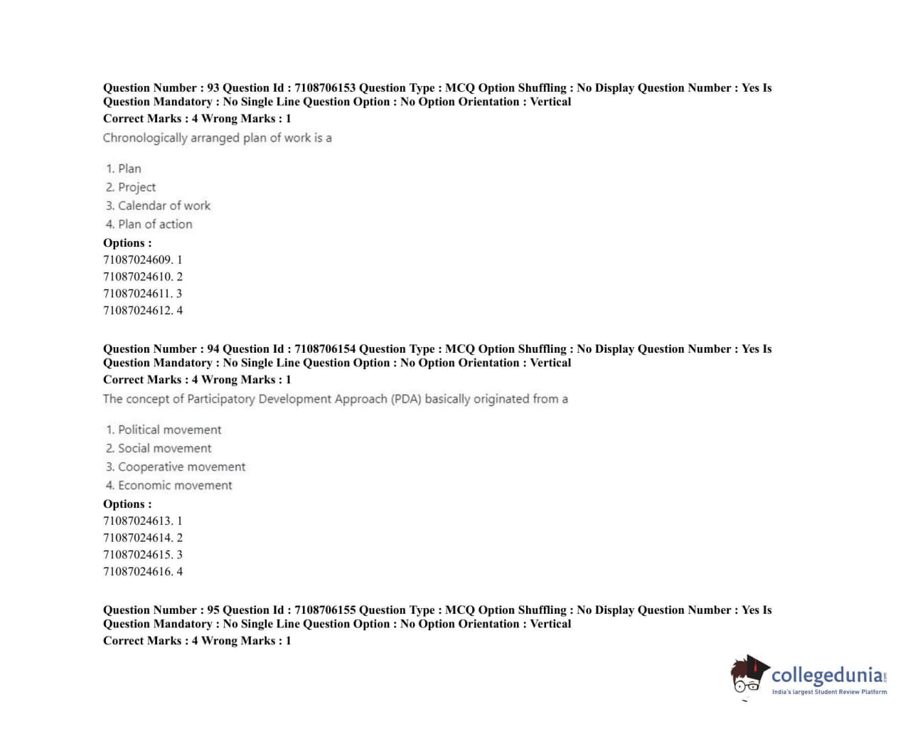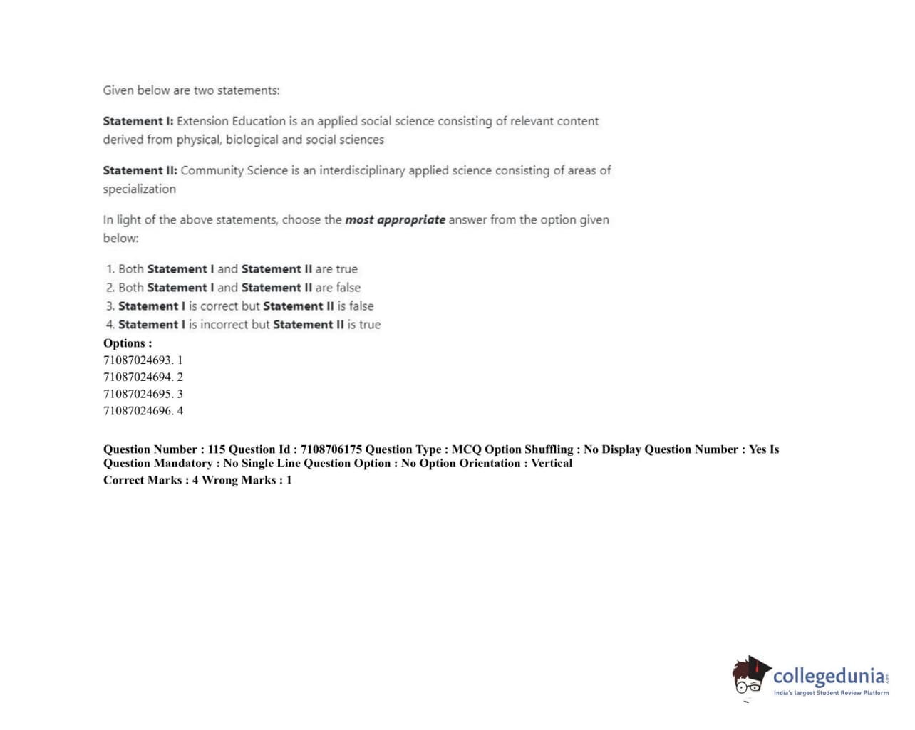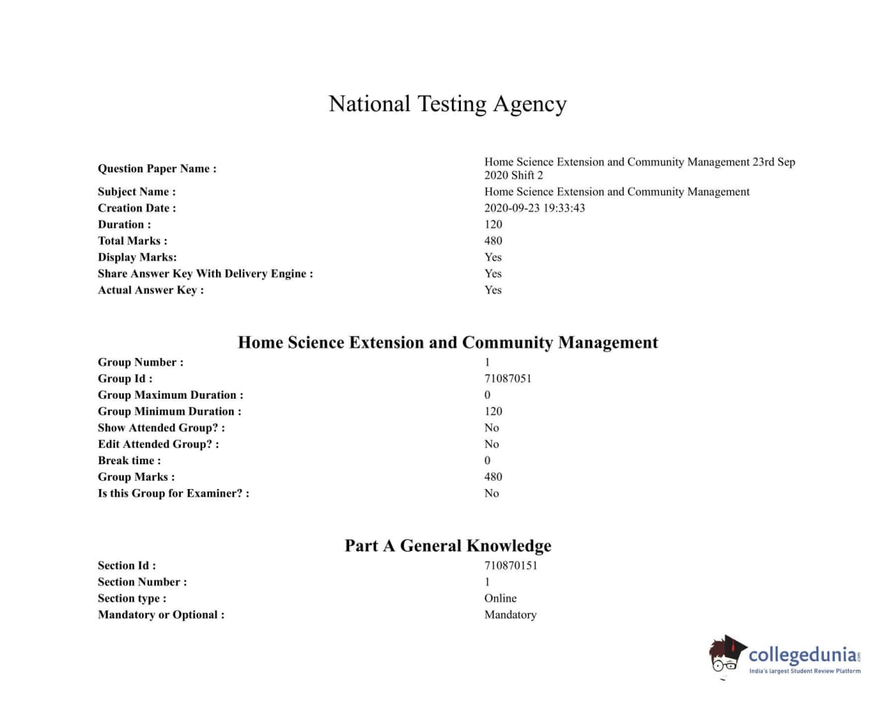 ICAR AIEEA 2020 JRF - HOME SCIENCE EXTENSION AND COMMUNITY MANAGEMENT Question paper with answer key pdf conducted on September 23, 2020 in Afternoon Session is available for download. The exam was successfully organized by National Testing Agency (NTA). The question paper comprised a total of 120 questions.