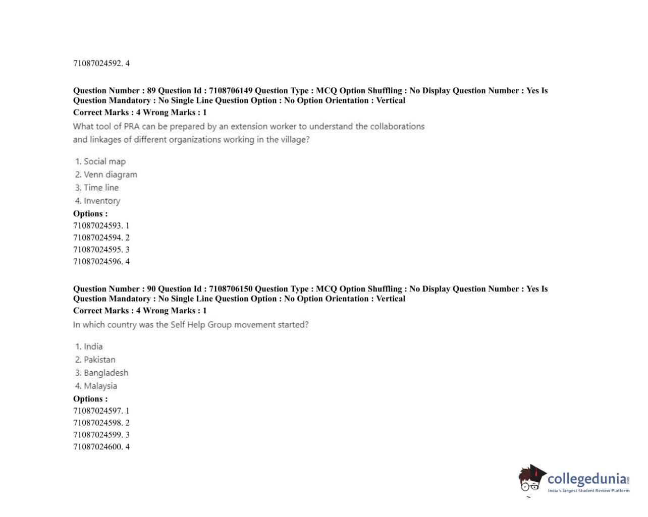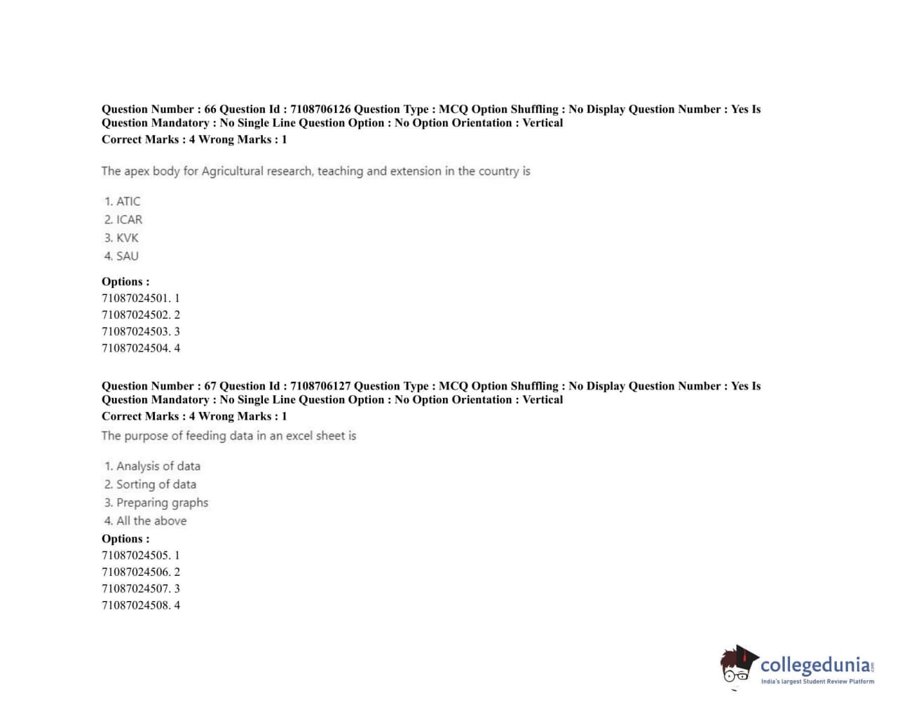 | ICAR AIEEA 2020 JRF - HOME SCIENCE EXTENSION AND COMMUNITY MANAGEMENT Question Paper PDF | ICAR AIEEA 2020 JRF - HOME SCIENCE EXTENSION AND COMMUNITY MANAGEMENT Answer Key PDF |