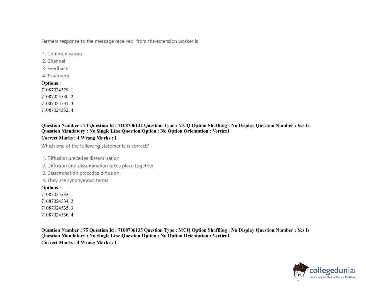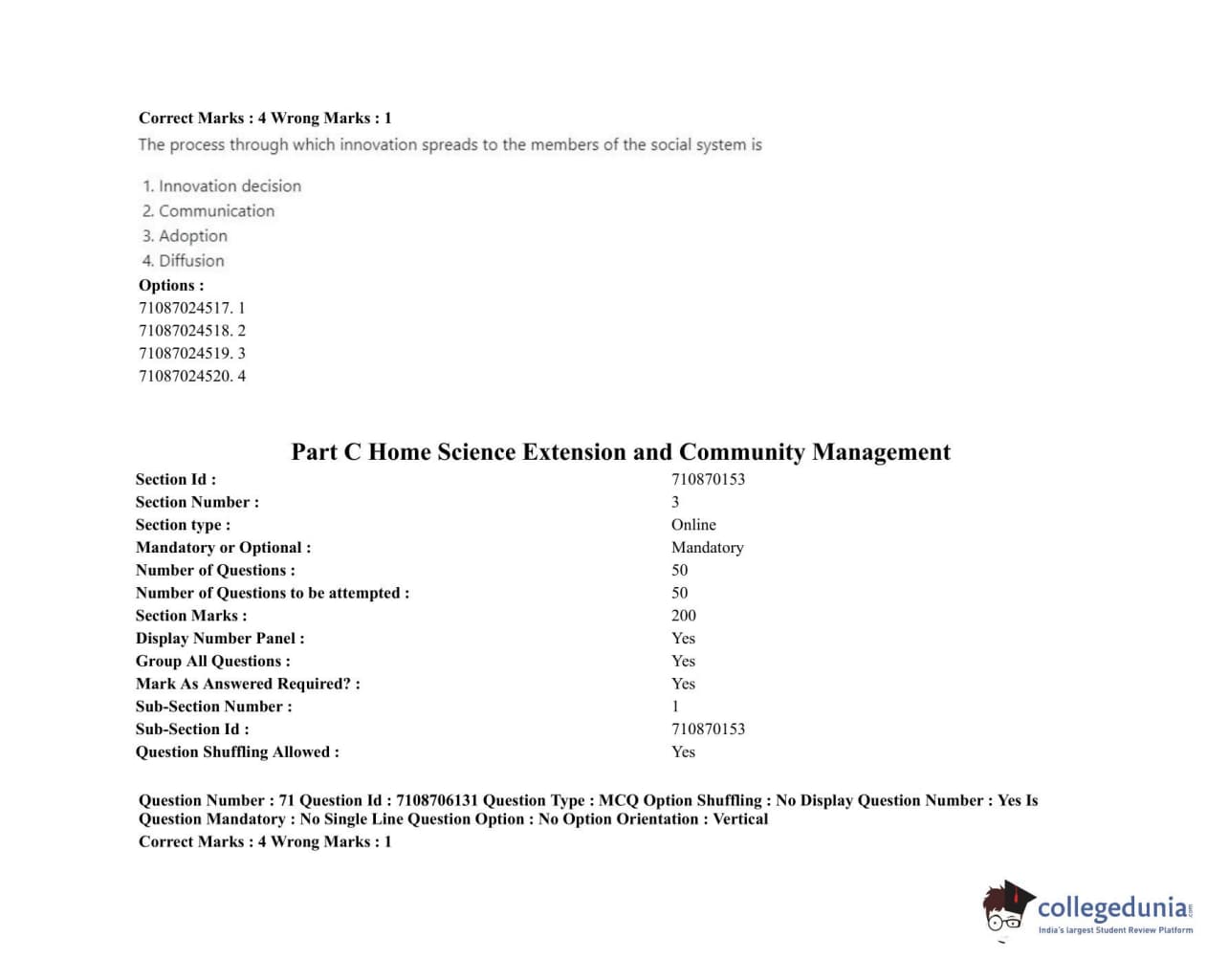 ICAR AIEEA 2020 JRF - HOME SCIENCE EXTENSION AND COMMUNITY MANAGEMENT Question Paper with Answer Key PDFs Afternoon Session