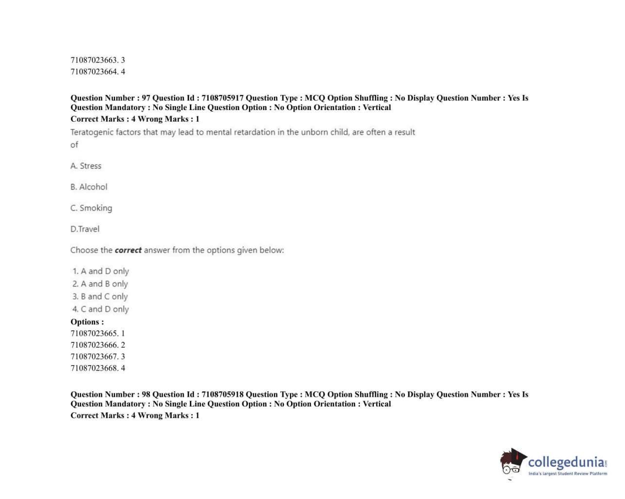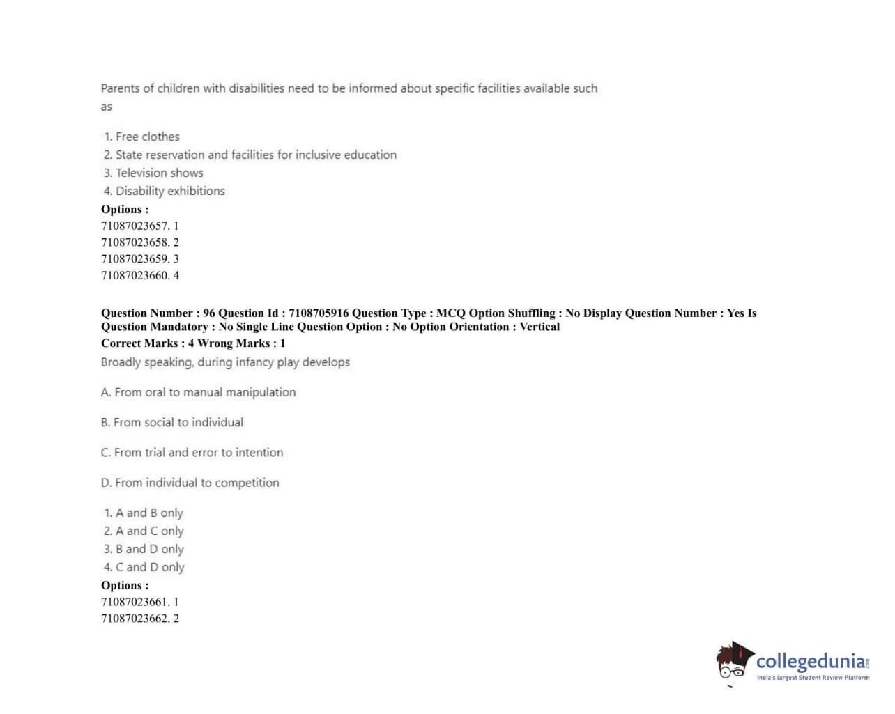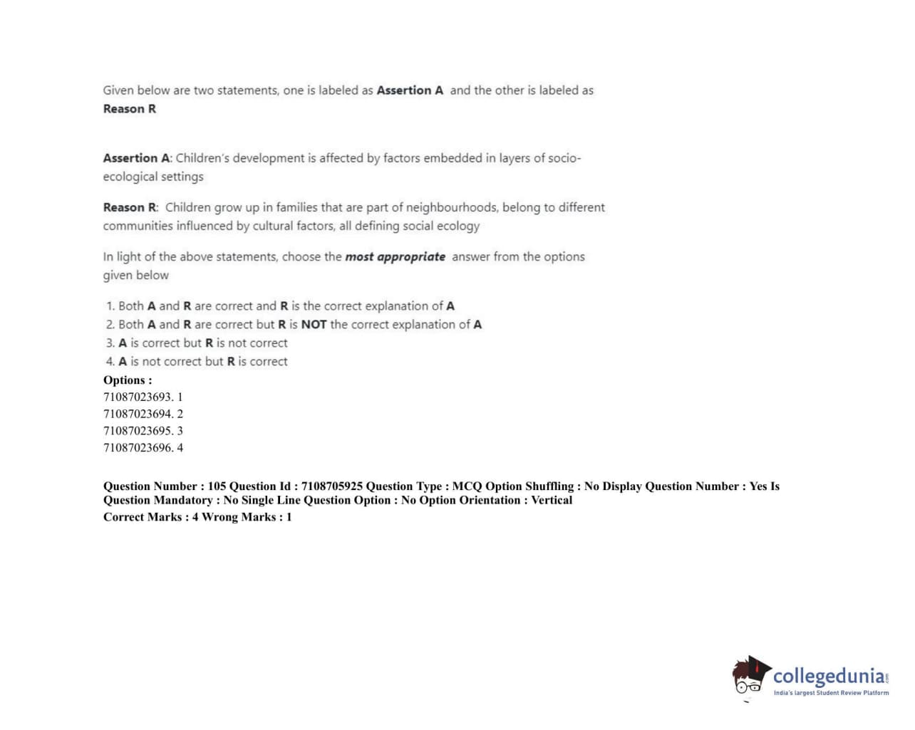 ICAR AIEEA 2020 JRF - HUMAN DEVELOPMENT AND FAMILY STUDIES Question paper with answer key pdf conducted on September 23, 2020 in Afternoon Session is available for download. The exam was successfully organized by National Testing Agency (NTA). The question paper comprised a total of 120 questions.