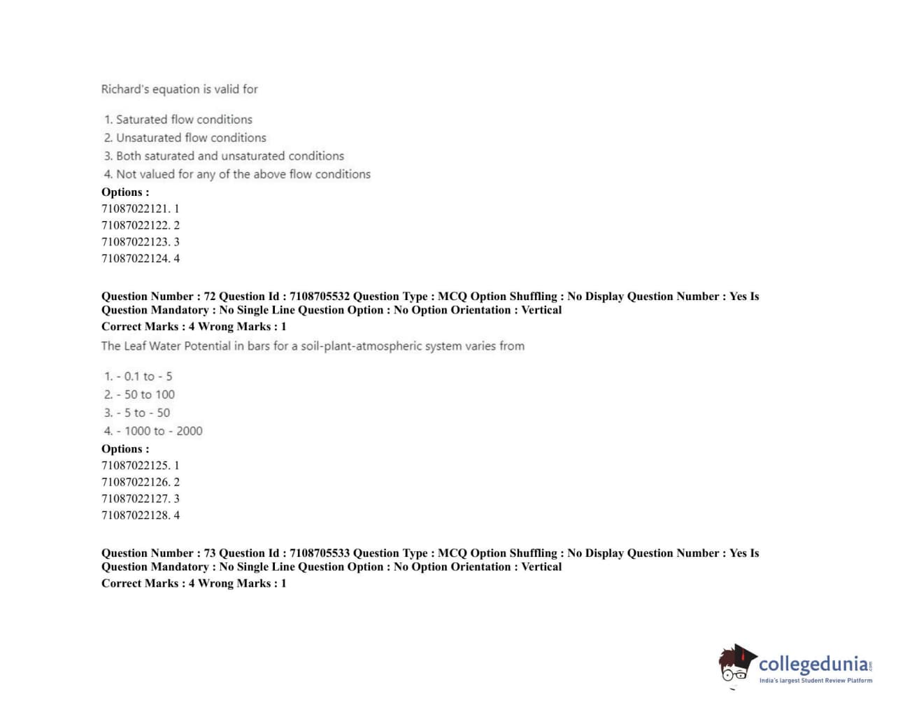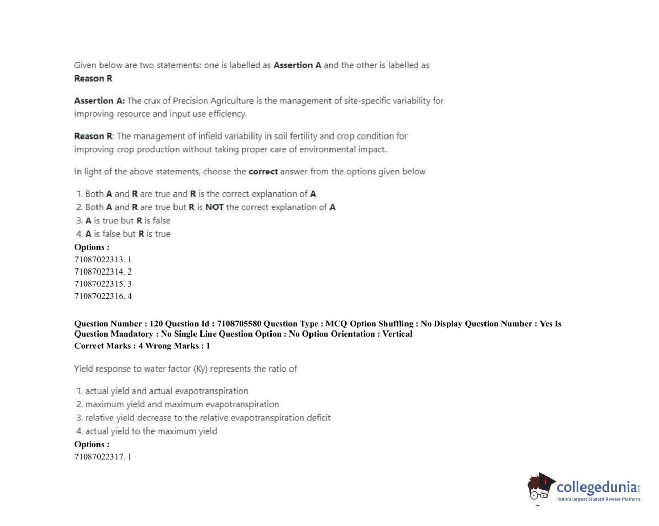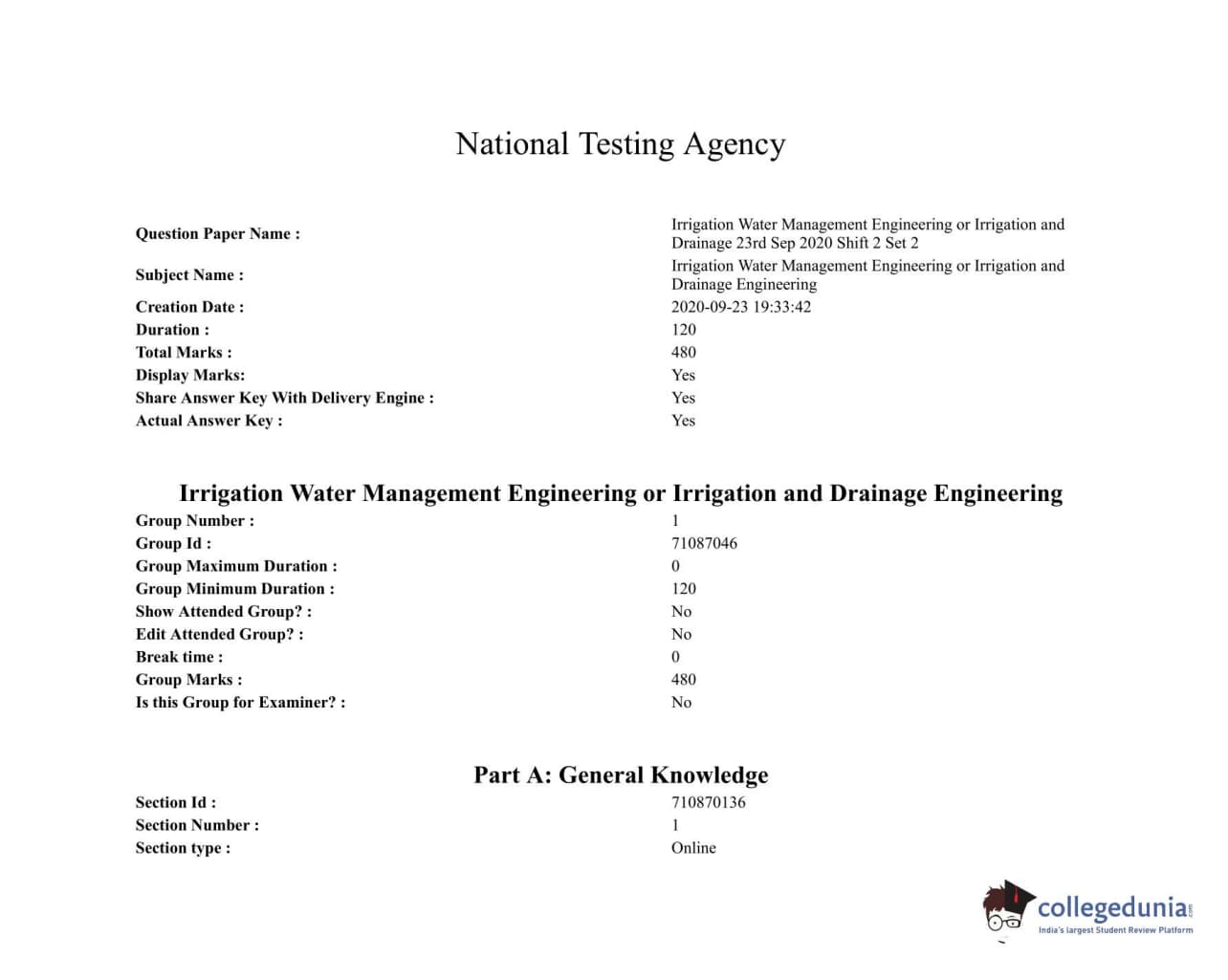 ICAR AIEEA 2020 JRF - IRRIGATION WATER MANAGEMENT ENGINEERING OR IRRIGATION AND DRAINAGE Question paper with answer key pdf conducted on September 23, 2020 in Afternoon Session is available for download. The exam was successfully organized by National Testing Agency (NTA). The question paper comprised a total of 120 questions.