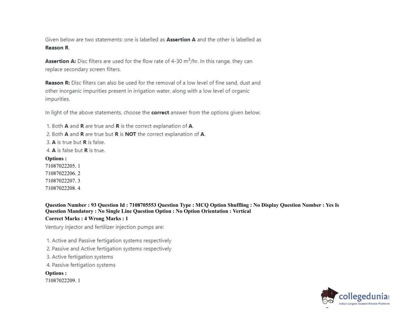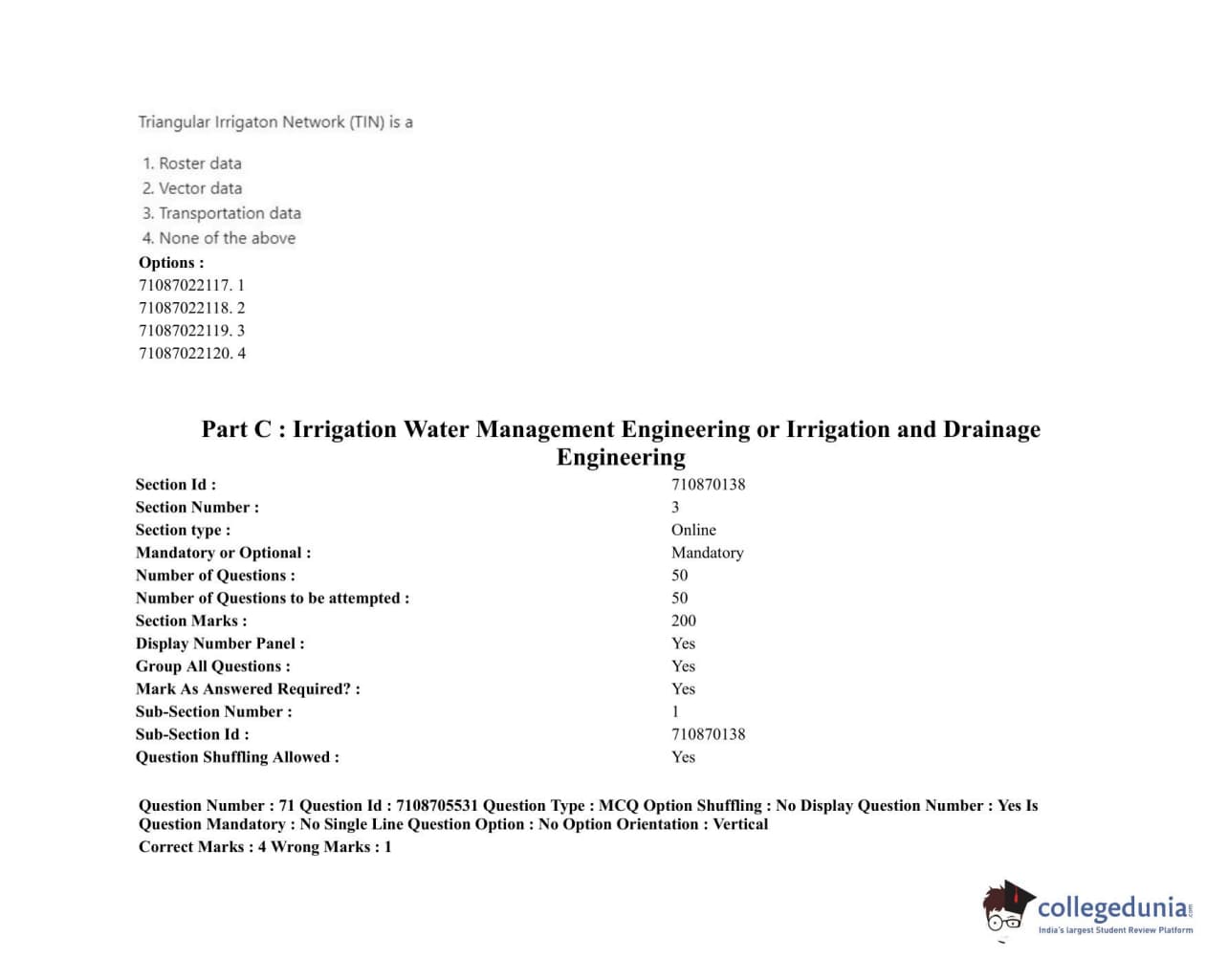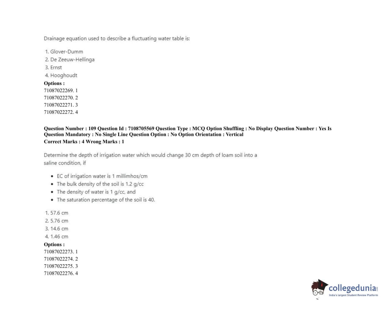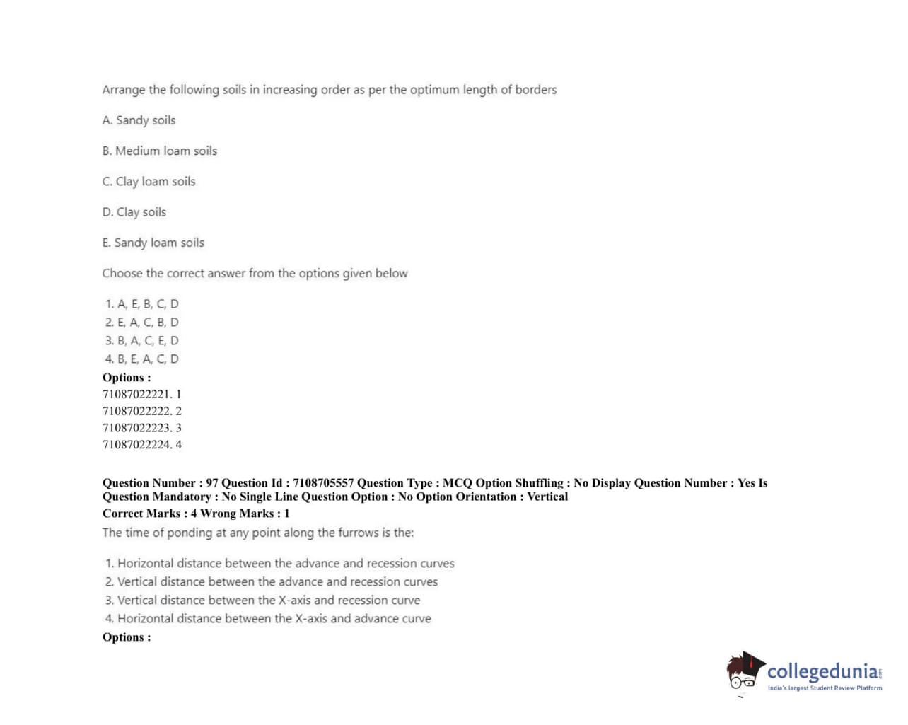 ICAR AIEEA 2020 JRF - IRRIGATION WATER MANAGEMENT ENGINEERING OR IRRIGATION AND DRAINAGE Question Paper with Answer Key PDFs Afternoon Session
