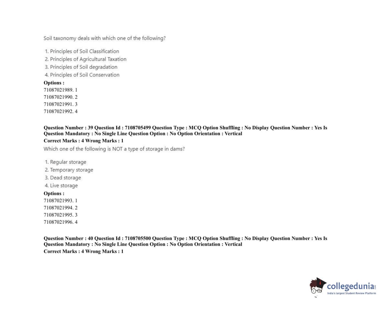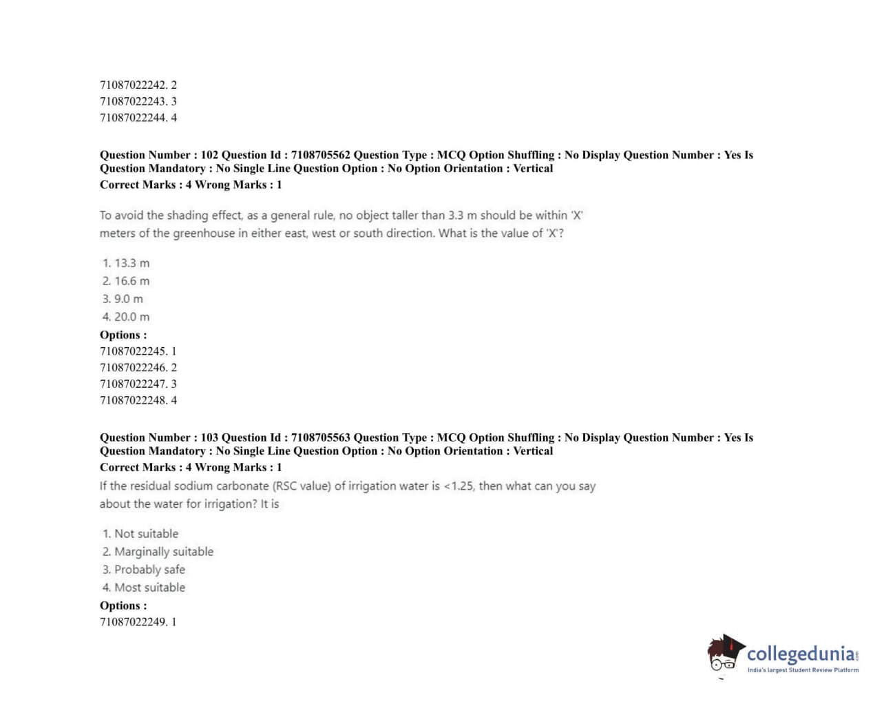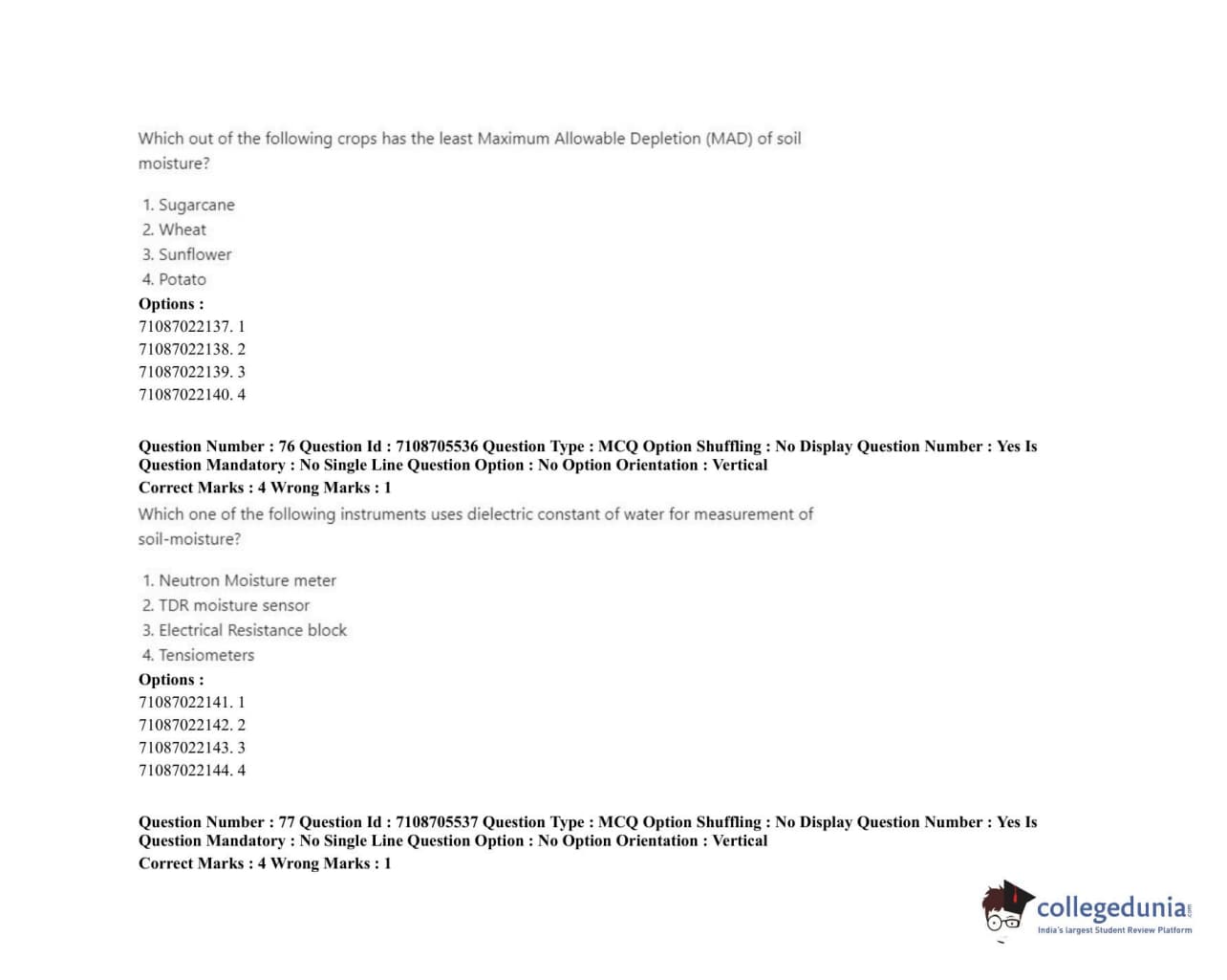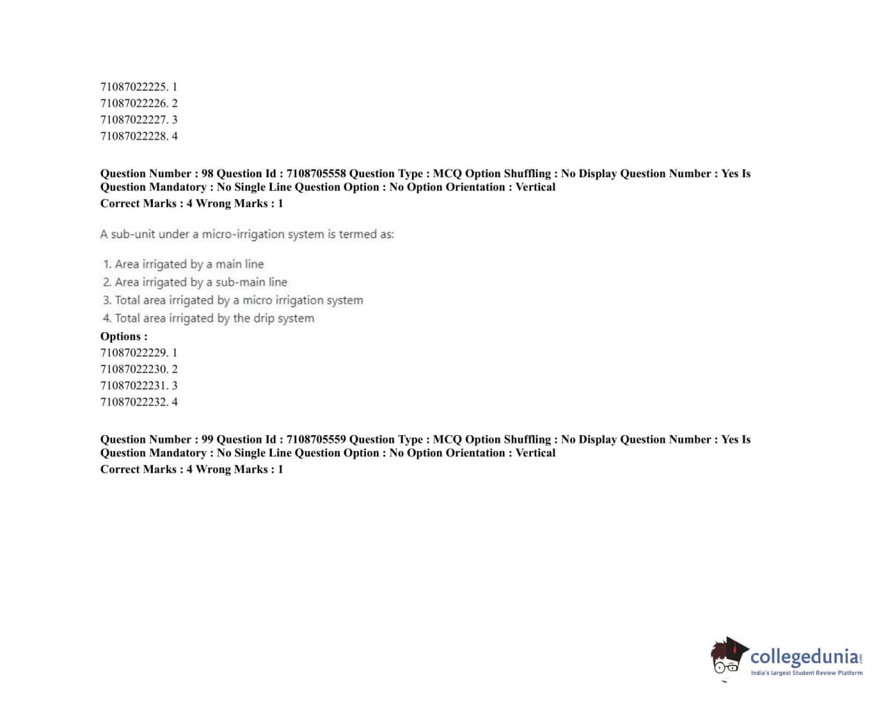 ICAR AIEEA 2020 JRF - IRRIGATION WATER MANAGEMENT ENGINEERING OR IRRIGATION AND DRAINAGE Question Paper with Answer Key PDFs Afternoon Session
