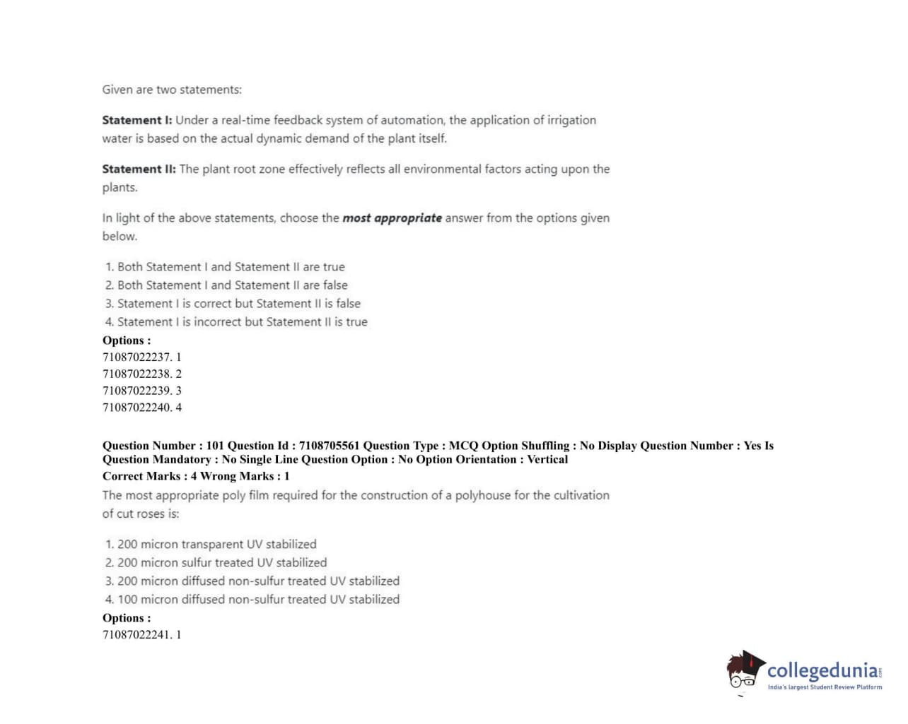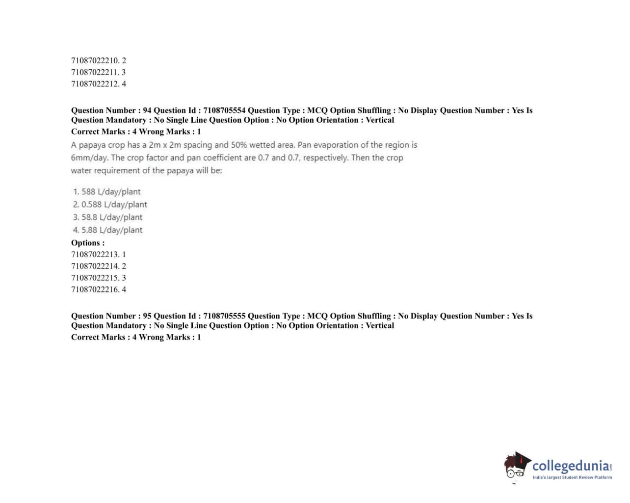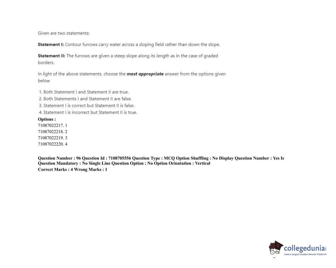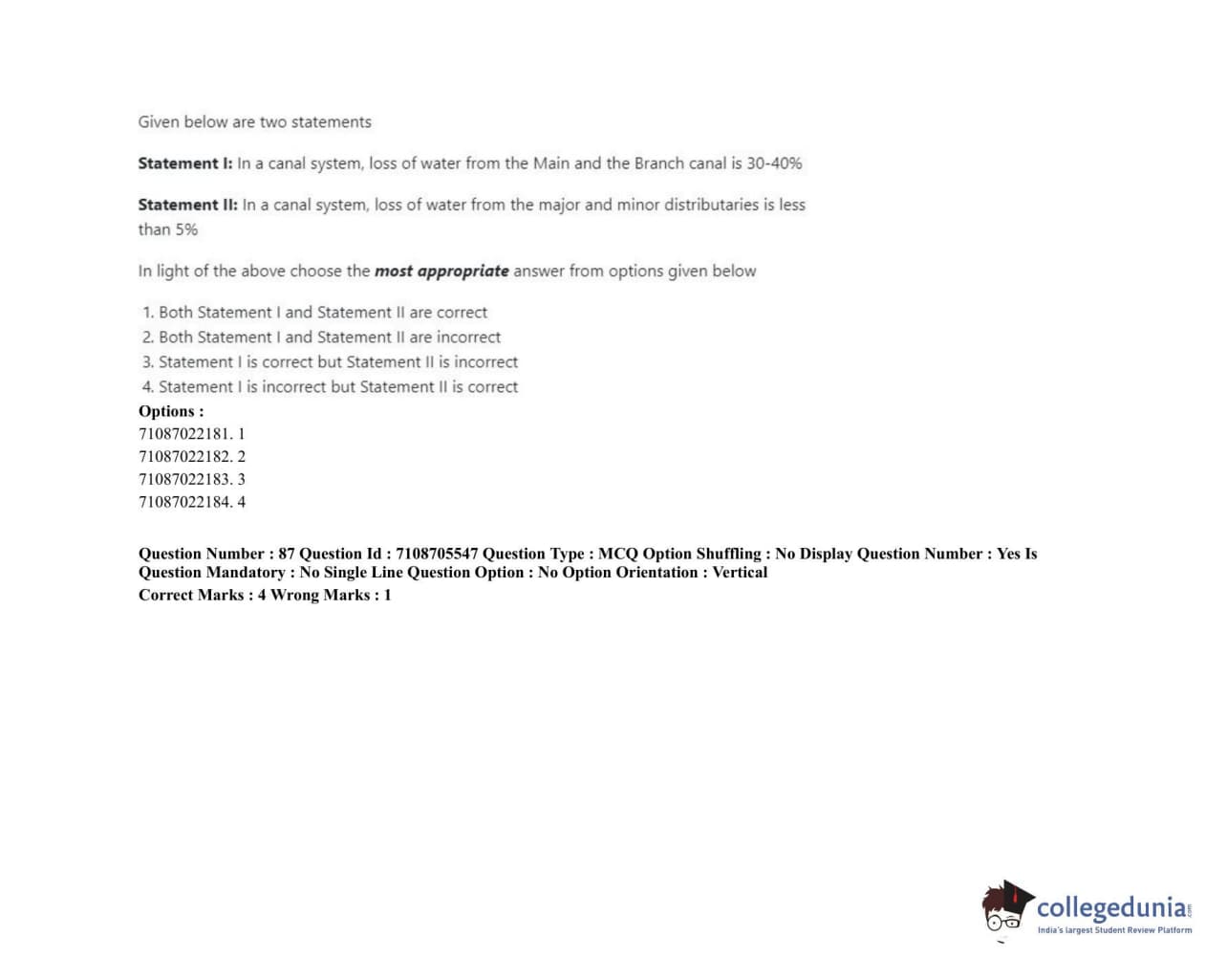 ICAR AIEEA 2020 JRF - IRRIGATION WATER MANAGEMENT ENGINEERING OR IRRIGATION AND DRAINAGE Question Paper with Answer Key PDFs Afternoon Session