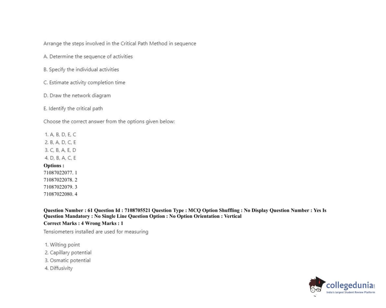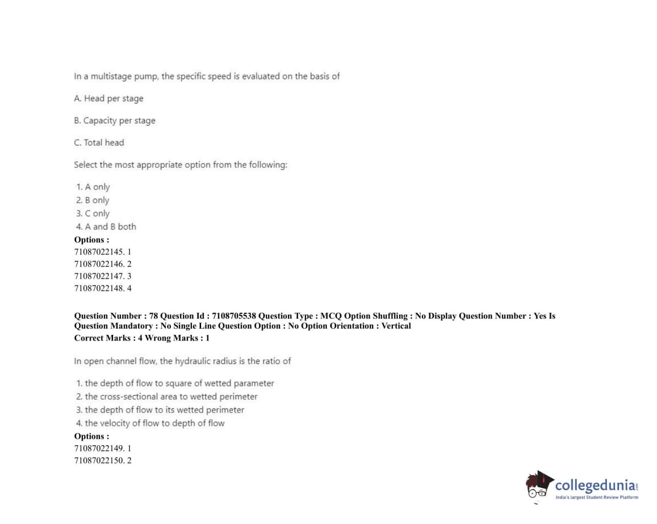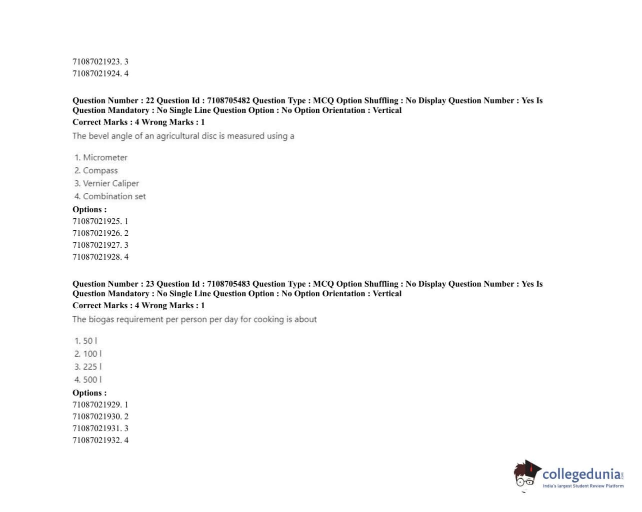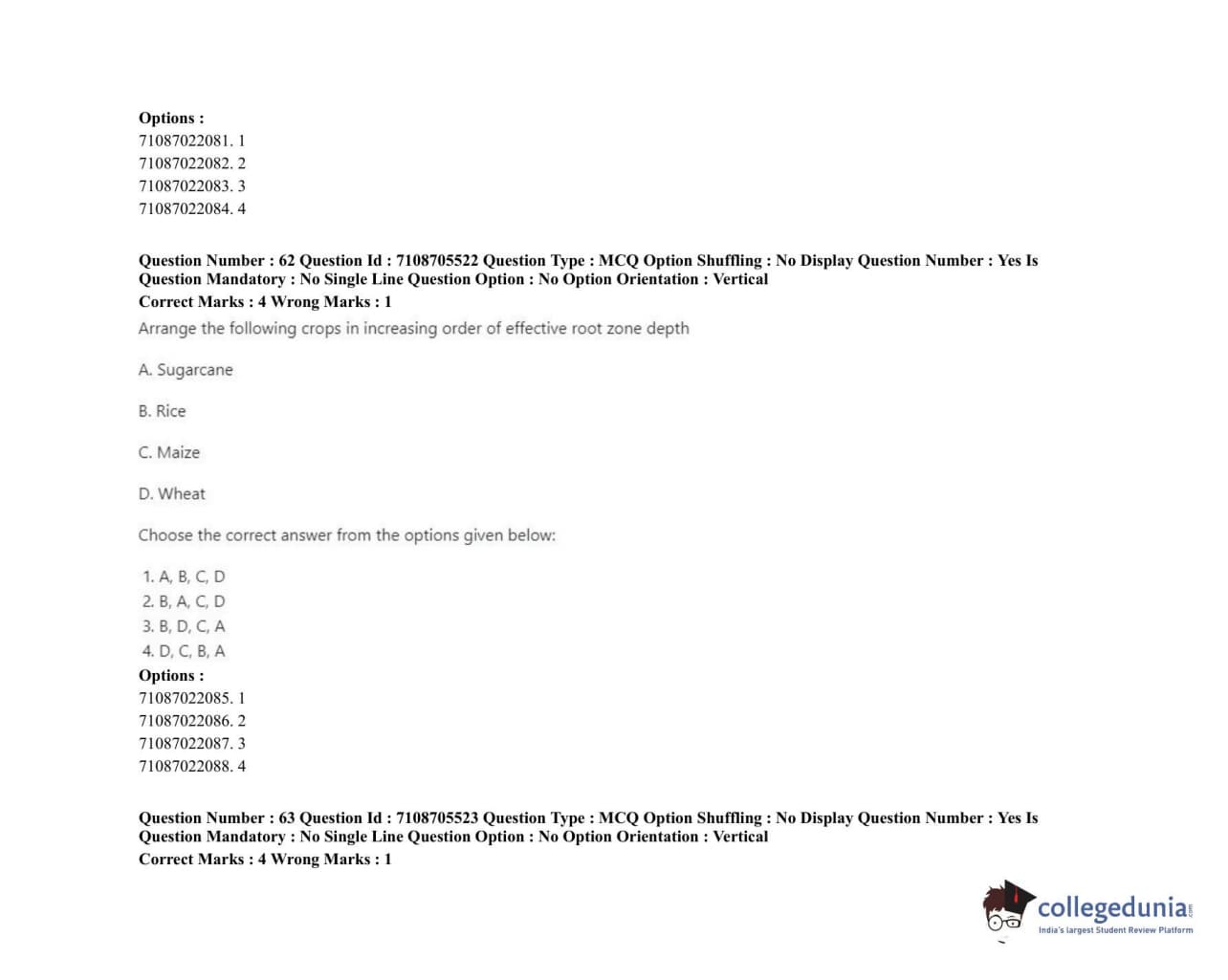 ICAR AIEEA 2020 JRF - IRRIGATION WATER MANAGEMENT ENGINEERING OR IRRIGATION AND DRAINAGE Question Paper with Answer Key PDFs Afternoon Session