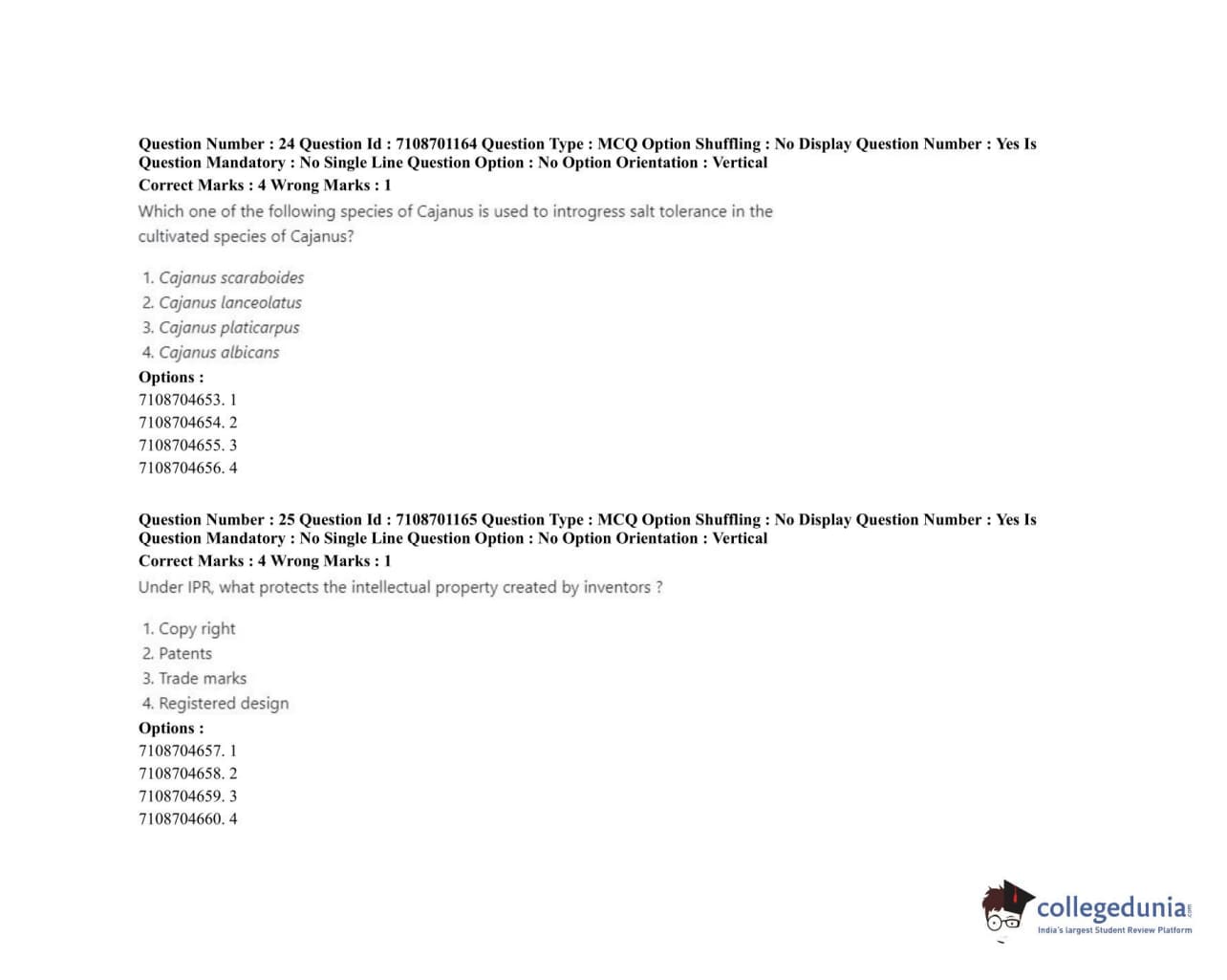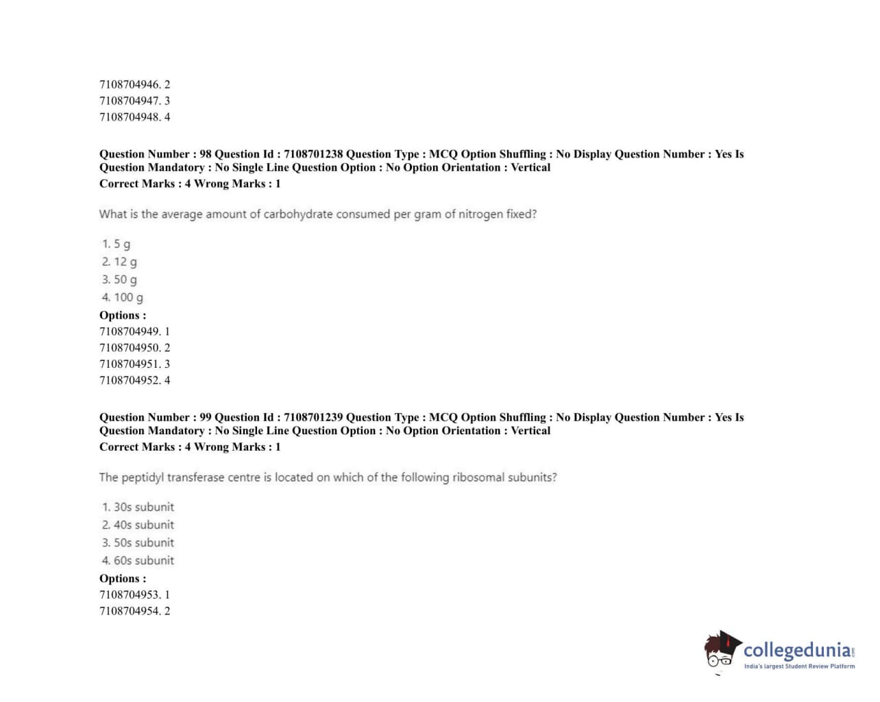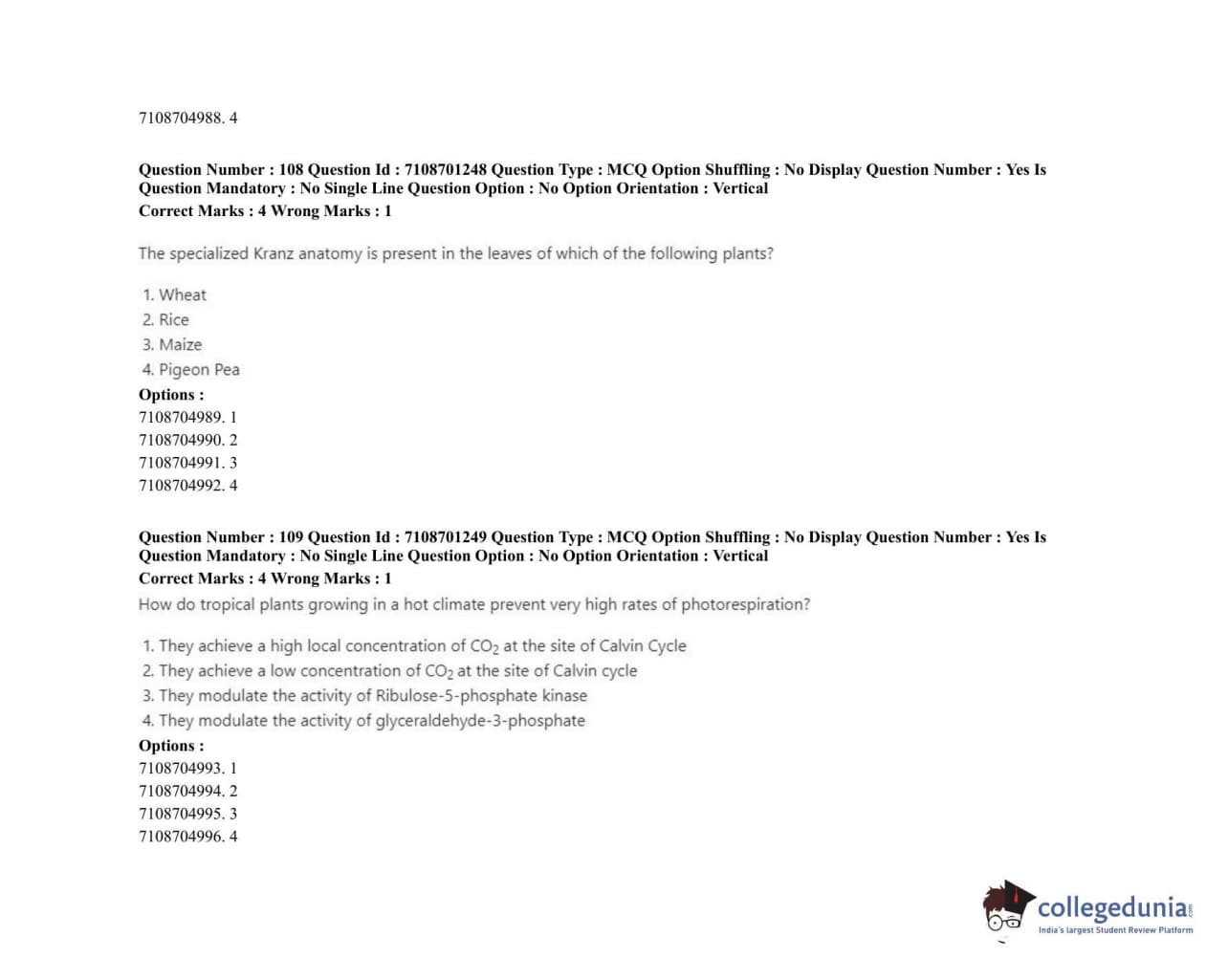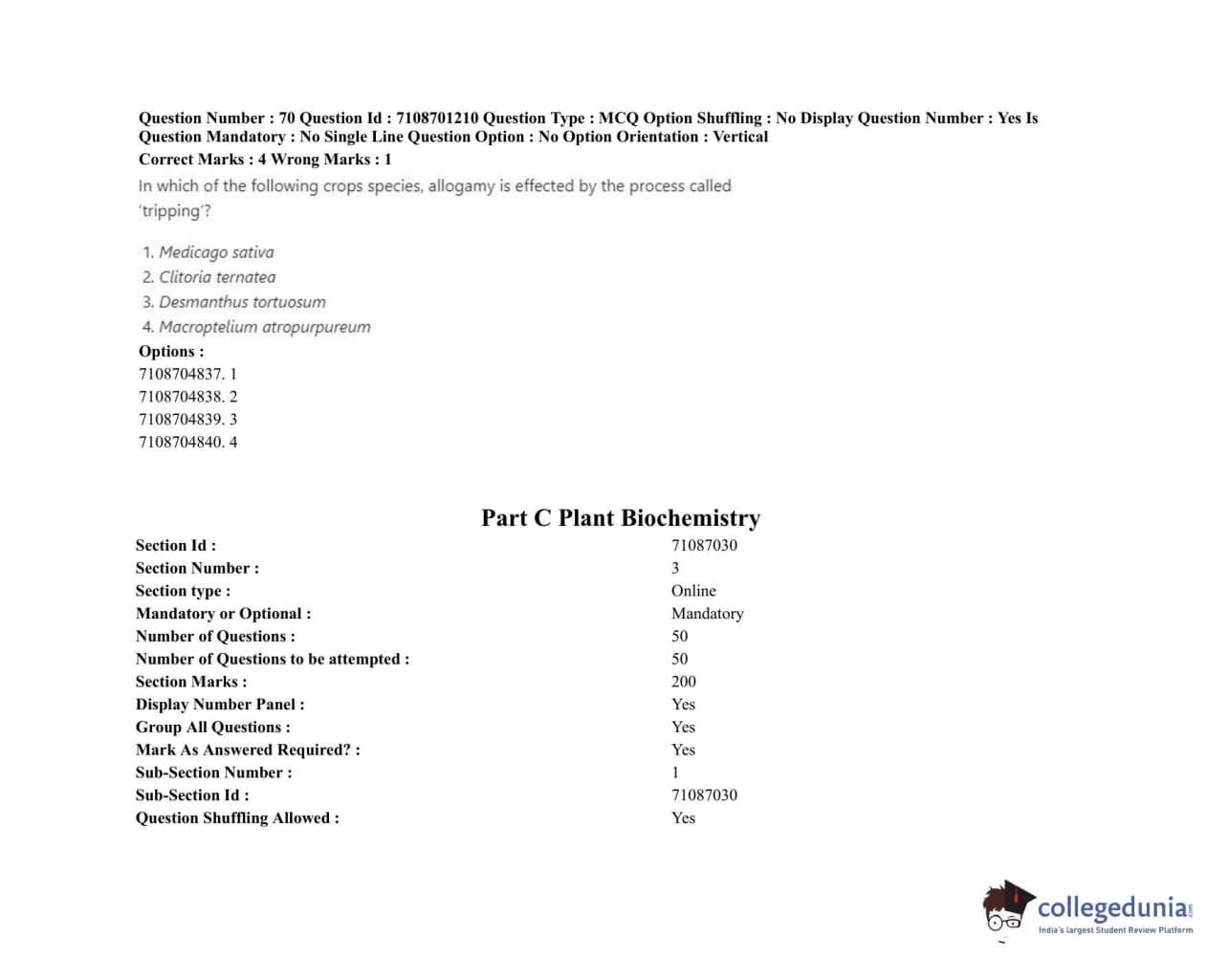 ICAR AIEEA 2020 JRF - PLANT BIOCHEMISTRY Question Paper with Answer Key PDFs Afternoon Session