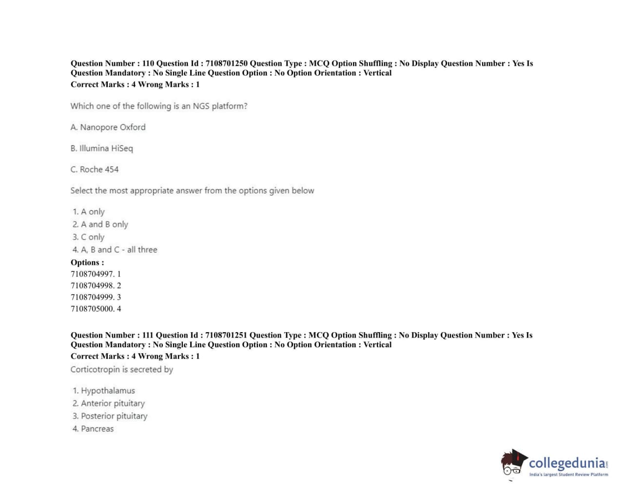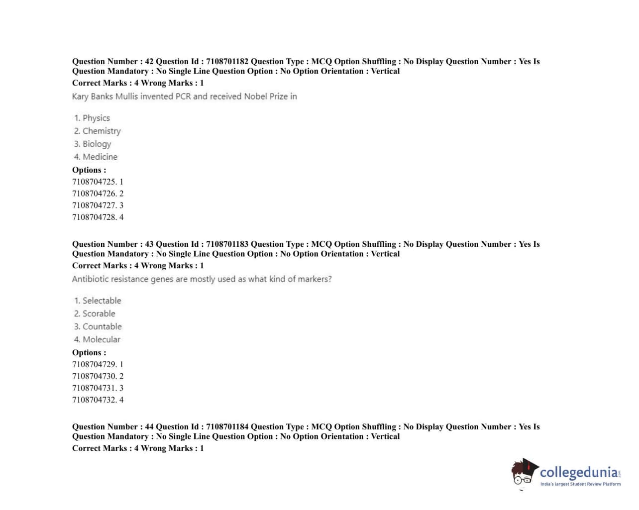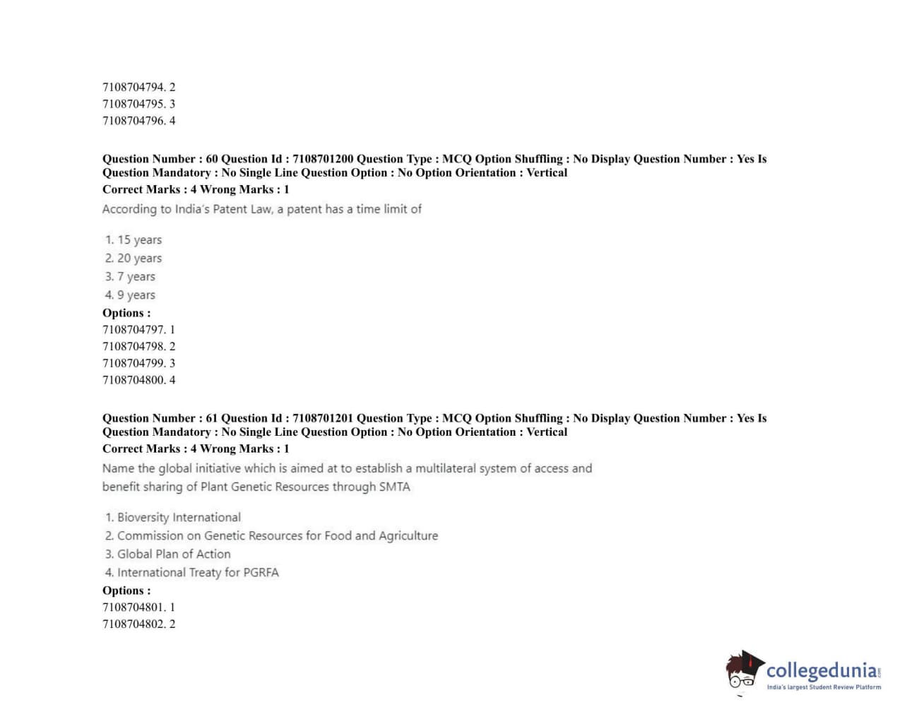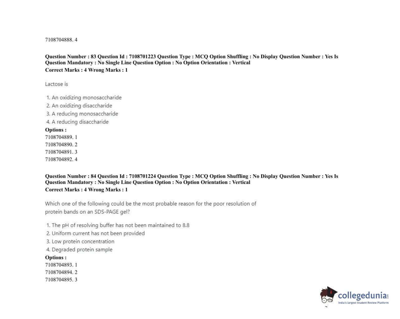 ICAR AIEEA 2020 JRF - PLANT BIOCHEMISTRY Question Paper with Answer Key PDFs Afternoon Session