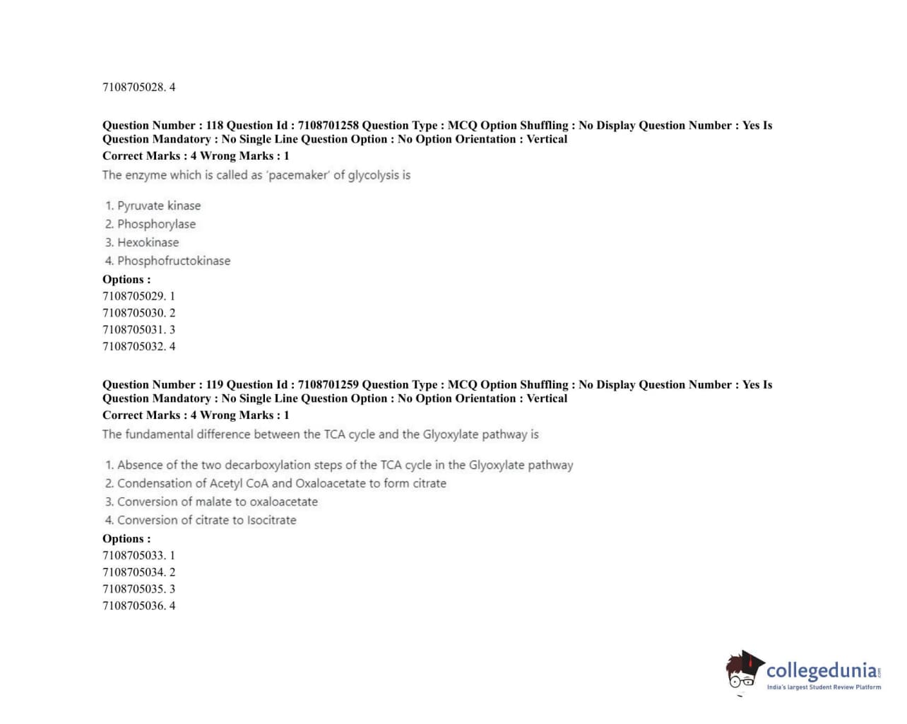 ICAR AIEEA 2020 JRF - PLANT BIOCHEMISTRY Question paper with answer key pdf conducted on September 23, 2020 in Afternoon Session is available for download. The exam was successfully organized by National Testing Agency (NTA). The question paper comprised a total of 120 questions.
